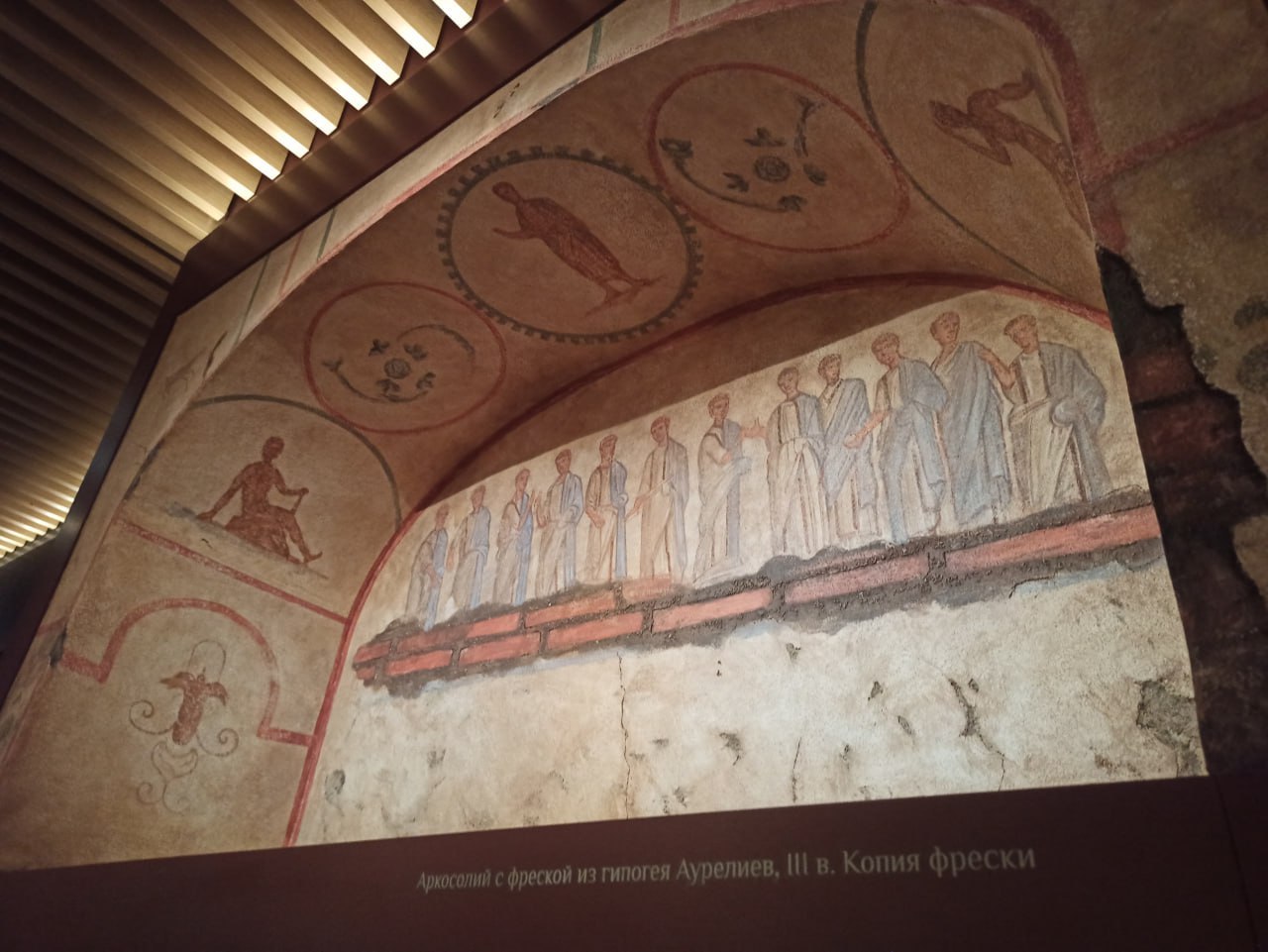 Закрывает экспозицию южного коридора блок, посвященный городу Дура-Европос, где археологами был обнаружен первый молельный дом, который можно считать первым христианским храмом, первым образцом христианской архитектуры, которая нашла свое продолжение и развитие в период после Миланского эдикта – время, когда христианство в Римской империи было узаконено.