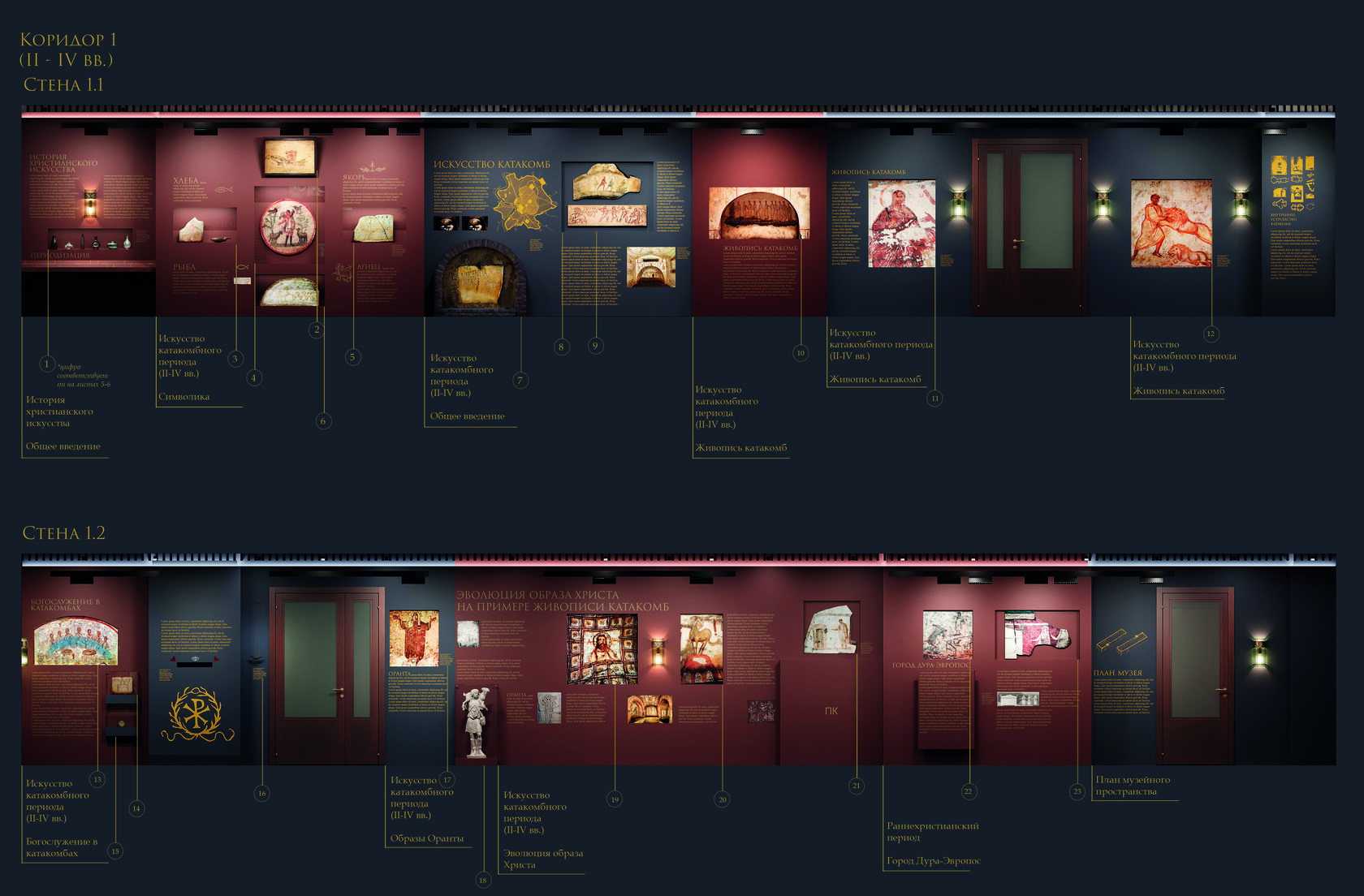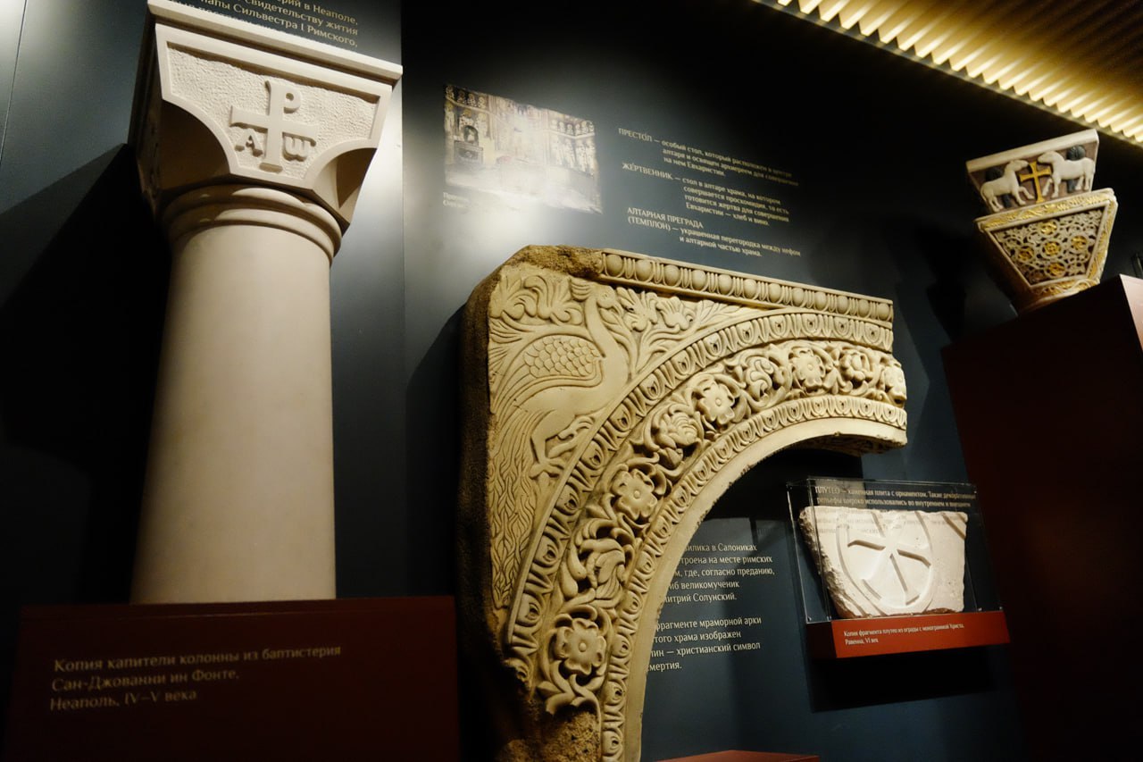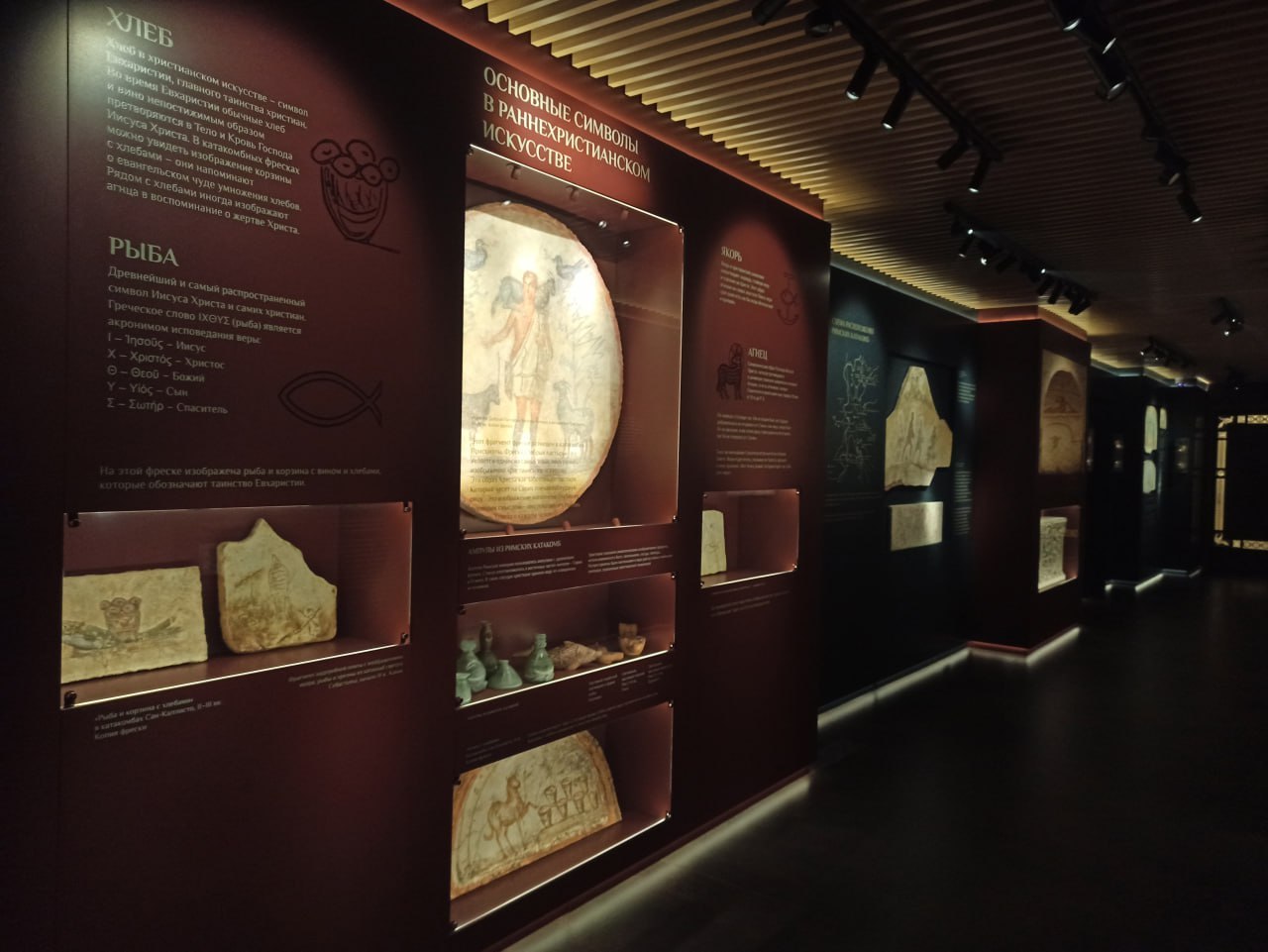 На данном этапе реализована часть музейного пространства, находящаяся в южном и северном коридорах. Мастерской «Прохрам» изготовлены экспонаты: копии фресок, мозаик, изделия из бронзы и камня, скульптура.