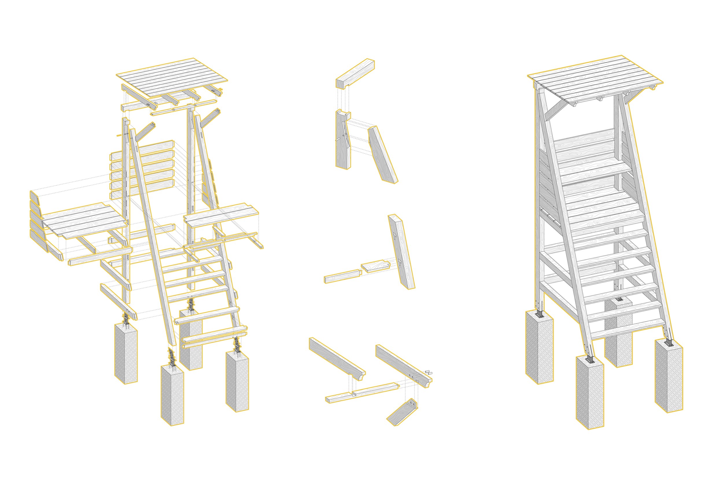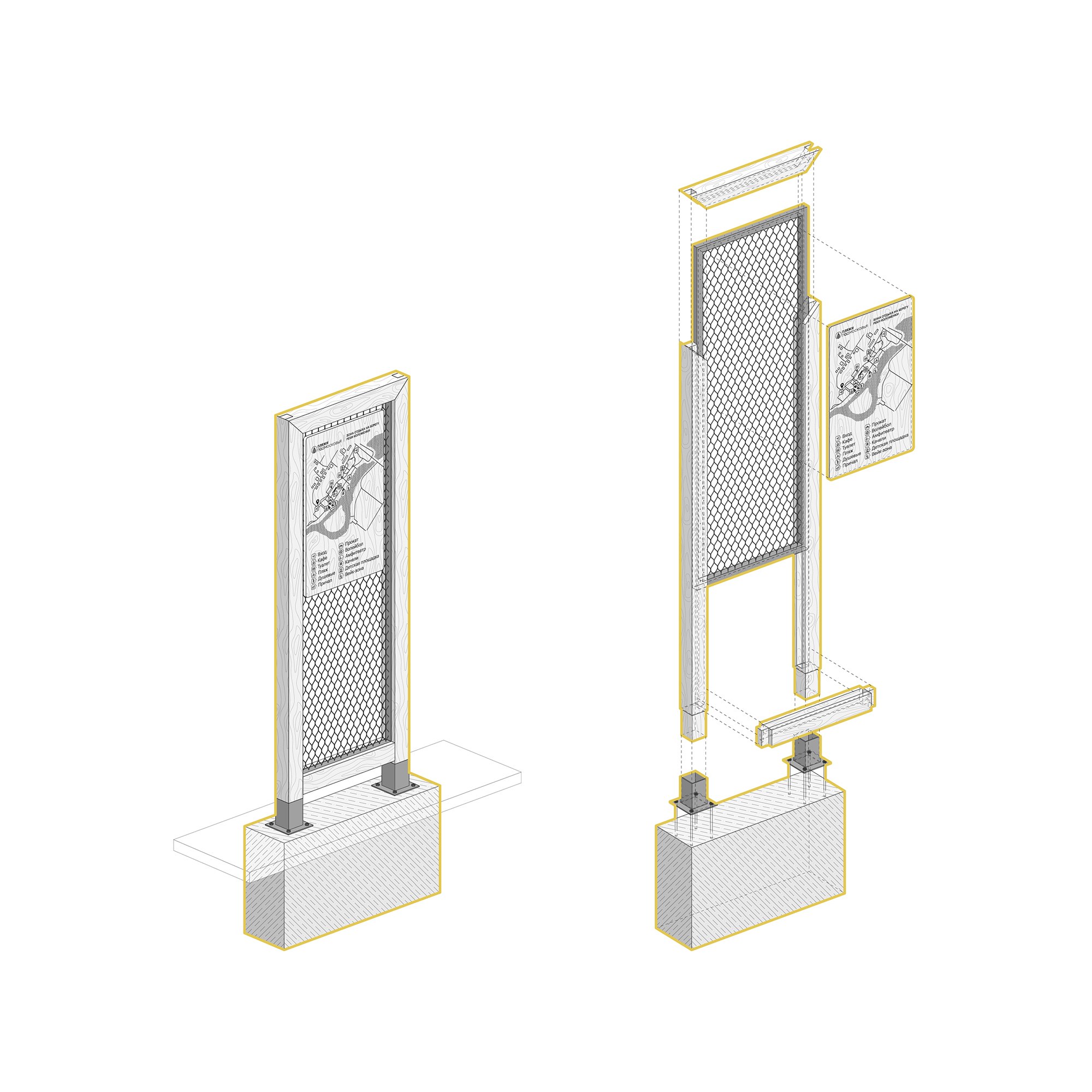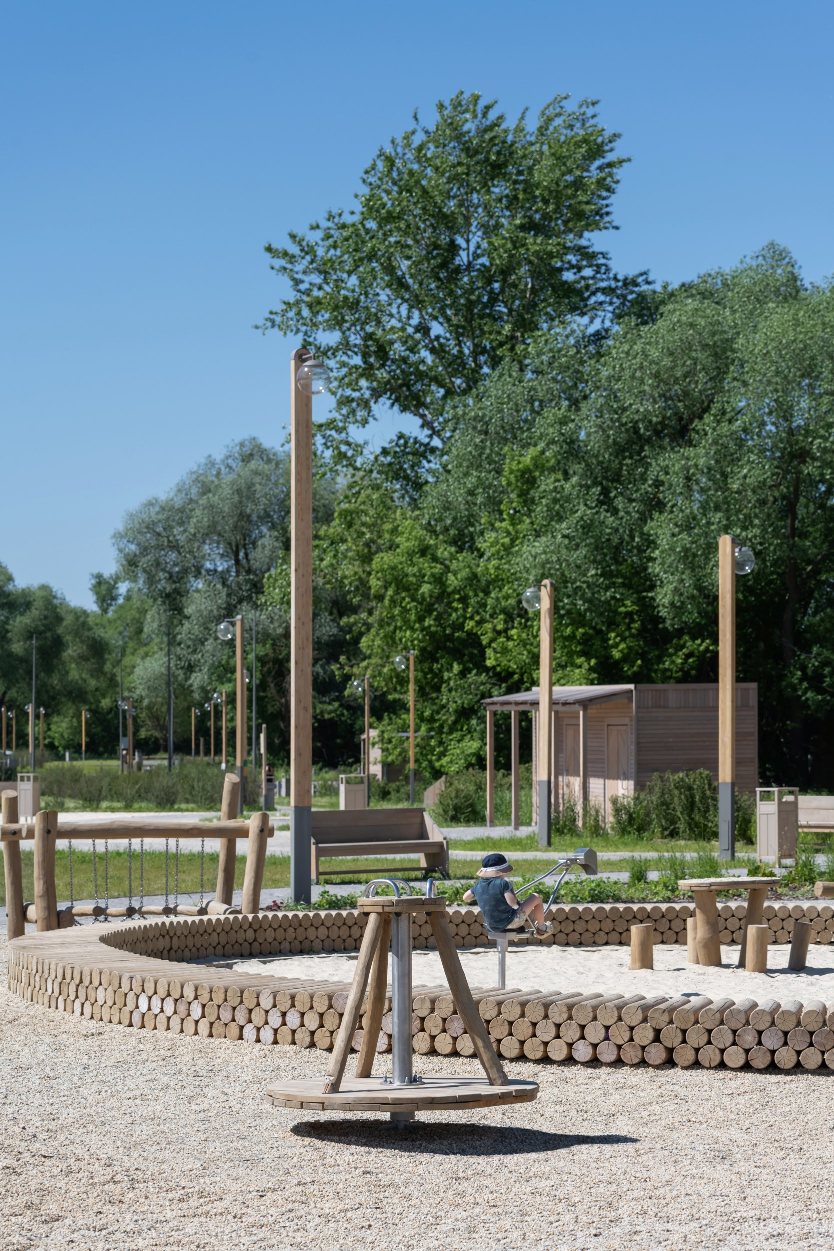 Важной частью наполнения набережной стали пирсы, разработанные в двух вариантах: для активных видов спорта и для тихого отдыха. Малые архитектурные формы были созданы преимущественно из древесины по принципу стилизации и упрощения форм традиционной русской мебели. Например, некоторые кресла и лавки имеют поворотные спинки, позволяющие выбрать удобную сторону для обзора. Навигация выполнена из светлого дерева и вырезана на специальных столярных станках, что отсылает к русскому деревянному зодчеству. Форма фонарей была разработана нашей командой специально для Коломны и выполнена из натурального дерева, что является редкостью для общественных пространств. В проекте используется редкое покрытие в виде деревянной брусчатки. В процессе работы мы подобрали решение, которое позволило расположить деревянные бруски на равном расстоянии для создания четкой герметичности в покрытии.