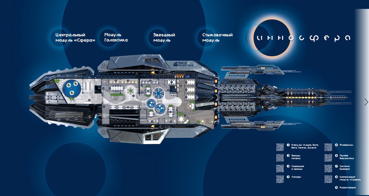 «AR работает при помощи сканирования пространства коворкинга. Дополненная реальность работает при помощи сканирования QR-кодов, размещенных на стенах коворкинга. Посетители могут скачать приложение на телефон, и, при наведении камеры на QR-код, увидеть, как оживают виртуальные объекты, например, космический корабль.