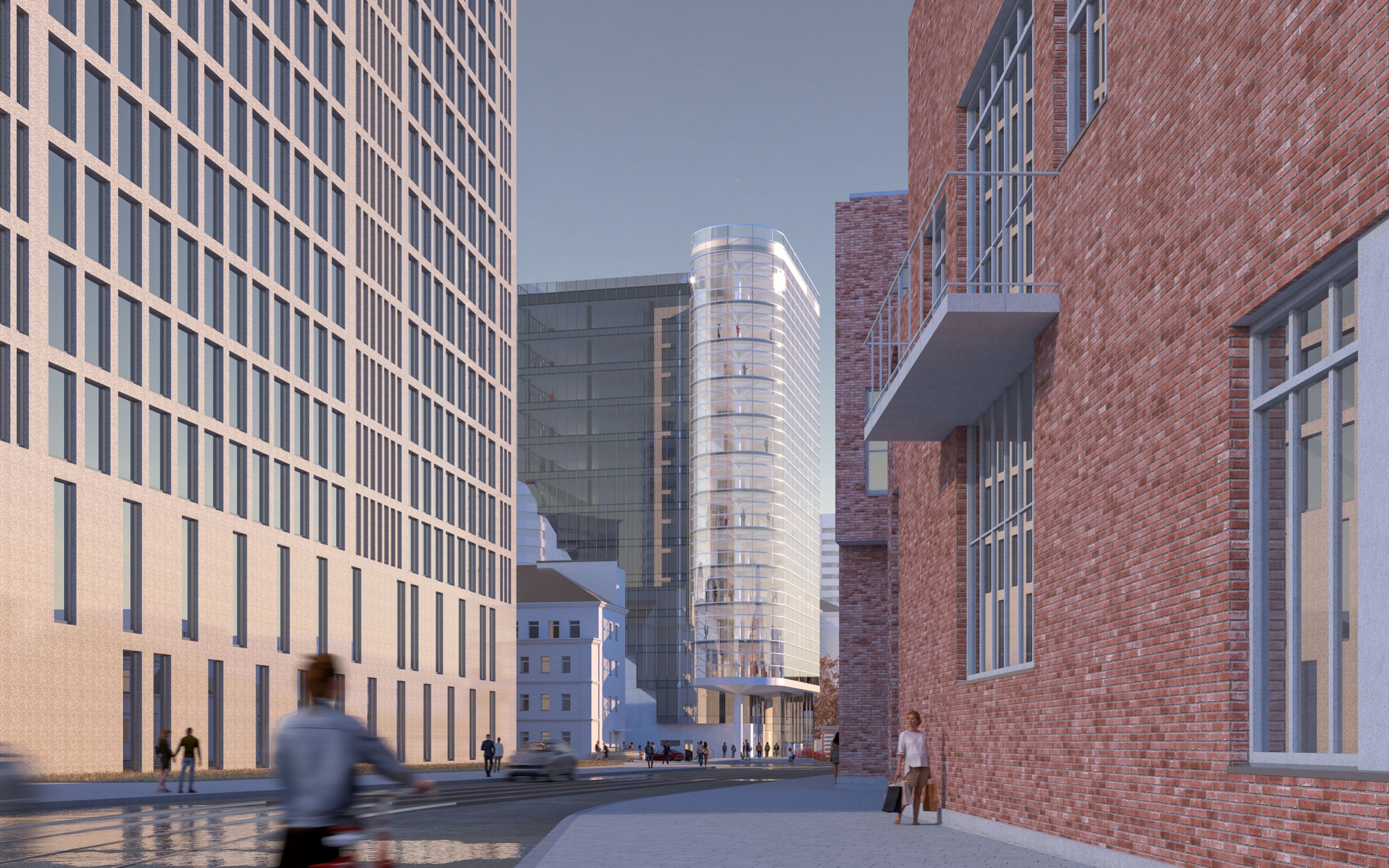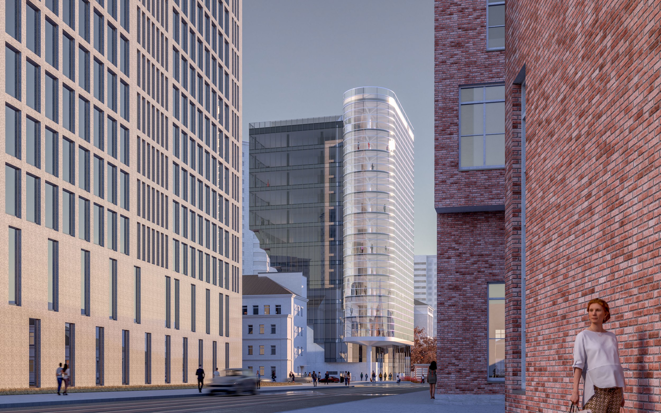 Альтернативный проект развивает композиционные приёмы концепции двухлетней давности, исследуя возможность выполнения увеличенных параметров (допустимые высота и площадь выросли почти втрое) в нескольких аспектах – градостроительном, композиционном, архитектурном, экономическом.
