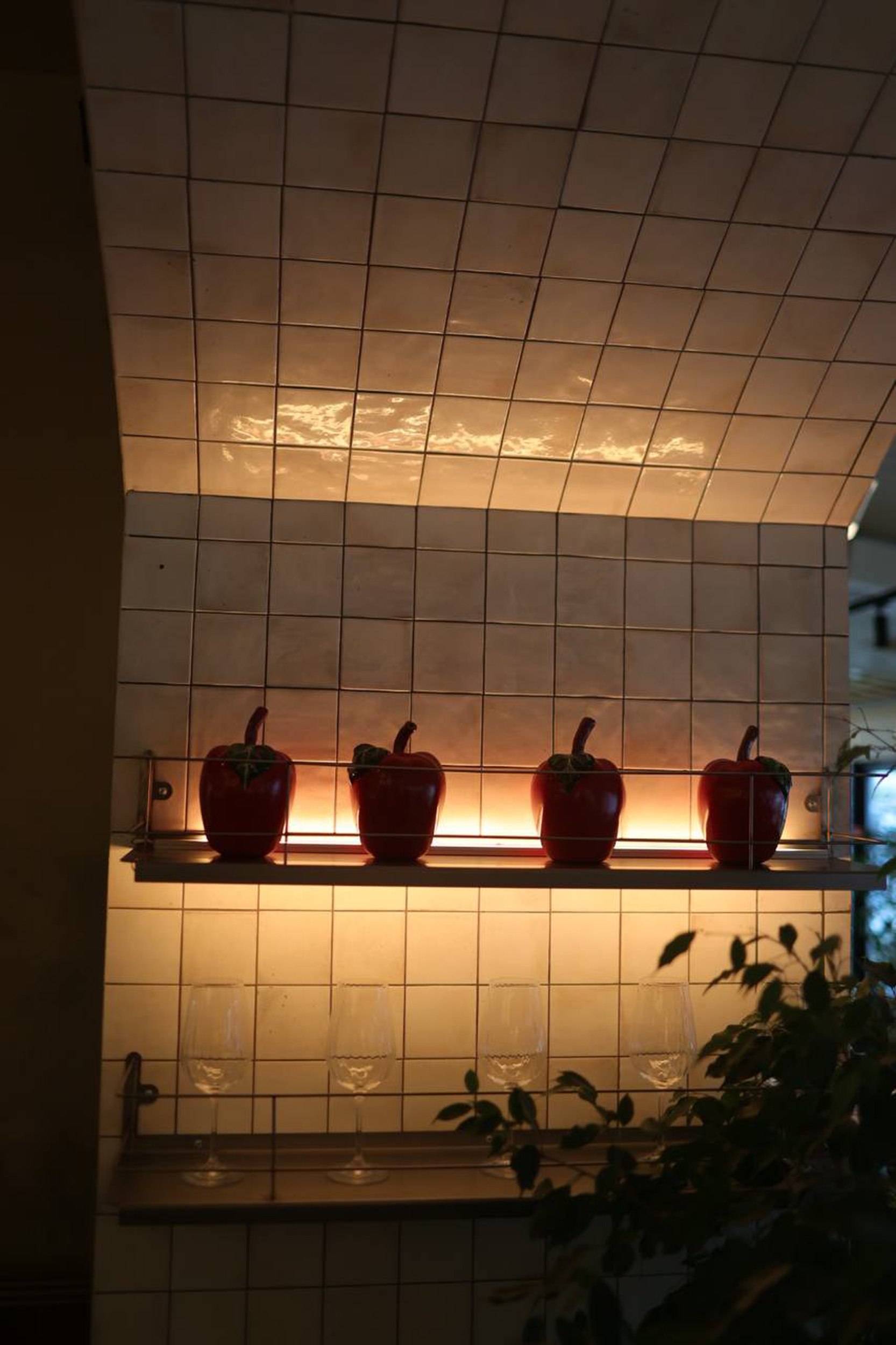Палитра интерьера основана на натуральных и тактильных материалах: деревянная, клинкерная и глазурная плитка, напольная плитка из обожженной глины, рельефная кирпичная кладка, фактурная и глиняная штукатурка, камень, медь, перфорированный металл, цветное фактурное стекло. Светлый фон интерьера дополняют яркие акценты в текстиле и деталях. Состаренные поверхности, органичные фактуры и ремесленные узоры подчеркивают теплый, дружелюбный характер пространства.