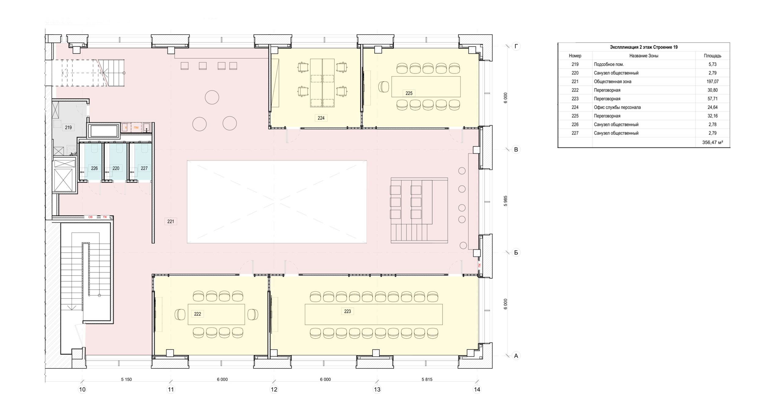 Особое внимание уделено работе с конструктивом здания. Фермы подкровельного пространства не были скрыты – напротив, они стали важной частью интерьера пространства. Через отверстия в фермах проходят светильники-лучи, собранные в трёхлучевые ритмичные структуры.