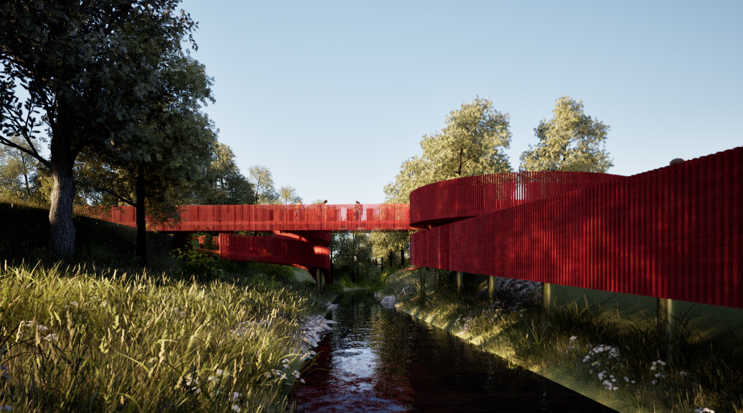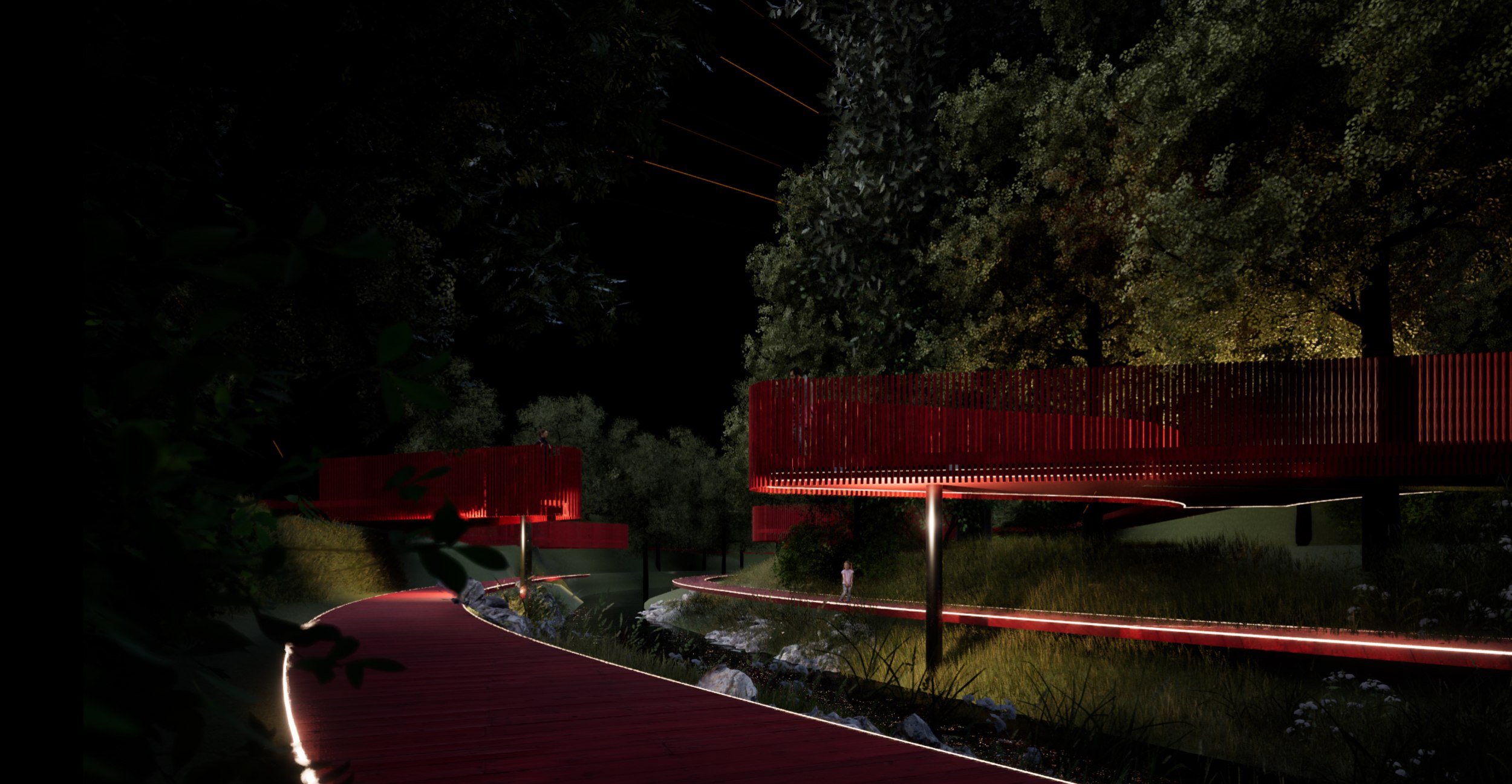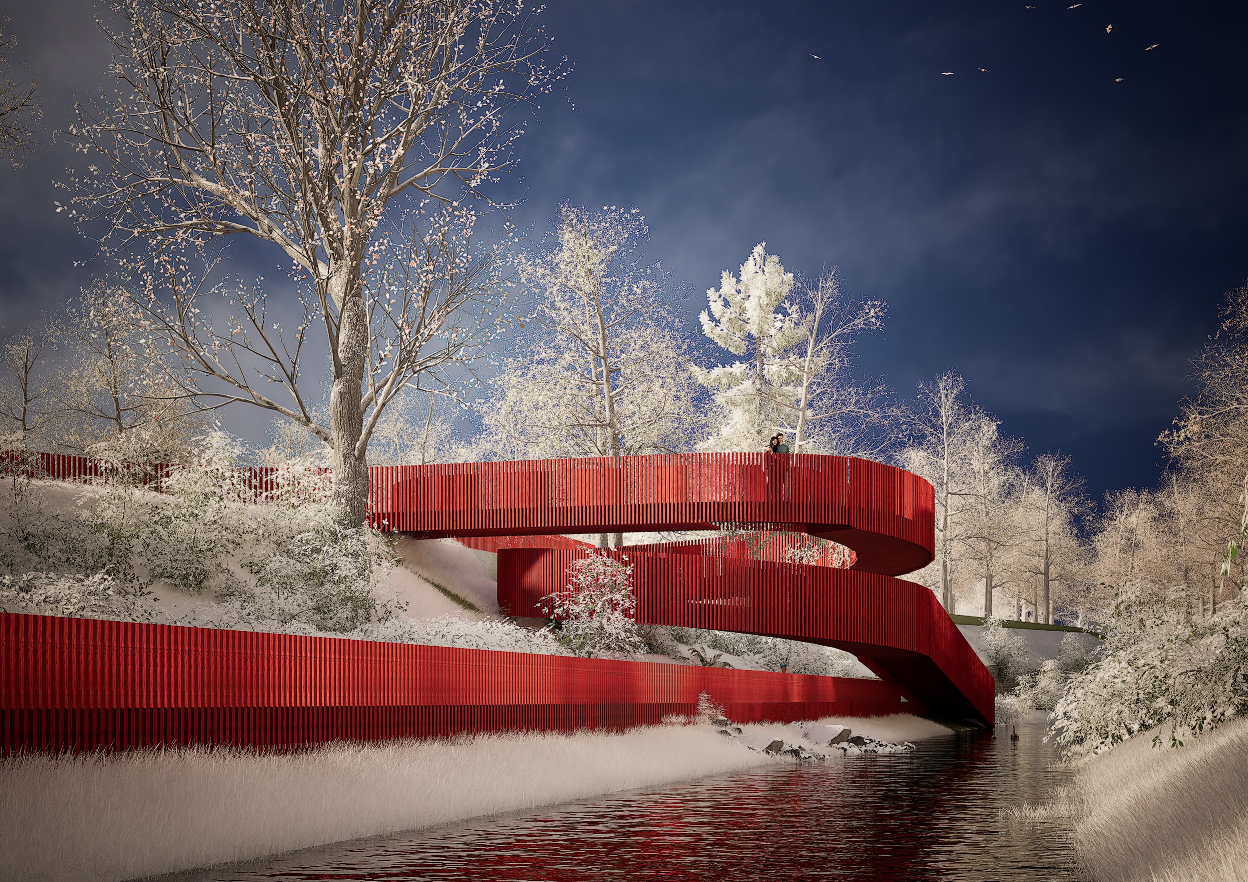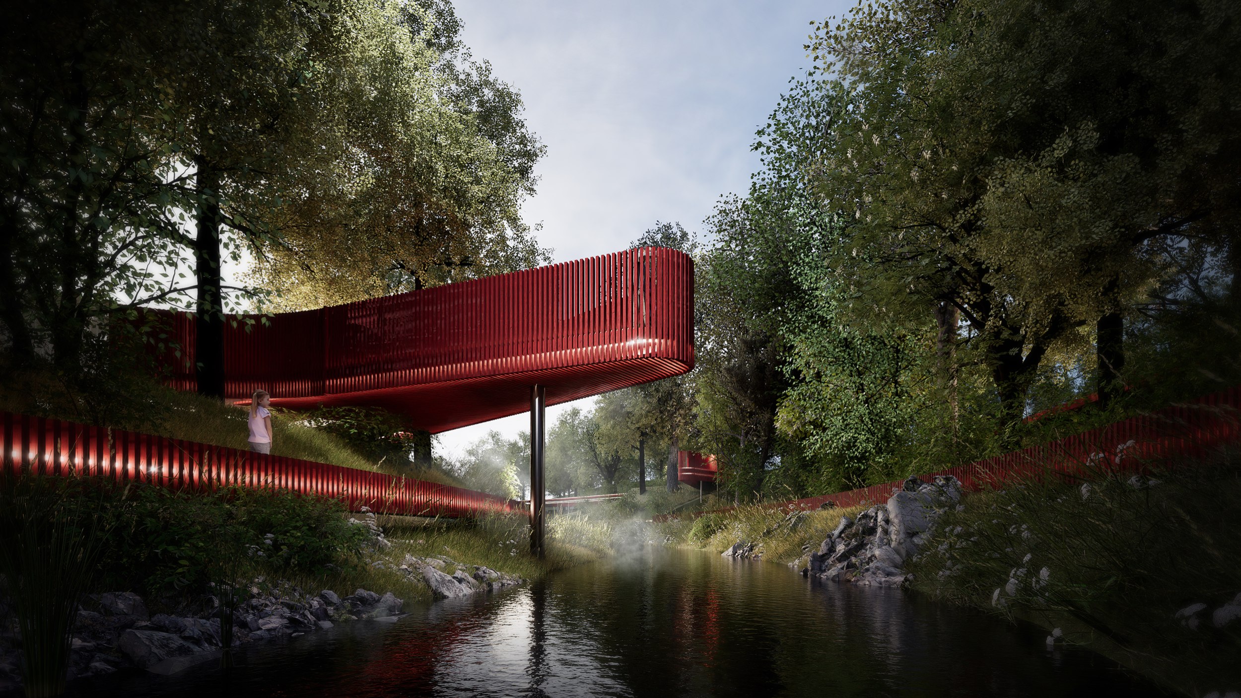Красный – это отзвук живой реки, которая сливается с энергией города. Так парк становится символом того, как природа и человек могут быть связаны одной «красной нитью» стремления к жизни и гармонии.