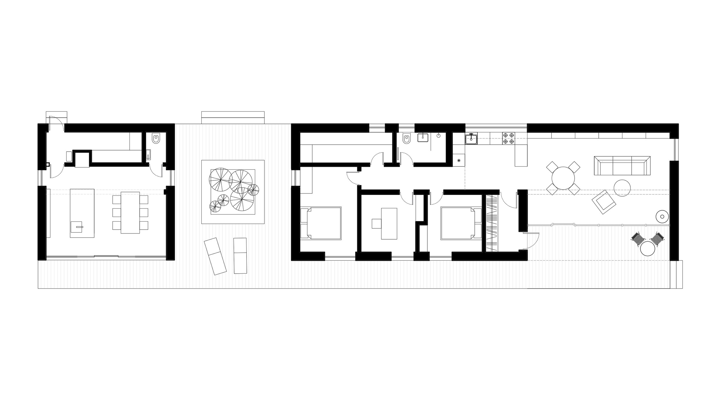 Delo House 3 построен по каркасной технологии с использованием префаб-элементов. Проектирование велось с учетом стандартных размеров материалов, что позволило оптимизировать процесс строительства, минимизировать количество отходов и рационально использовать ресурсы. Такой подход отражает философию Delo – отношение к архитектуре с ремесленной точностью, аналогичной созданию предметов мебели. Многие конструктивные элементы были специально разработаны и произведены для этого проекта.