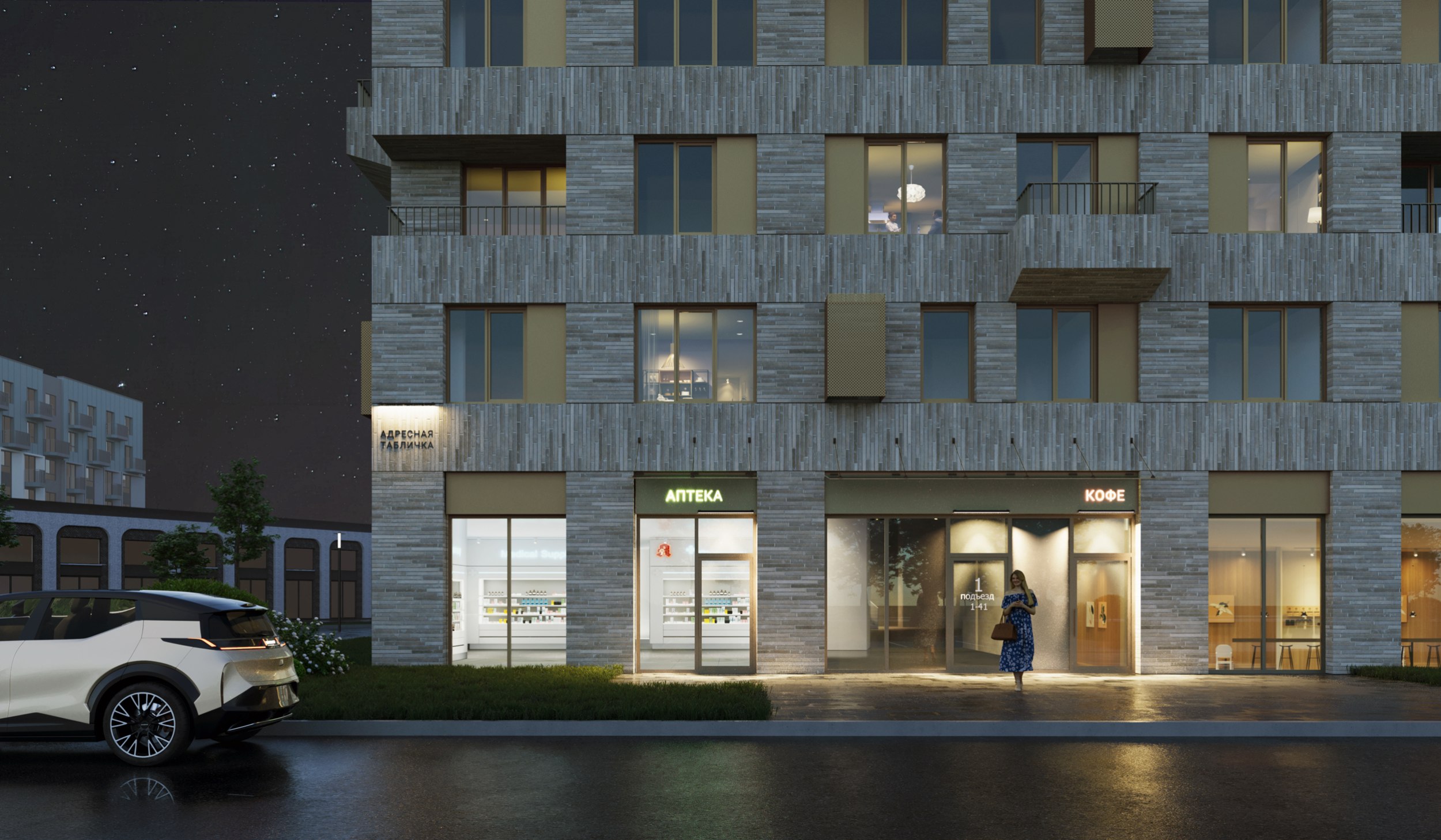 Планировочная структура каждого квартала строится на четком функциональном разделении потоков. Автомобильная логистика (подъезды, парковочные карманы, потенциальный ритейл) вынесена на периметр, вдоль улично-дорожной сети. Входные группы в подъезды преимущественно ориентированы со стороны этих зон.
