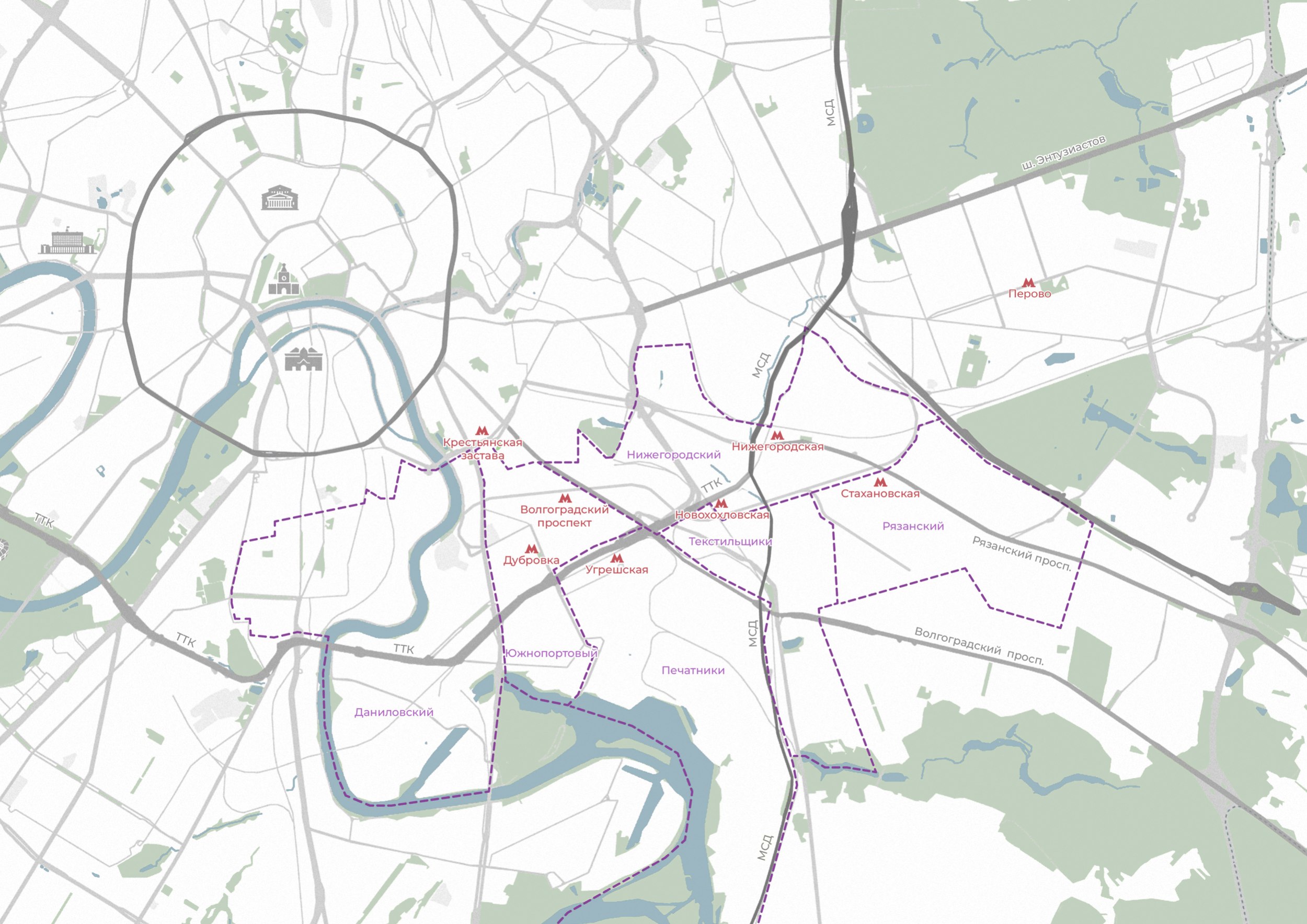 Сегодня это бывшие и частично действующие железнодорожные пути рядом с Волгоградским проспектом, ТТК и Симоновским Валом. В этом районе нет полноценных парков – лишь дворы и редкие скверы, а магистрали разрезают район так, что пешком и на велосипеде передвигаться сложно и небезопасно. Линейный парк обеспечит связность маршрутов, сократит время в пути и частично разгрузит перегруженные участки метро за счет формирования комфортной велосипедной магистрали.