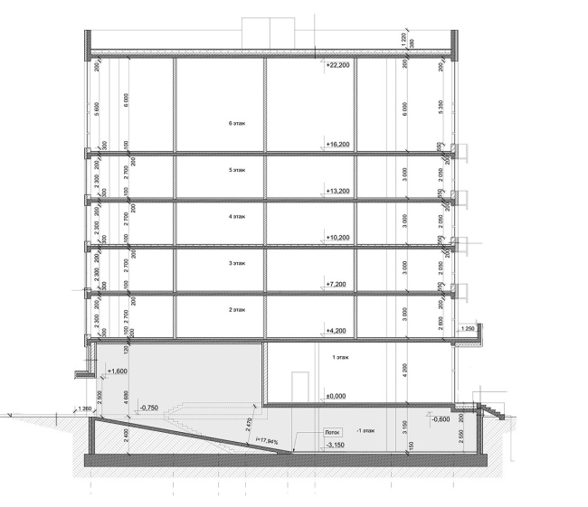 Конструктивная схема – монолитный ж/б каркас, наружные стены из газосиликатных блоков, утеплителя, вент. фасада и тонкостенной штукатурки. Кровля плоская утепленная.