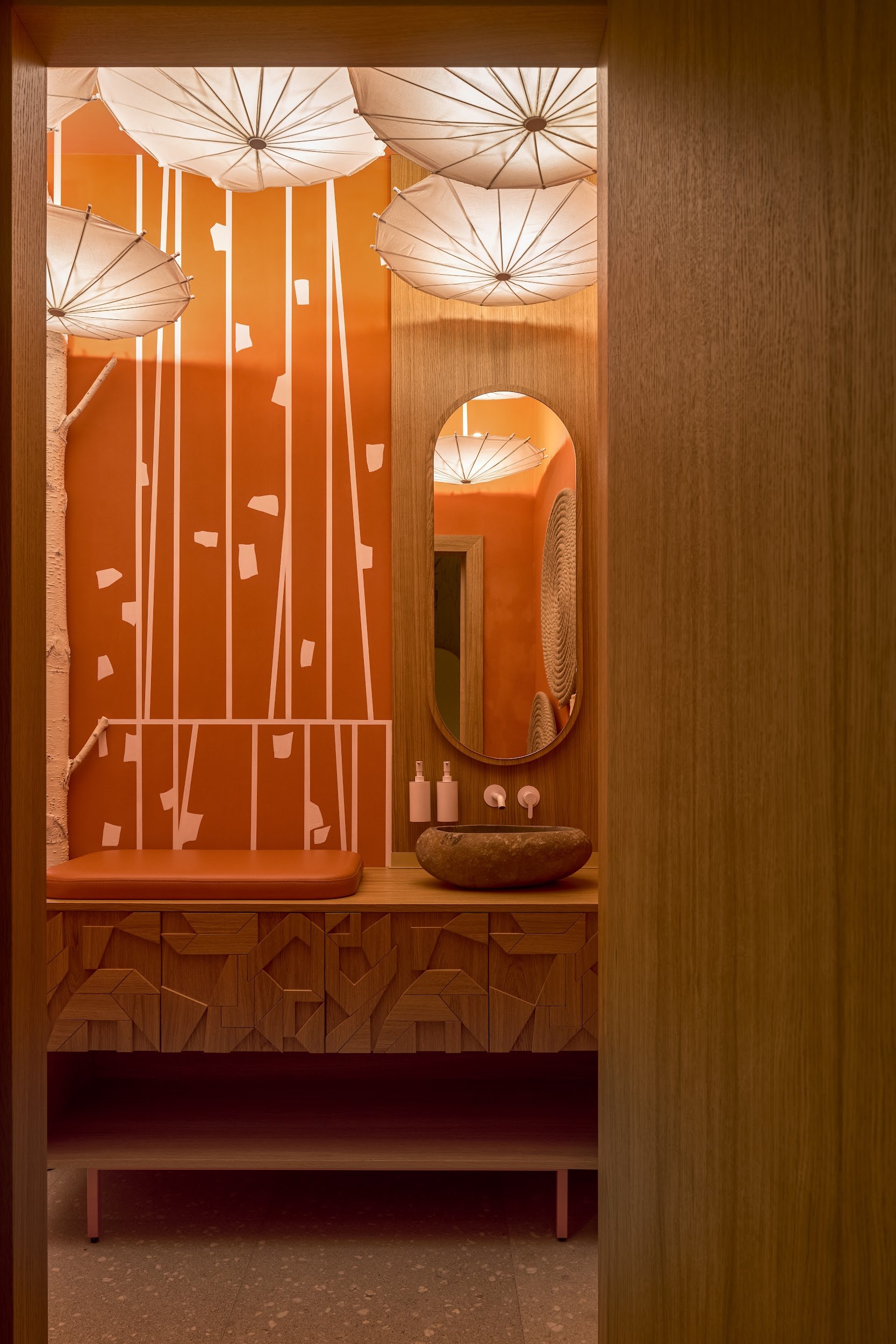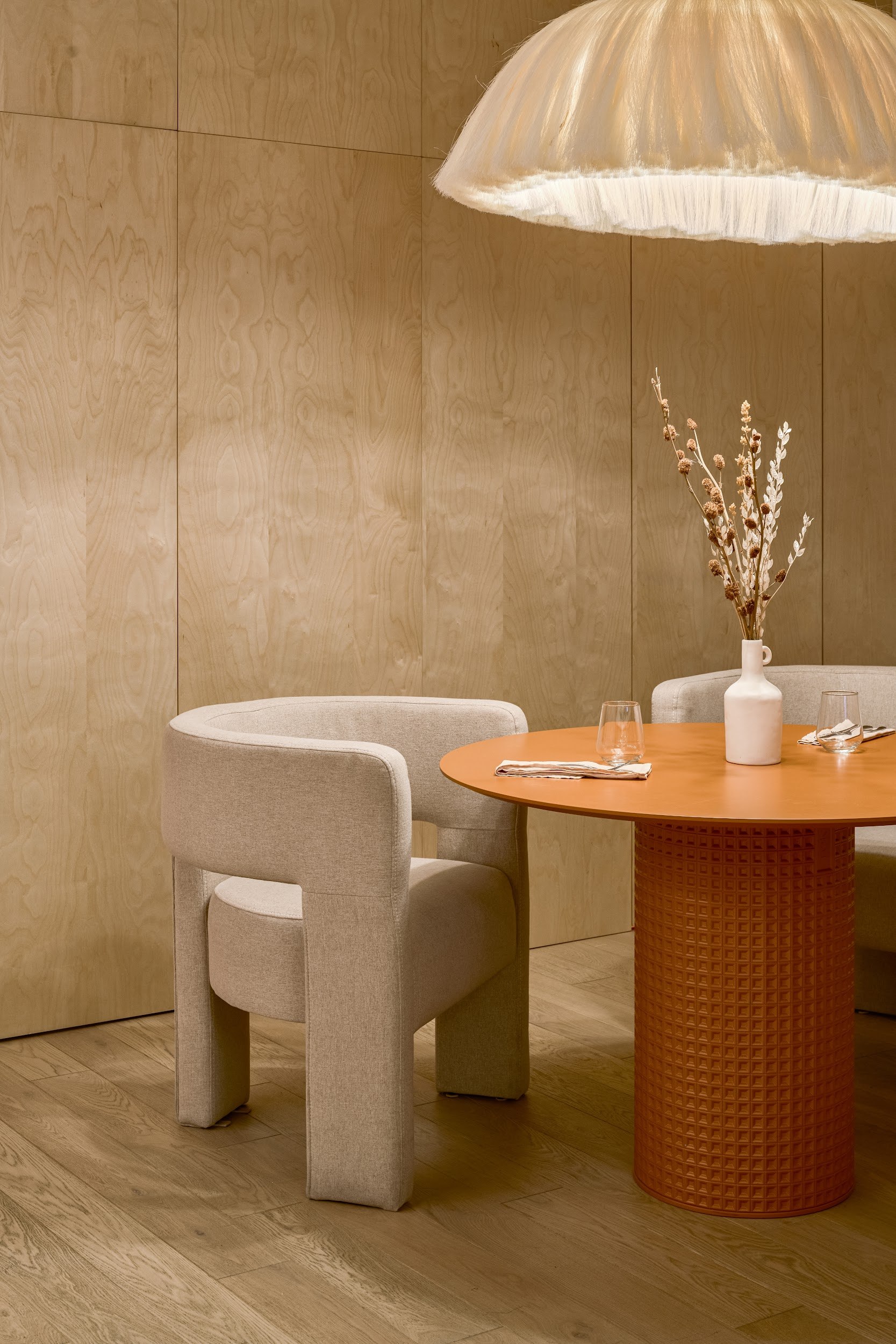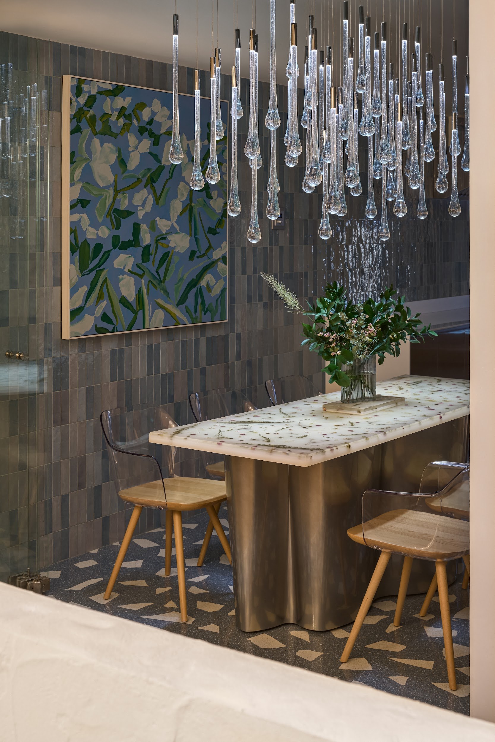 В реализации были использованы премиальные материалы и оборудование от международных брендов: мебель Sancal, Pedrali; освещение Artemide; акустические системы Felt Touch. Все элементы – от кухонного блока до акустических панелей – были бесшовно интегрированы в целостное архитектурное решение.