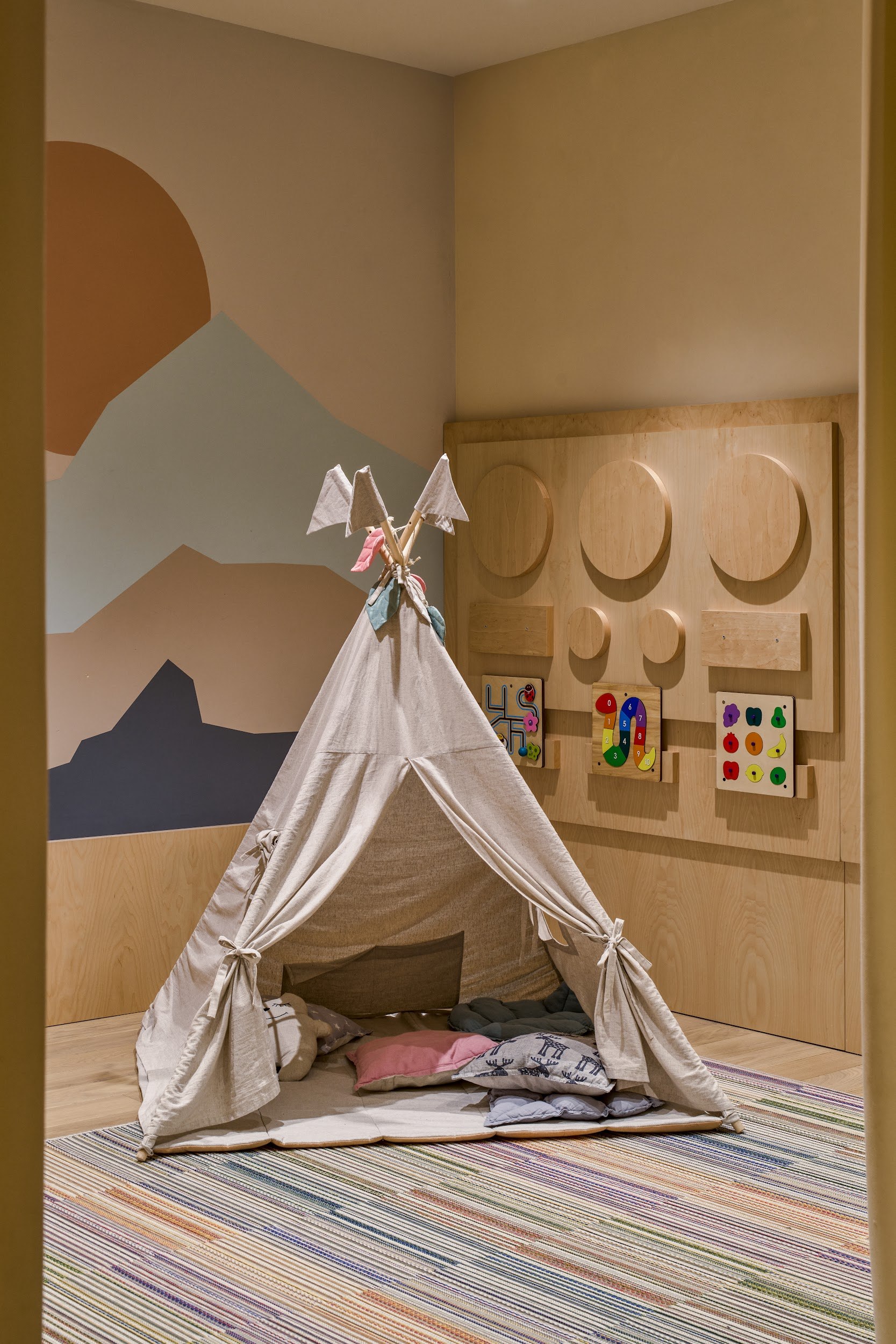 Проект публичного лектория и образовательного центра на 31–м этаже башни по адресу Кнеза Милоша, 90а, в Белграде был создан для ведущей IT–компании Serb Tech. Задача заключалась в создании не просто учебного помещения, а многофункционального хаба – «пространства возможностей», способного стать новой точкой притяжения и визуальным воплощением динамичной корпоративной культуры. Ключевым вызовом стала работа на высоте 31 этажа: необходимо было преобразовать потенциально оторванную от земли панораму в человекоориентированную, энергетически заряженную среду для обучения, обмена идеями и неформального общения.