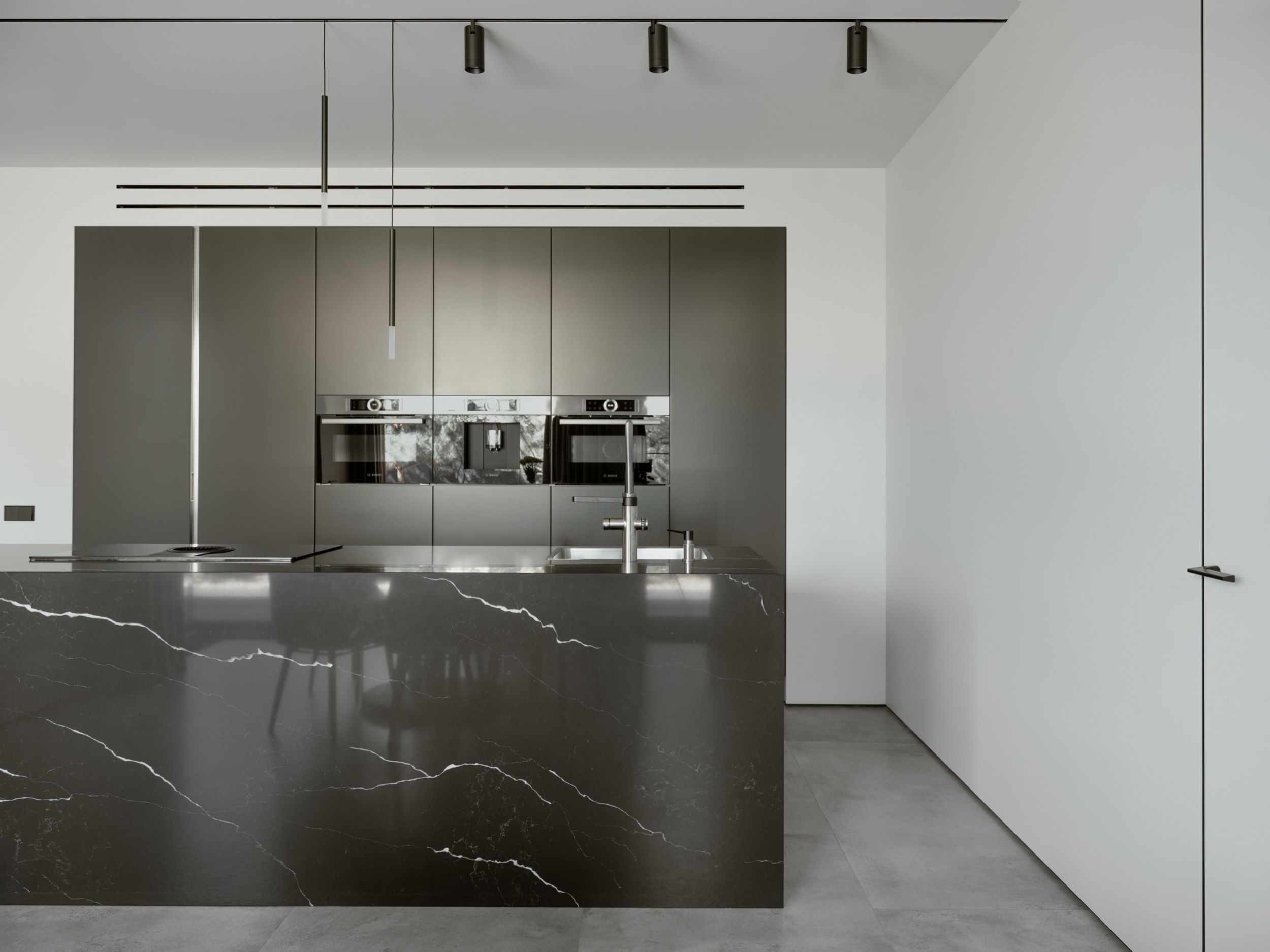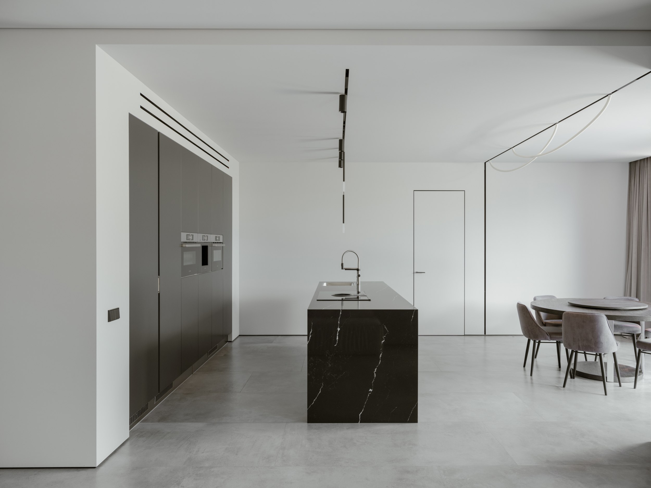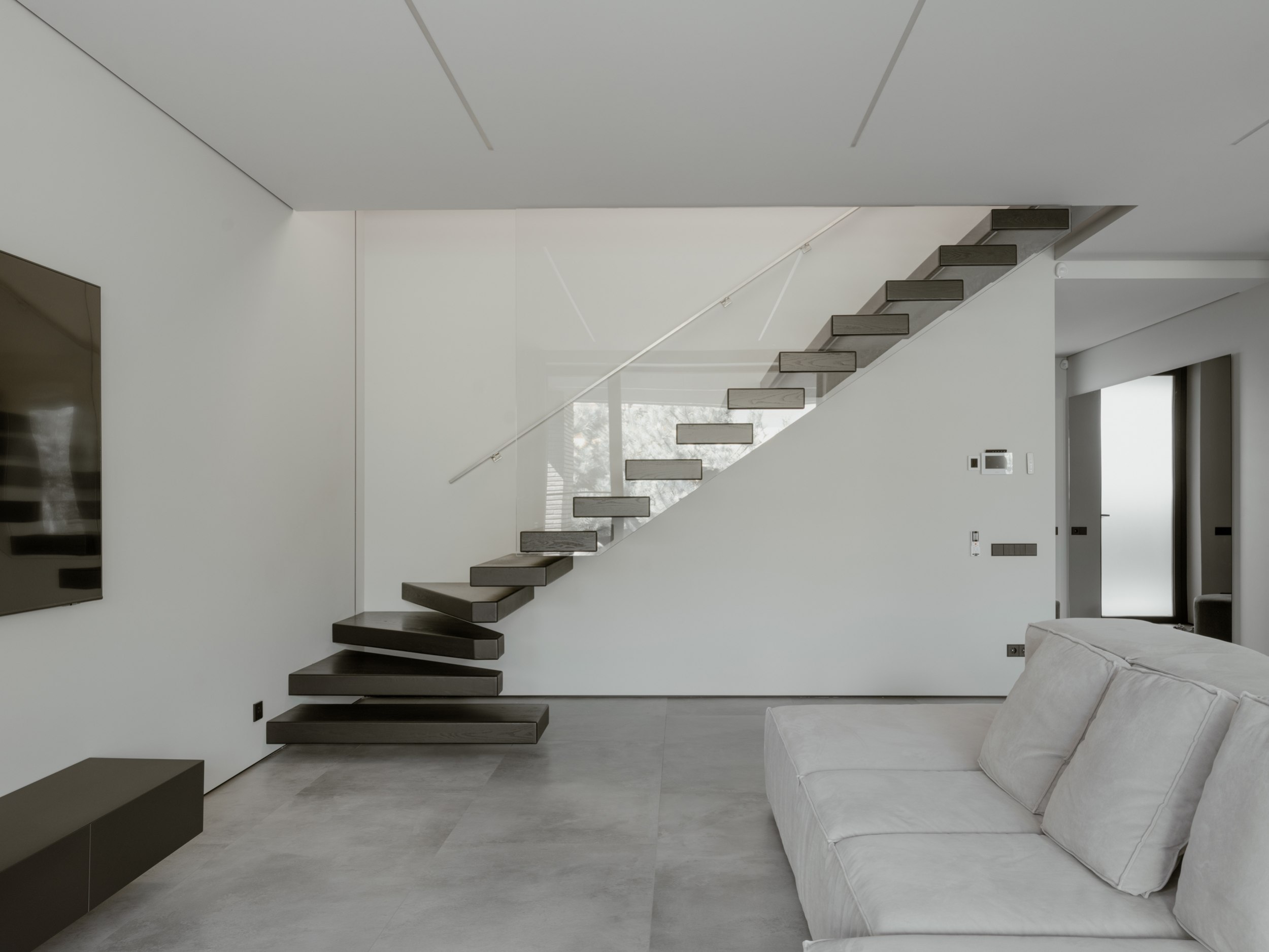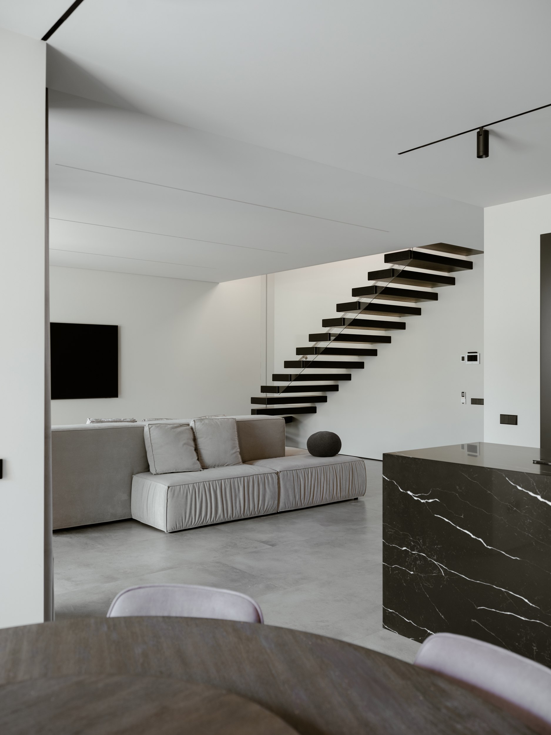 Проект создавался для молодой семьи с чётким взглядом и собственным чувством вкуса. Заказчики поддержали идею монохромной архитектуры. В контексте плотной городской застройки дом выглядит уверенно, эффектно, сразу считывается его характер.