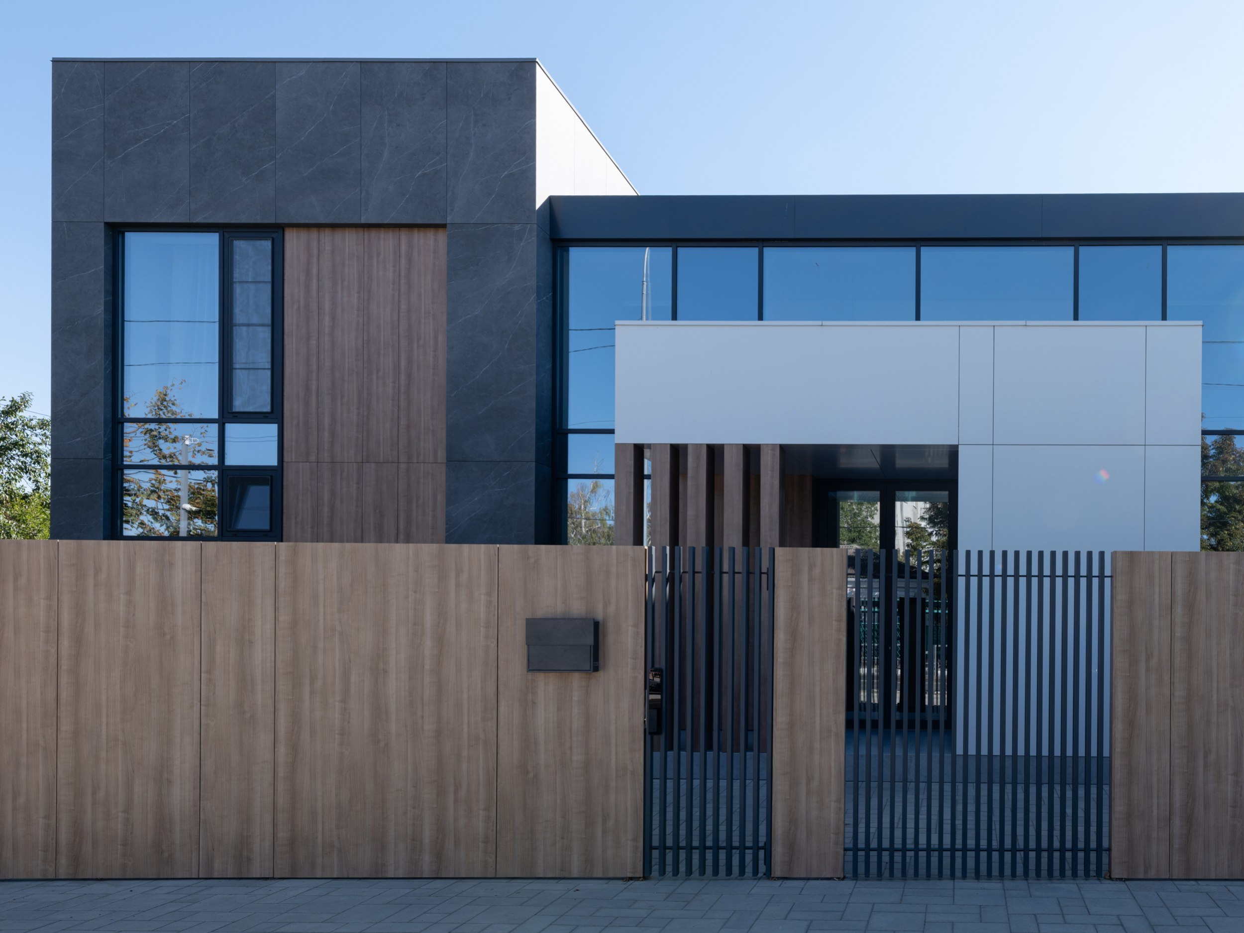 Уже на первой встрече прозвучал ясный запрос: современная архитектура и никакой классики. Участок был компактным (10 соток) и находился среди плотной застройки. Окружали его дома 70–80-х годов. Мы решили не бороться с окружением, а создать самостоятельную экосистему, где хозяева смогут «отключить» город буквально за одной дверью.