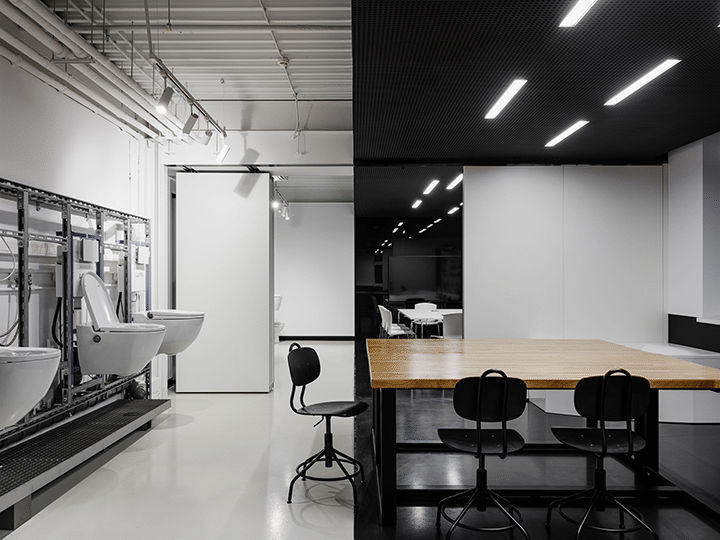 Коммуникационные потоки в ROCA GROUP Space выстроены от встреч и общения в гостевой и выставочных зонах к обмену опытом с профессиональной аудиторией в учебных классах, которые соседствуют с переговорной. Здесь на открытом стенде демонстрируются приемы крепления сантехнический изделий, проводятся мастер-классы с дизайнерами, архитекторами, техническими специалистами, раскрываются секреты и тонкости производства. Таким образом, ROCA GROUP Space расширяет представление о шоуруме как о многофункциональном пространстве, всегда открытом для диалога. Оно позволяет выйти на новый уровень коммуникации бренда с аудиторией, помогая формированию современного представления о культуре ванных комнат, осознанному потреблению воды и устойчивому развитию, а также поиску новых решений и идей, улучшающих качество жизни каждого человека.