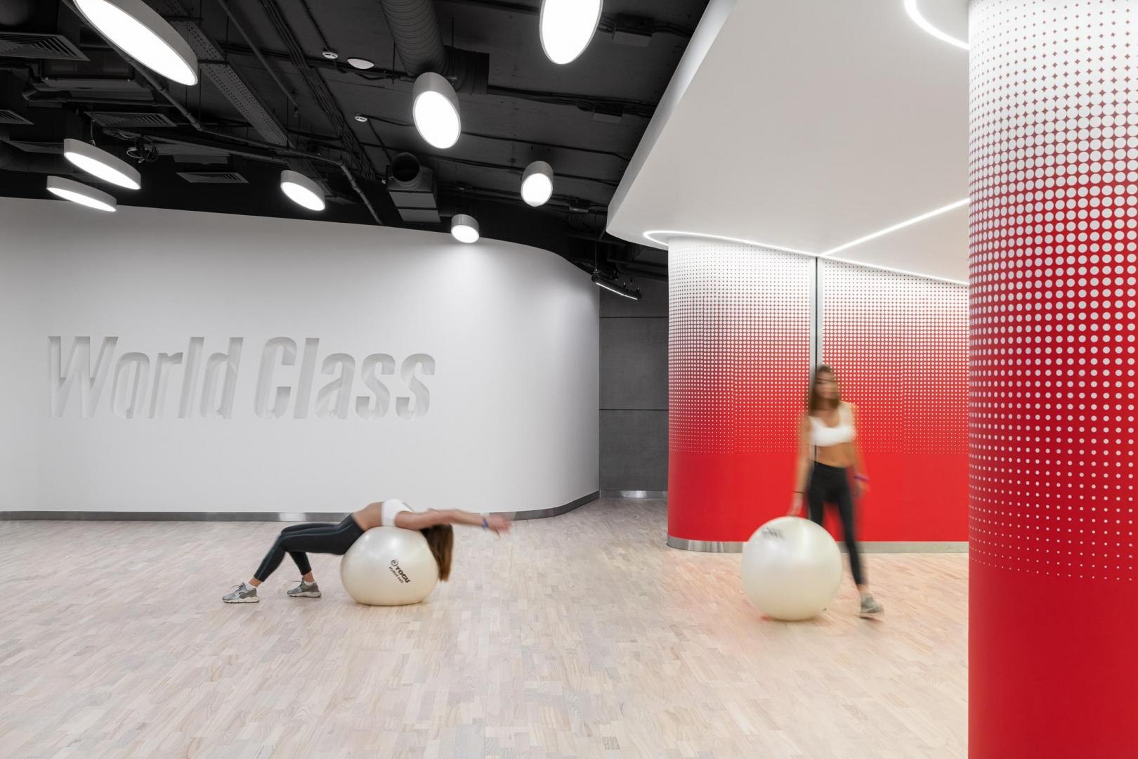 World Class предоставляет полный спектр услуг для достижения красивого и здорового тела: от персональных тренировок до групповых программ разной направленности. Поэтому было важно в рамках каждого клуба соблюсти идеальный баланс между совершенно разными по смысловой нагрузке и настроению зонами: подчеркнуть лёгкость залов для занятий йогой и пилатесом, сделать правильные акценты в залах для единоборств и силовых нагрузок, и, конечно же, создать идеальную атмосферу в зоне бассейна.