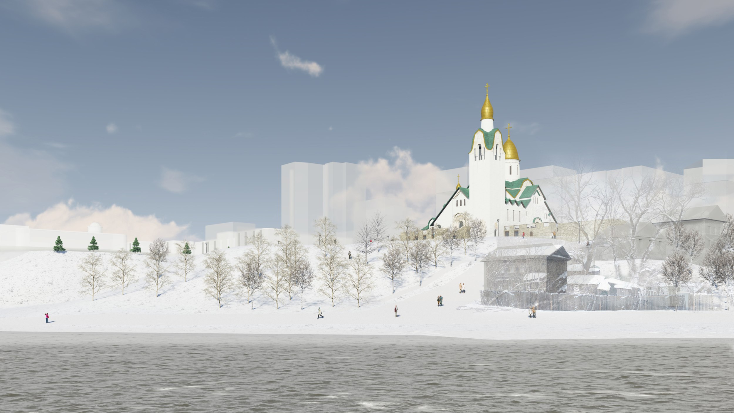 Храм решает важную градостроительную задачу – формирует силуэт города, открывающийся с транспортной зоны набережной и водной глади. Этот вид одна из важнейших визитных карточек Ижевска, существующий в сознании ижевчан и формирующих облик города у гостей и туристов.