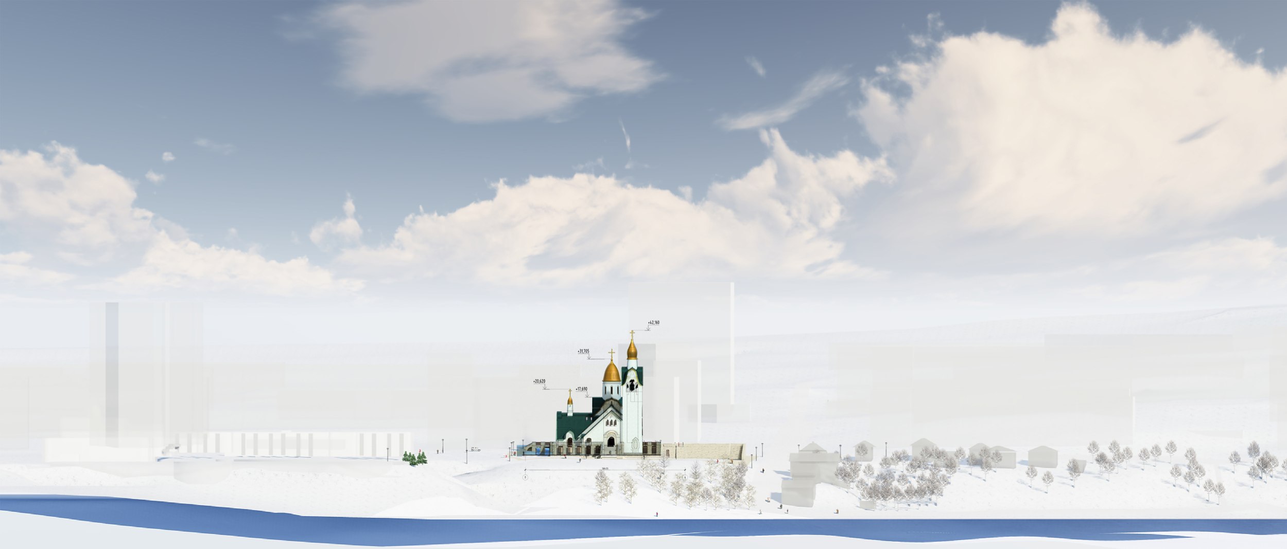 В 2022 году я поступила МАРХИ на кафедру Храмовое зодчество, с целью организовать свое время для проектирования собственных архитектурных произведений. До этого я работала только в соавторстве и с другими архитекторами и бюро. Этот храм – второй из трех проектов практической части моей магистерской работы на тему «Контекстуальный подход к проектированию православных храмов в
