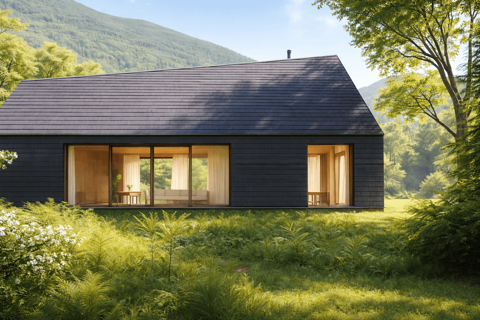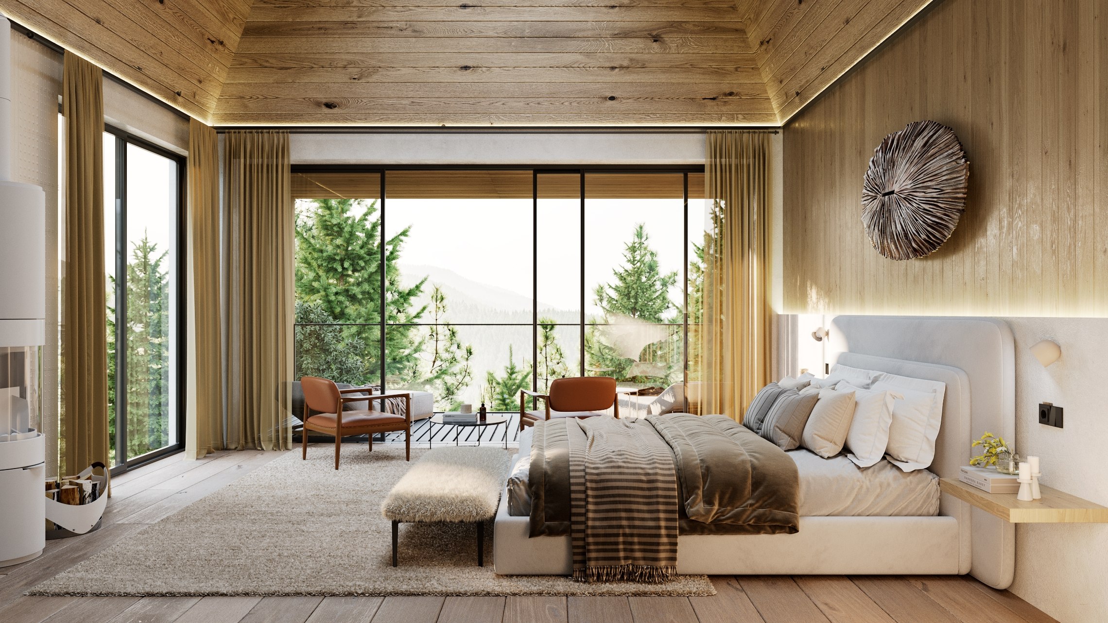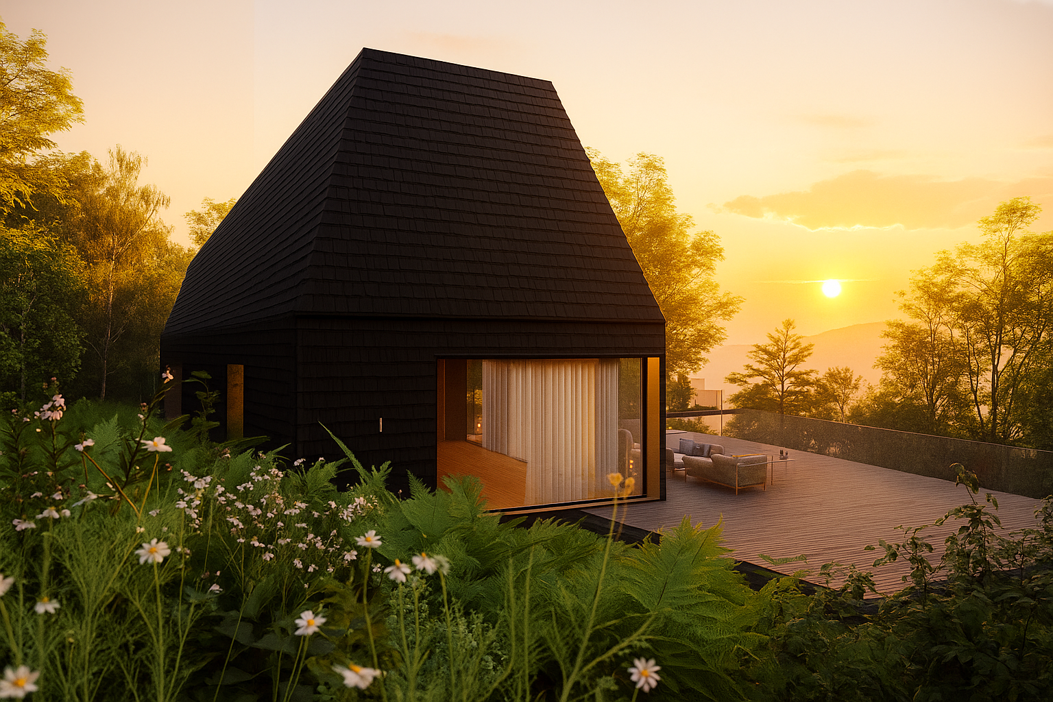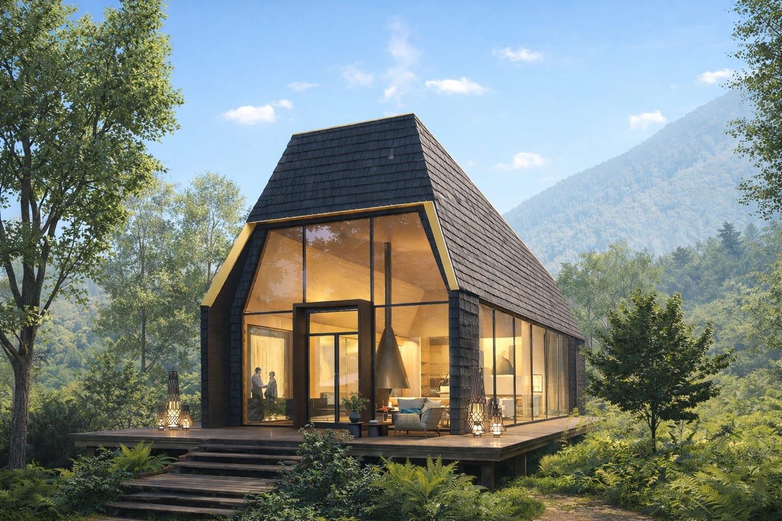 Авторы проекта переосмыслили алтайский аил (традиционное жилище коренных народов): конические силуэты с устремленными скатами крыш символизируют связь с небом и обеспечивают компактность. Это пример деликатной интеграции в ландшафт с минимальным вмешательством в природную среду.