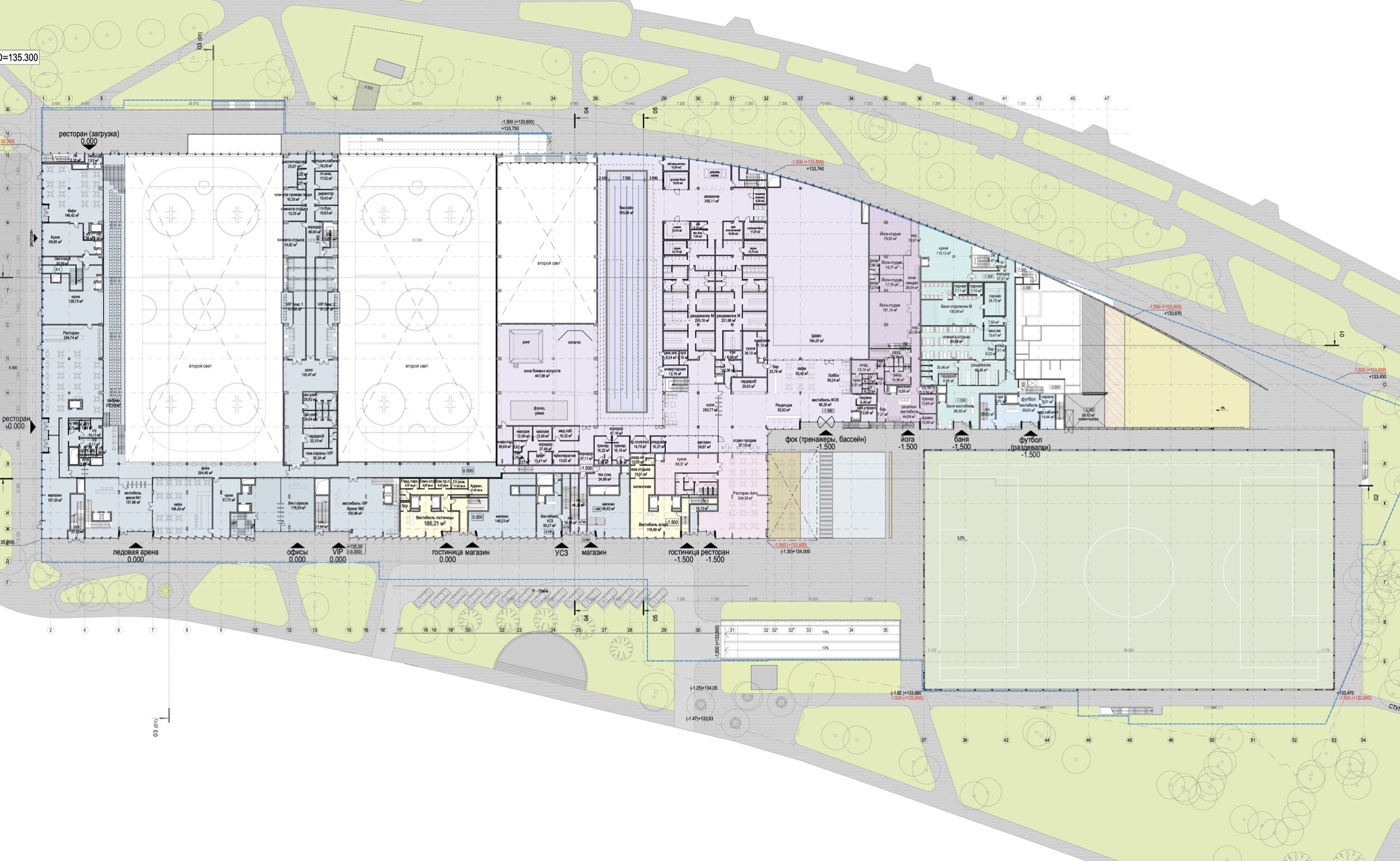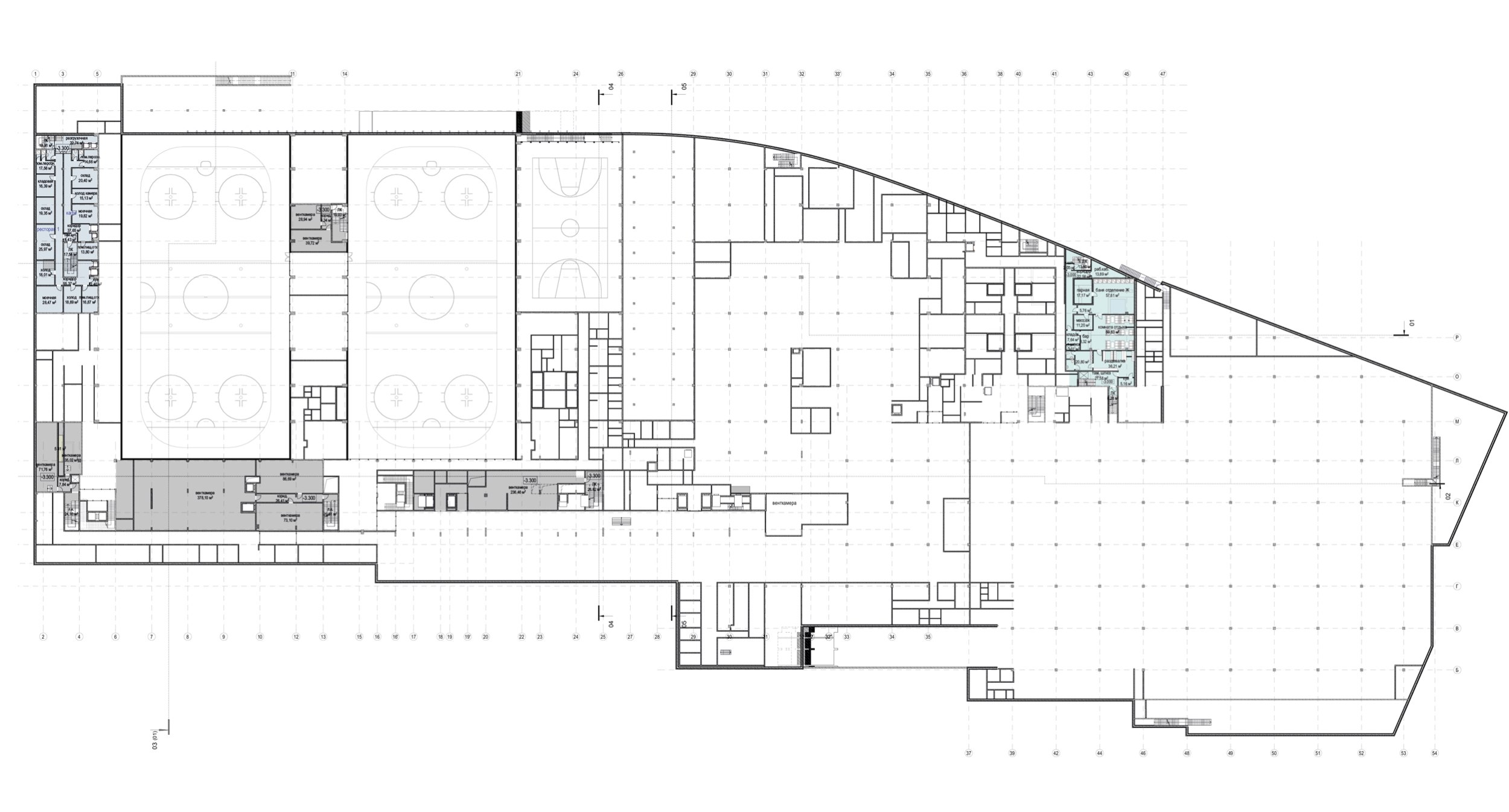 План на отм. -3,300. Многофункциональный спортивно-развлекательный комплекс с ледовым комплексом, гостиницей и ФОК на Дружинниковской улице, второй вариант 2025 года