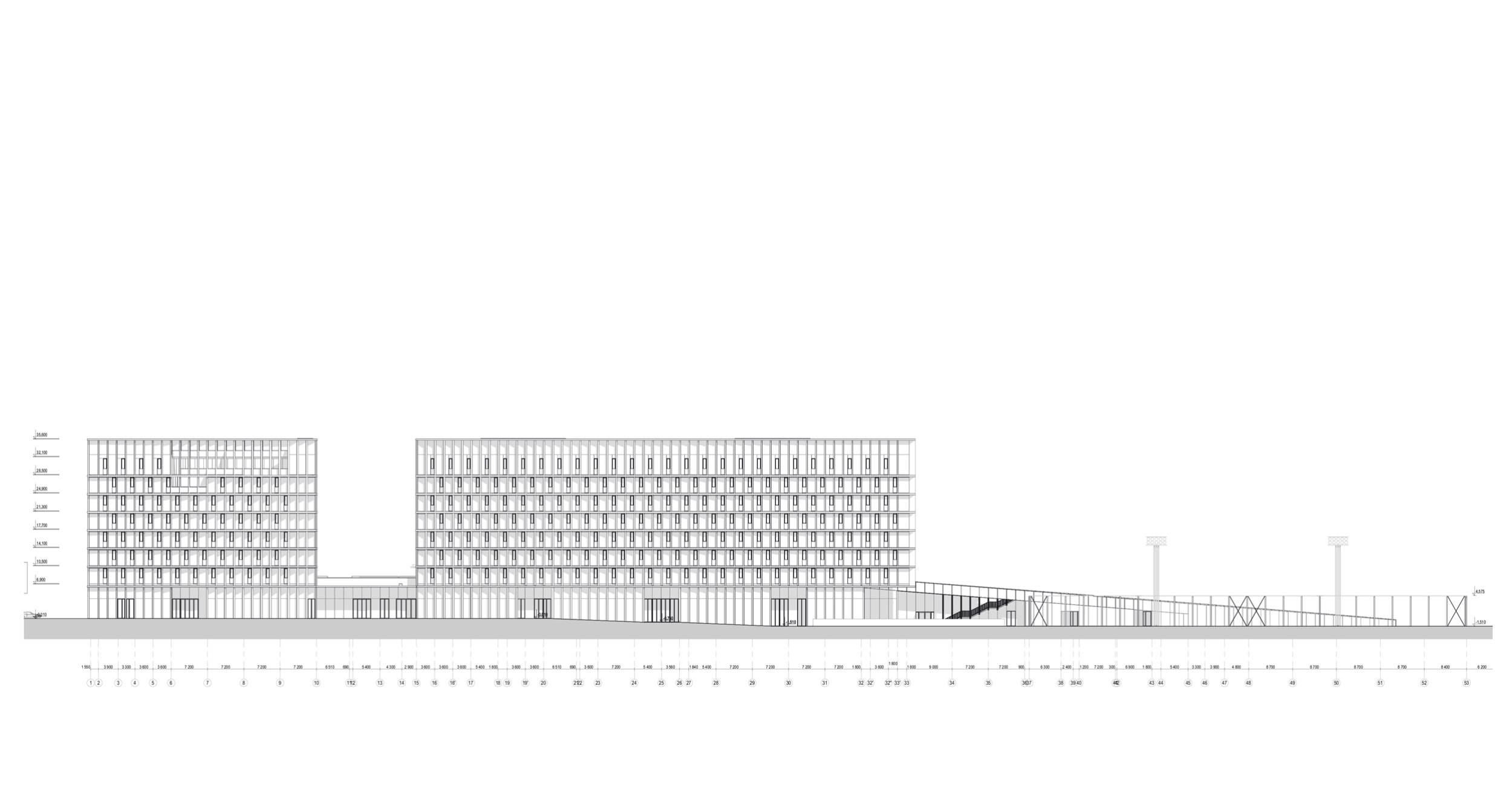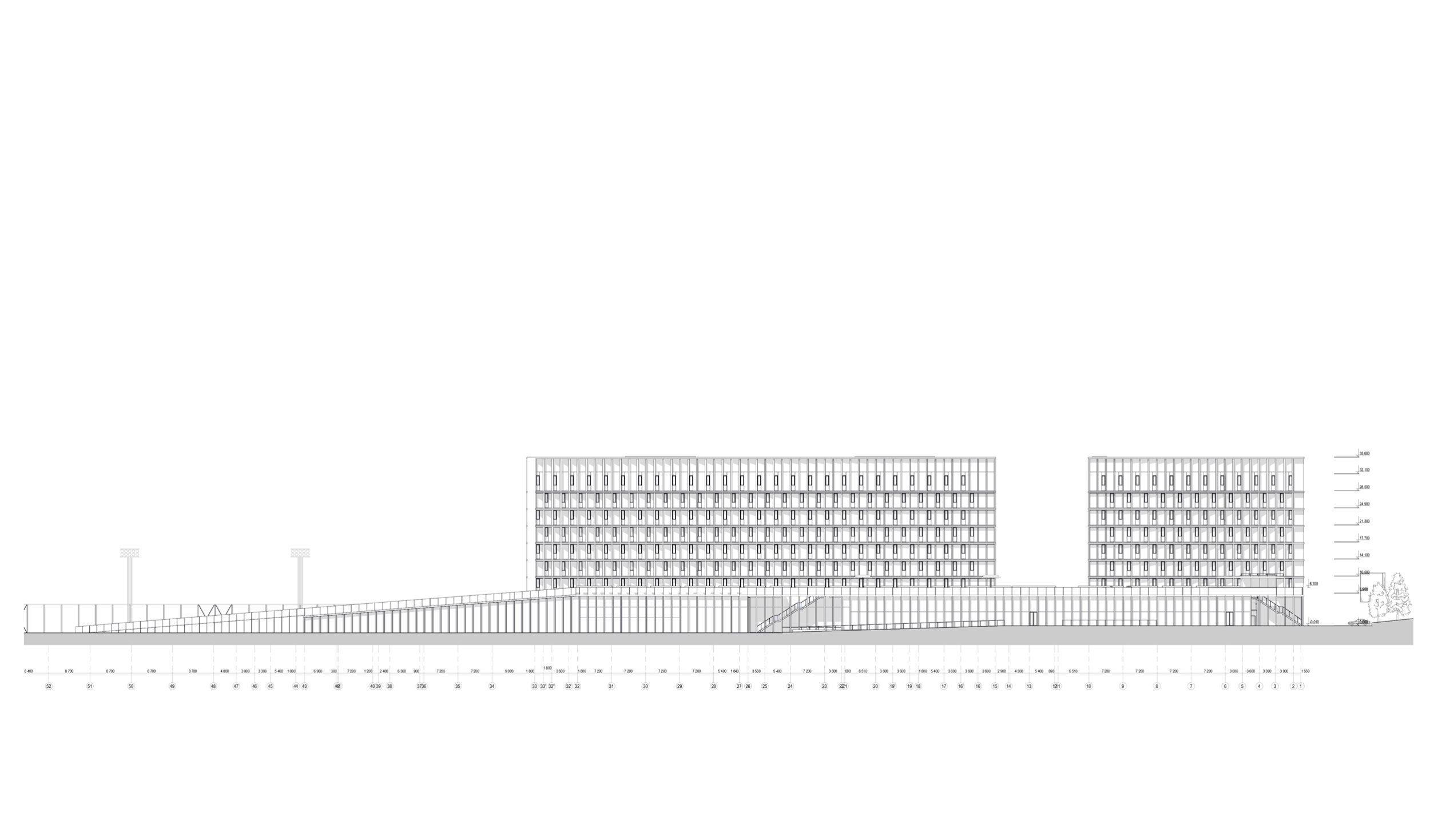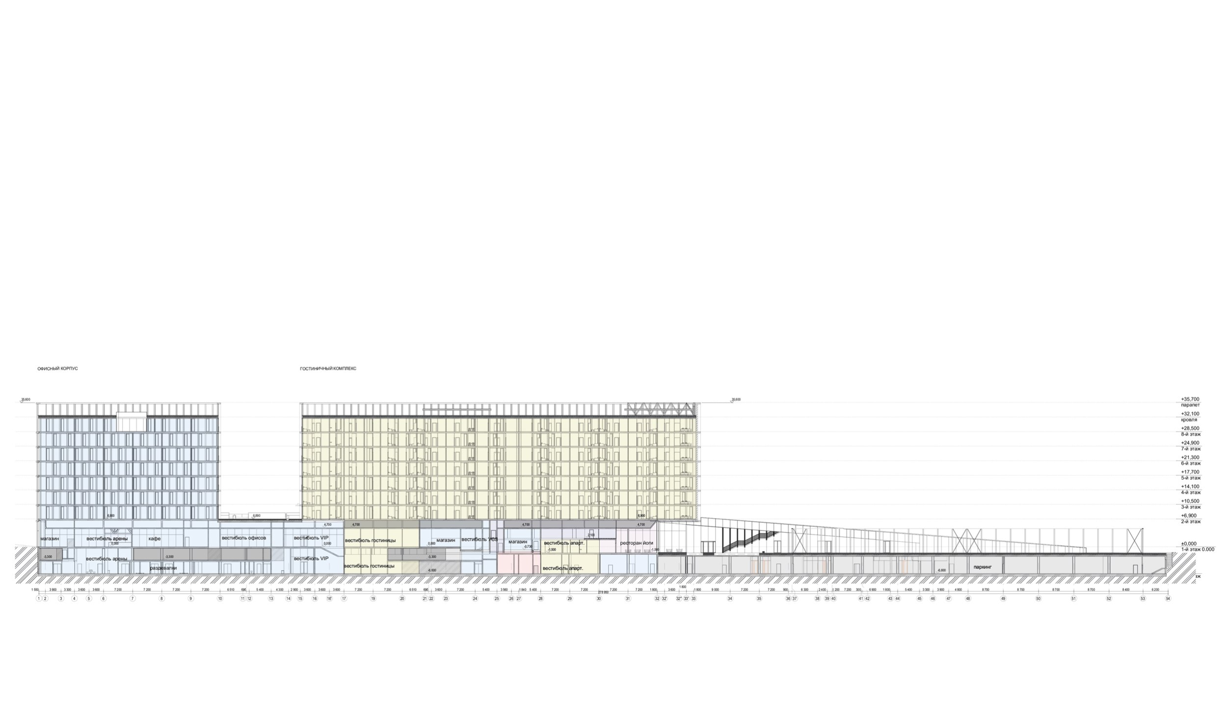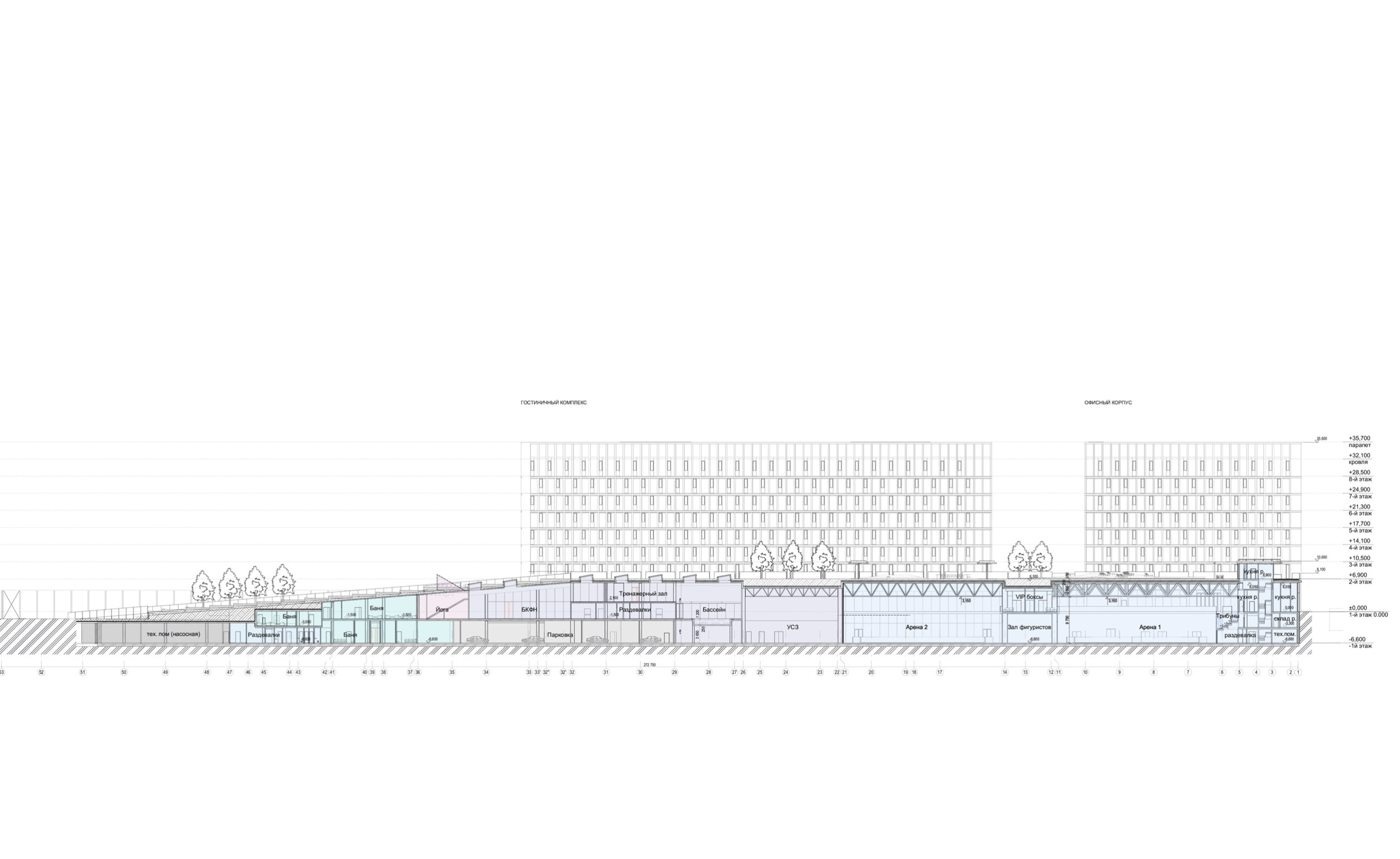 Разрез 3-3. Многофункциональный спортивно-развлекательный комплекс с ледовым комплексом, гостиницей и ФОК на Дружинниковской улице, второй вариант 2025 года