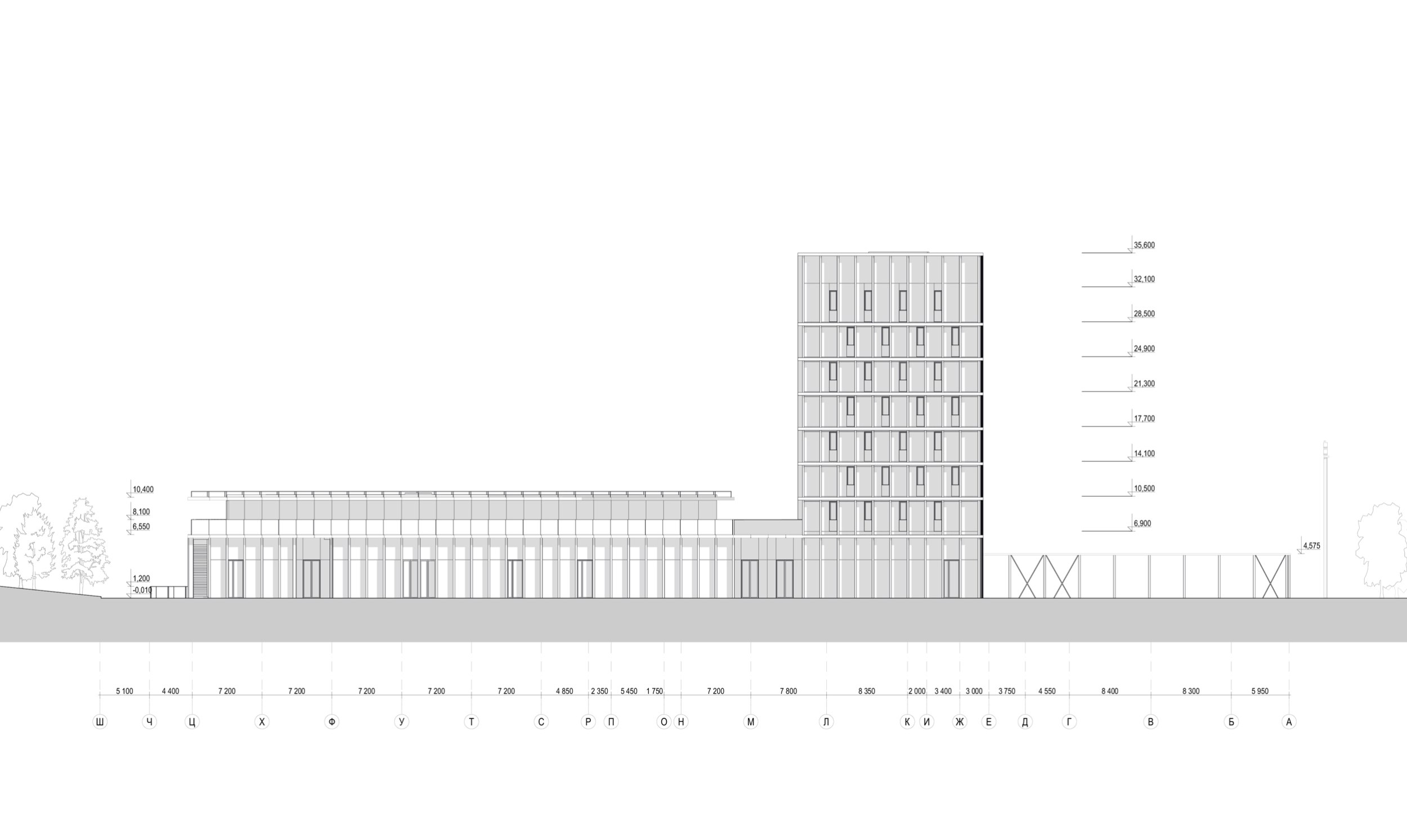 Разрез 5-5. Многофункциональный спортивно-развлекательный комплекс с ледовым комплексом, гостиницей и ФОК на Дружинниковской улице, второй вариант 2025 года
