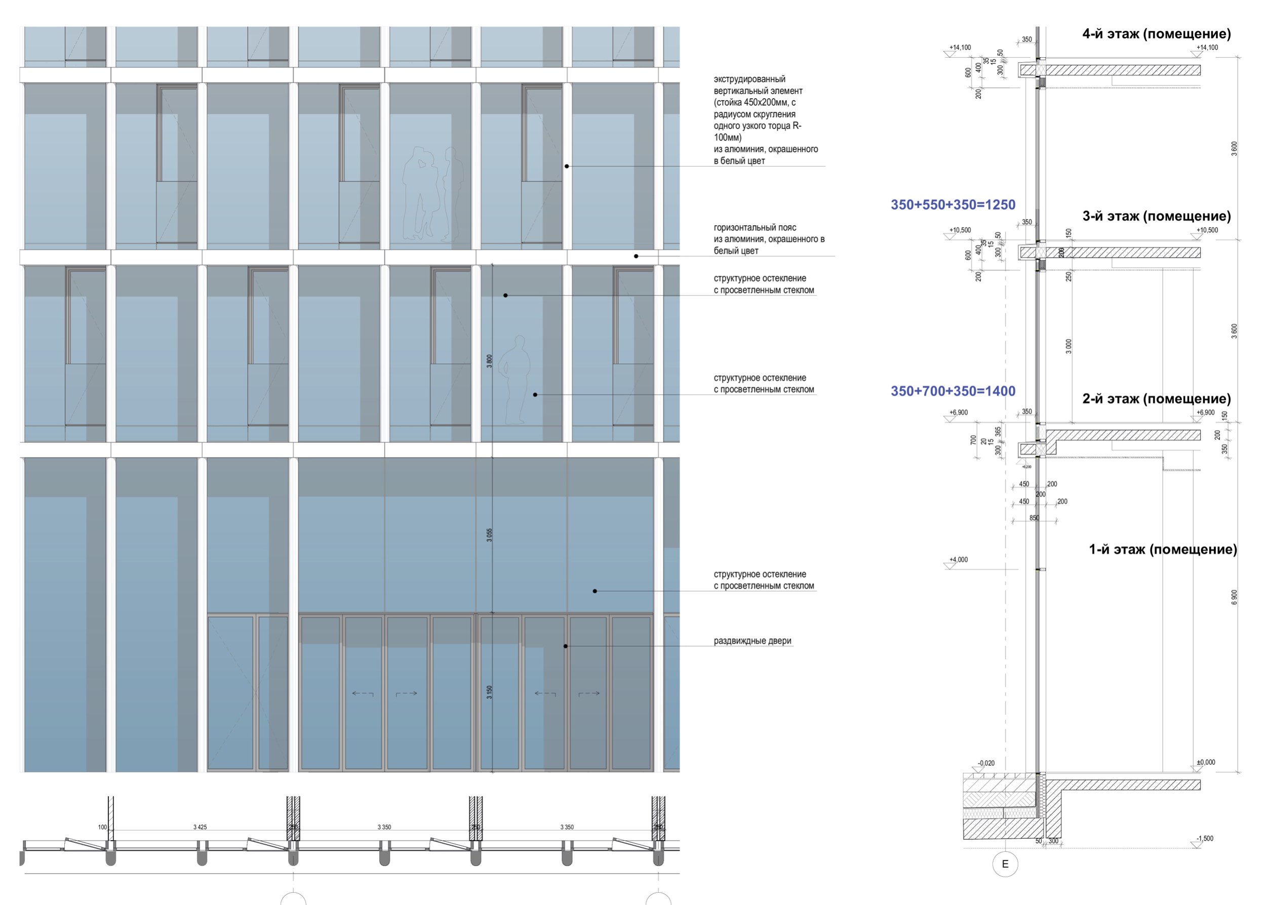 Деталь фасада. Многофункциональный спортивно-развлекательный комплекс с ледовым комплексом, гостиницей и ФОК на Дружинниковской улице, второй вариант 2025 года