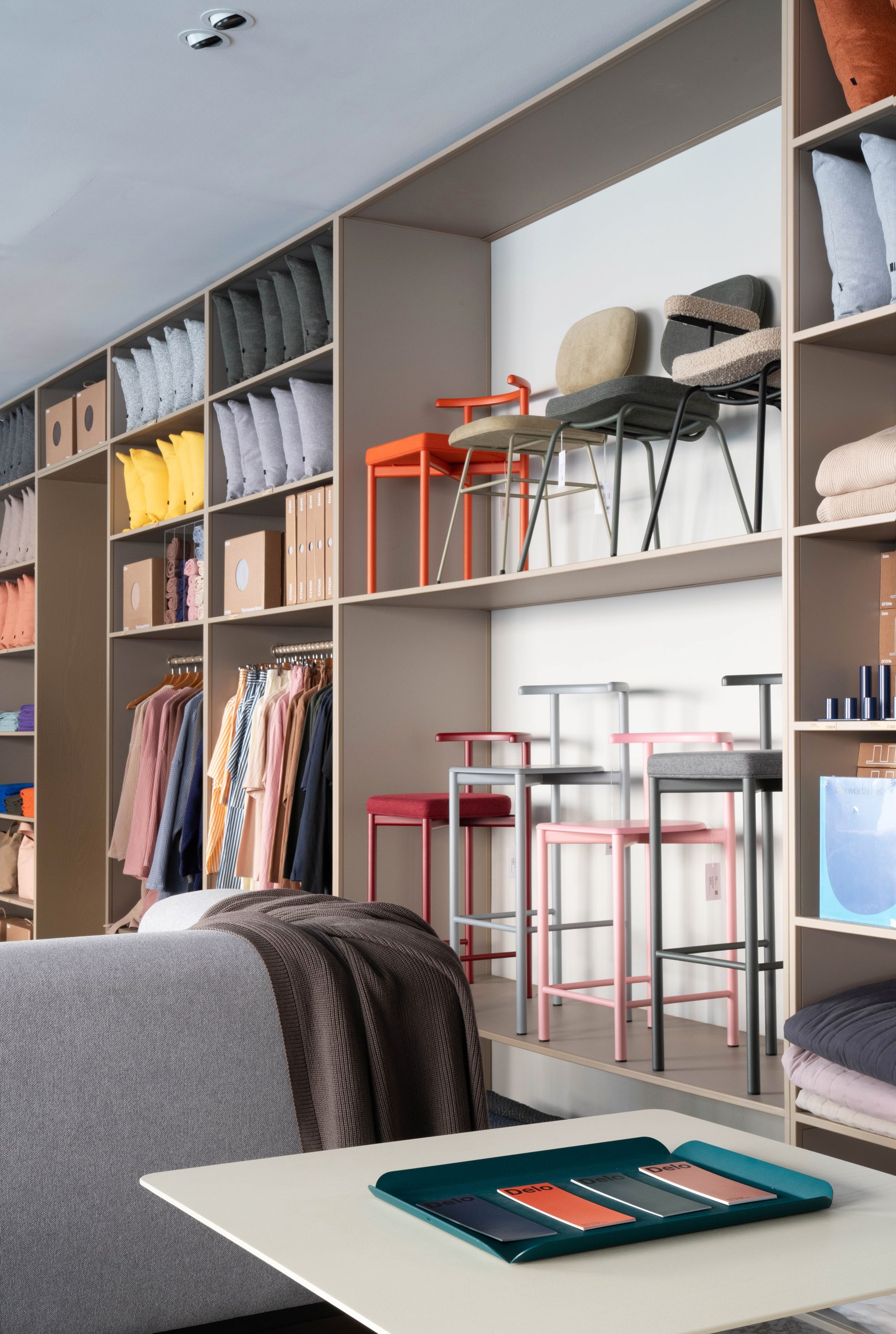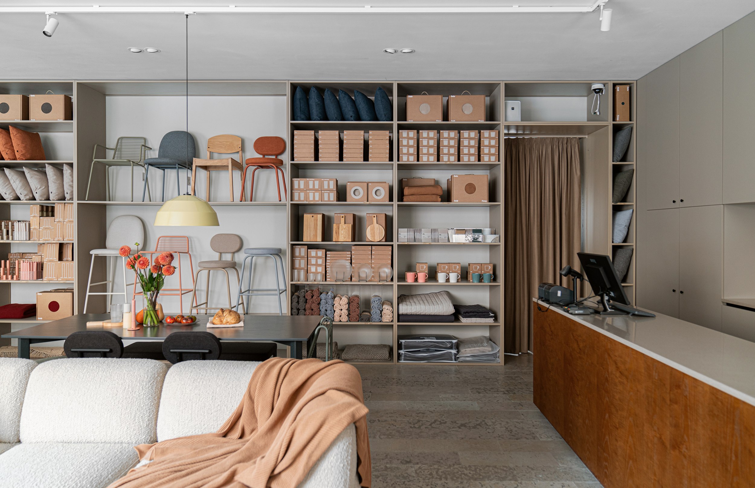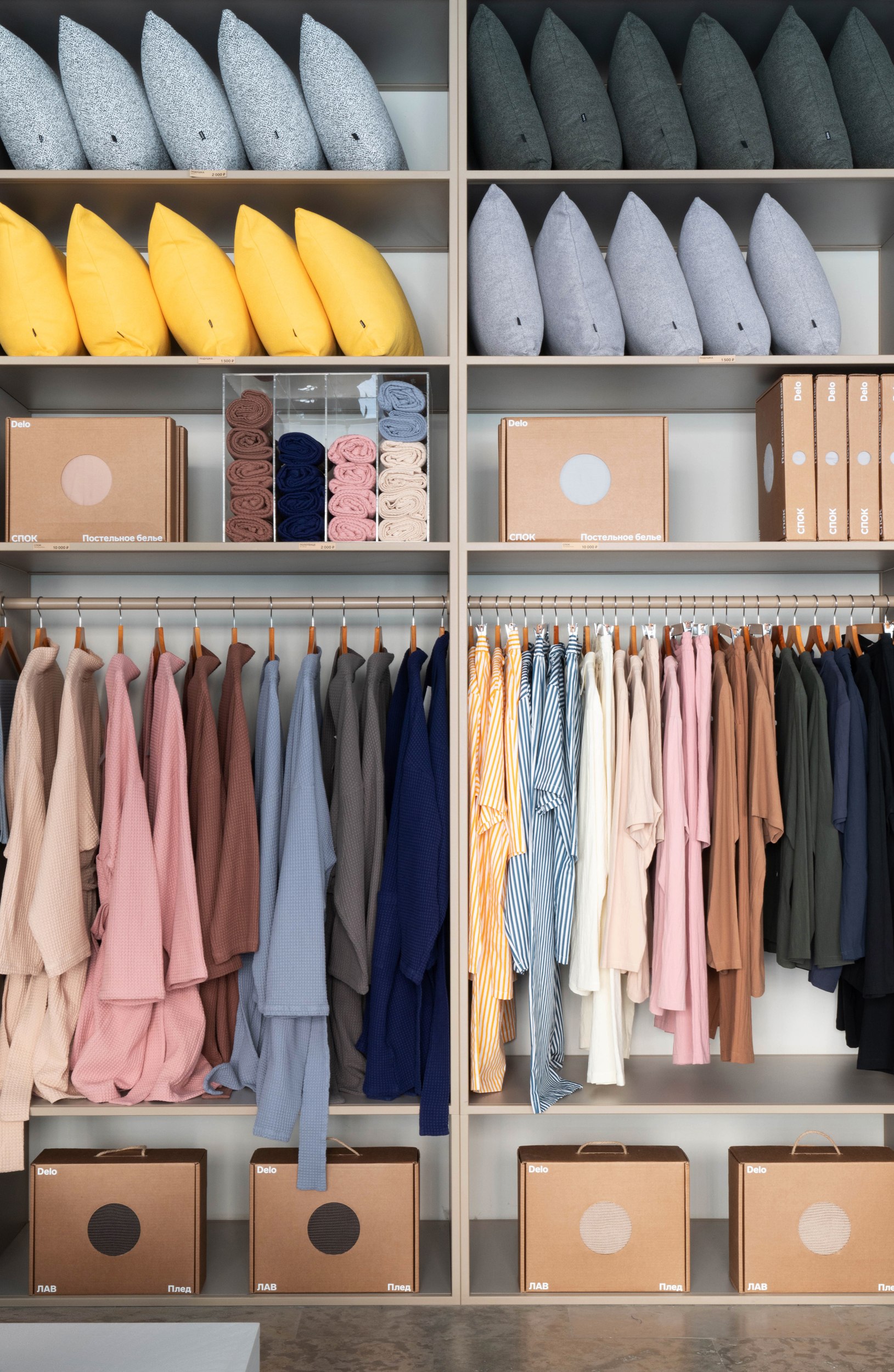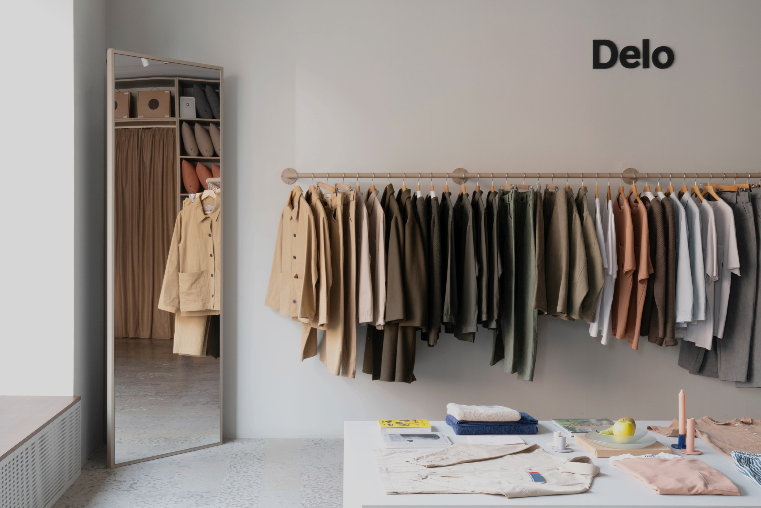 Проект объединяет шоурум и офис команды и демонстрирует все направления работы бренда. Здесь представлены мебель, предметы быта и одежда, а также макеты каркасных домов Delo House и книги об архитектуре и дизайне. Интерьер полностью состоит из мебели Delo – серийных моделей и специально спроектированных объектов.