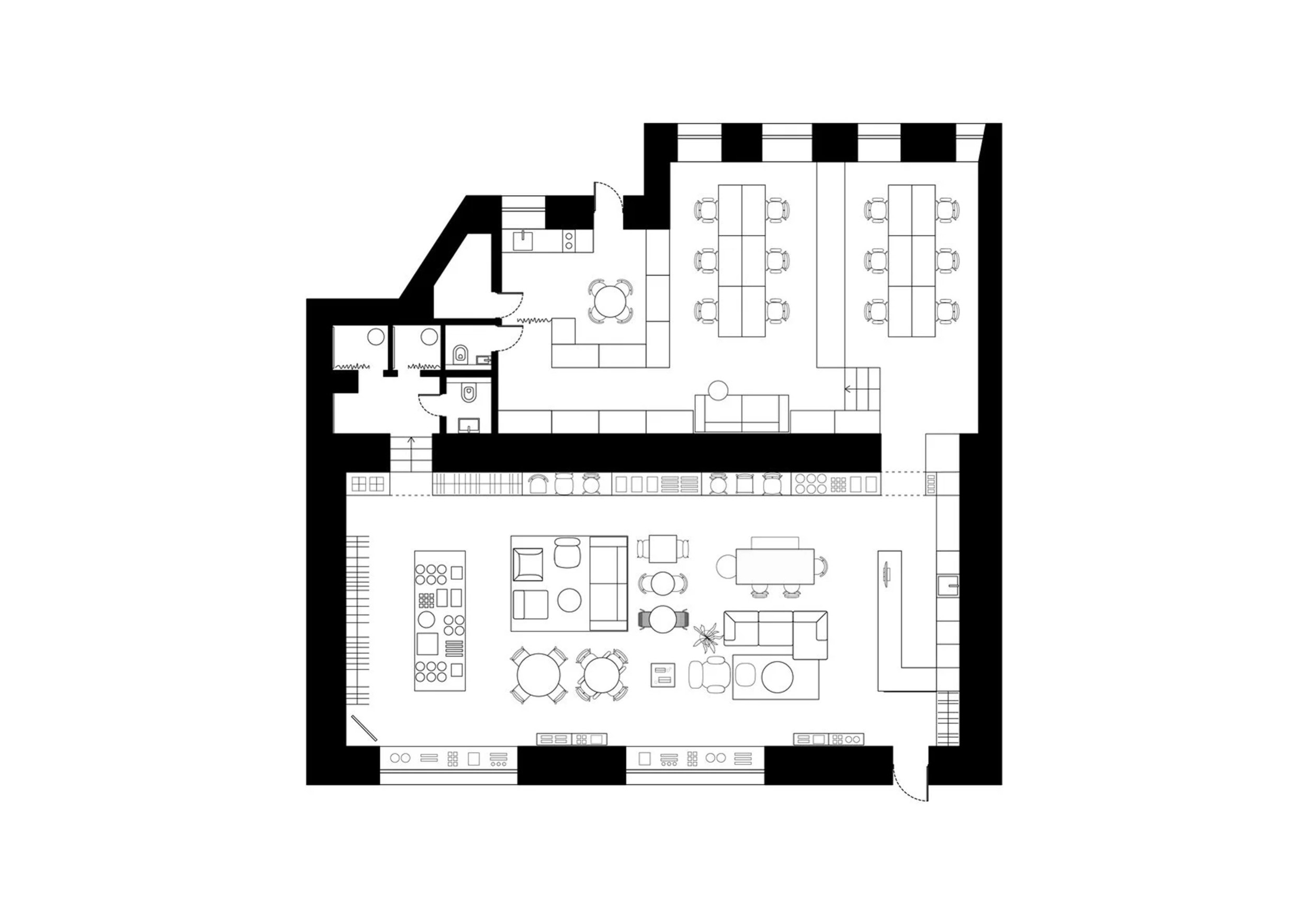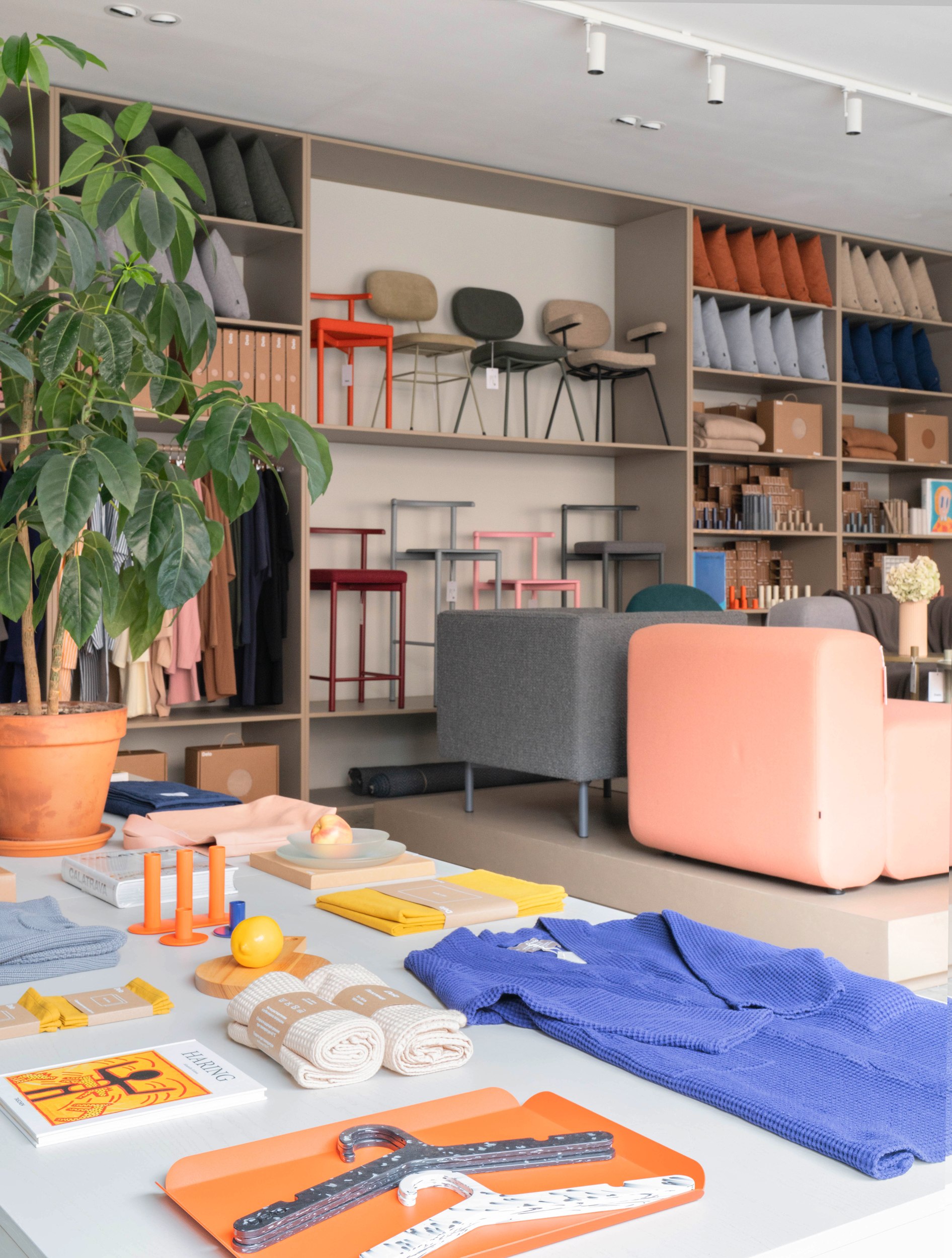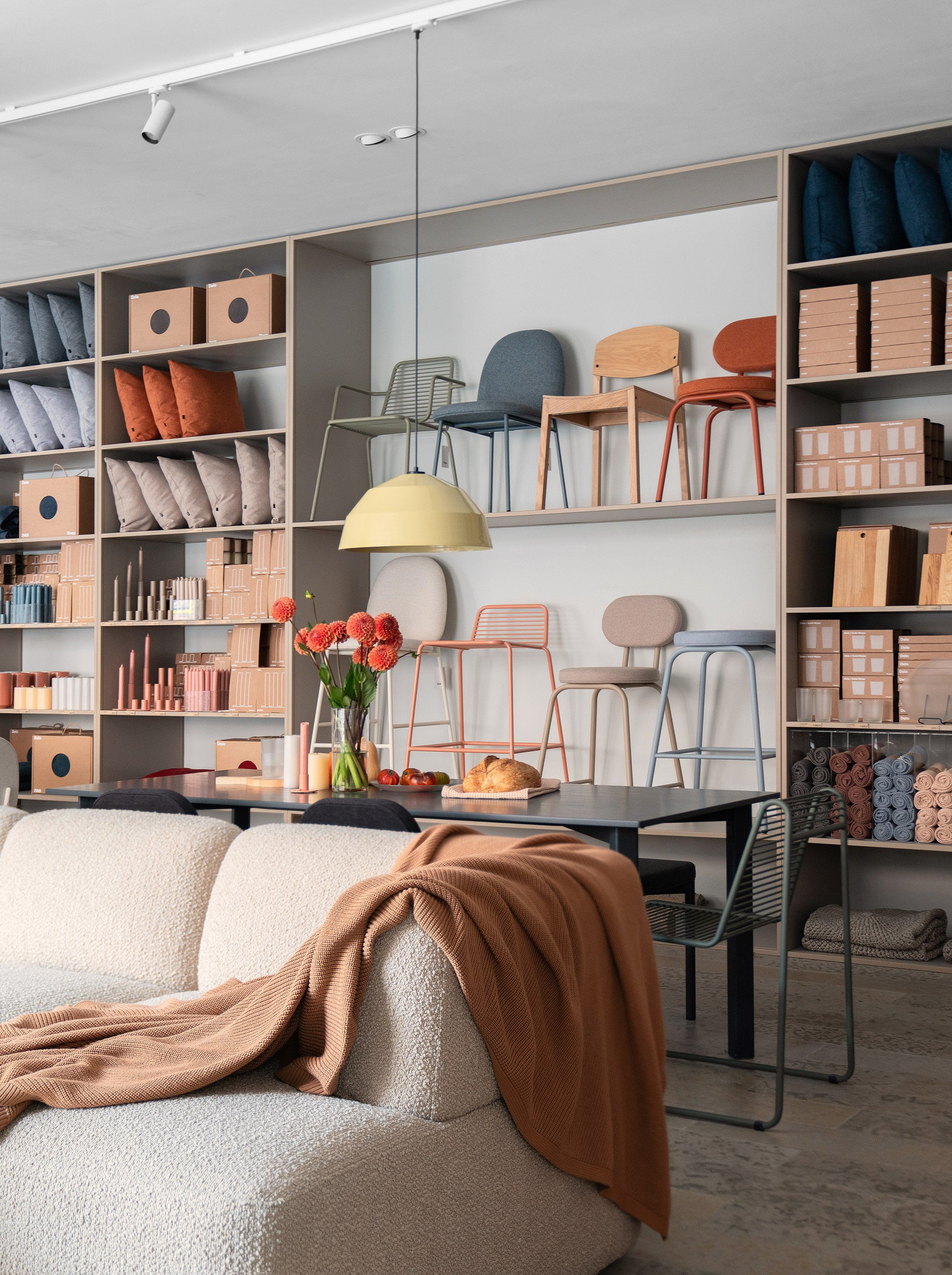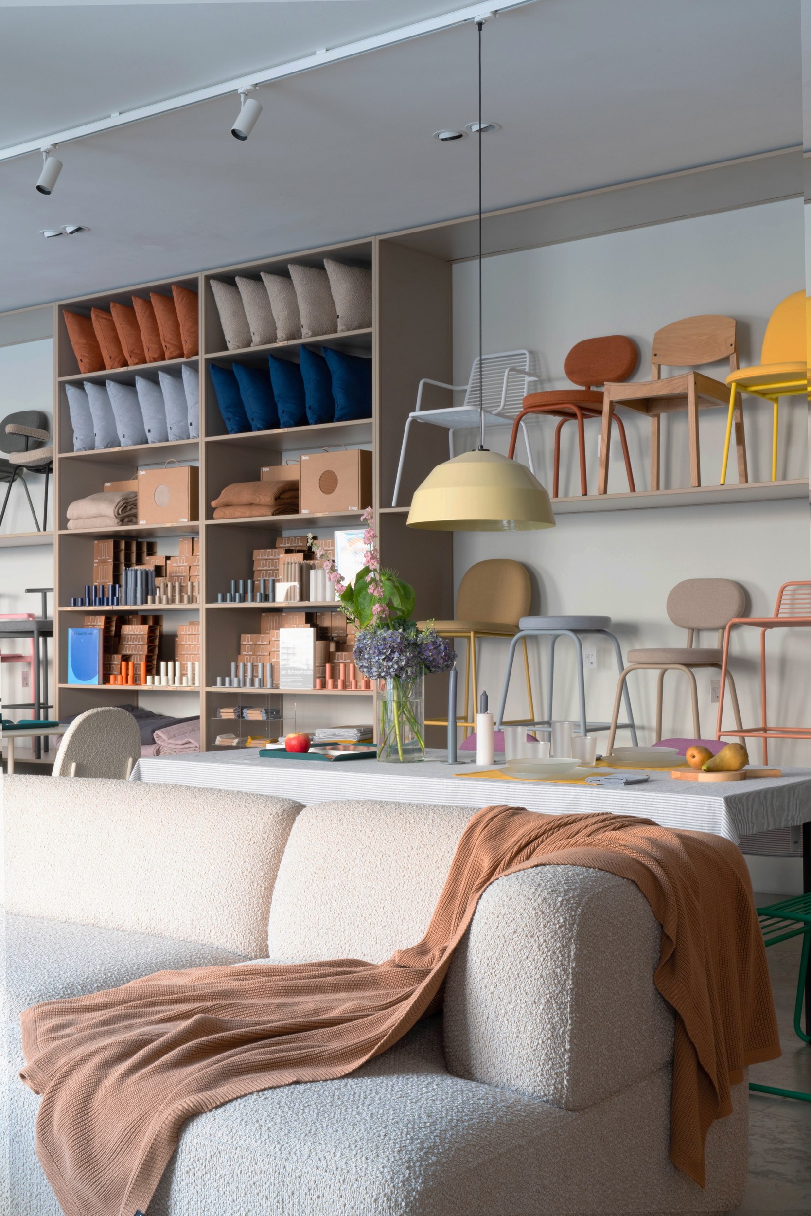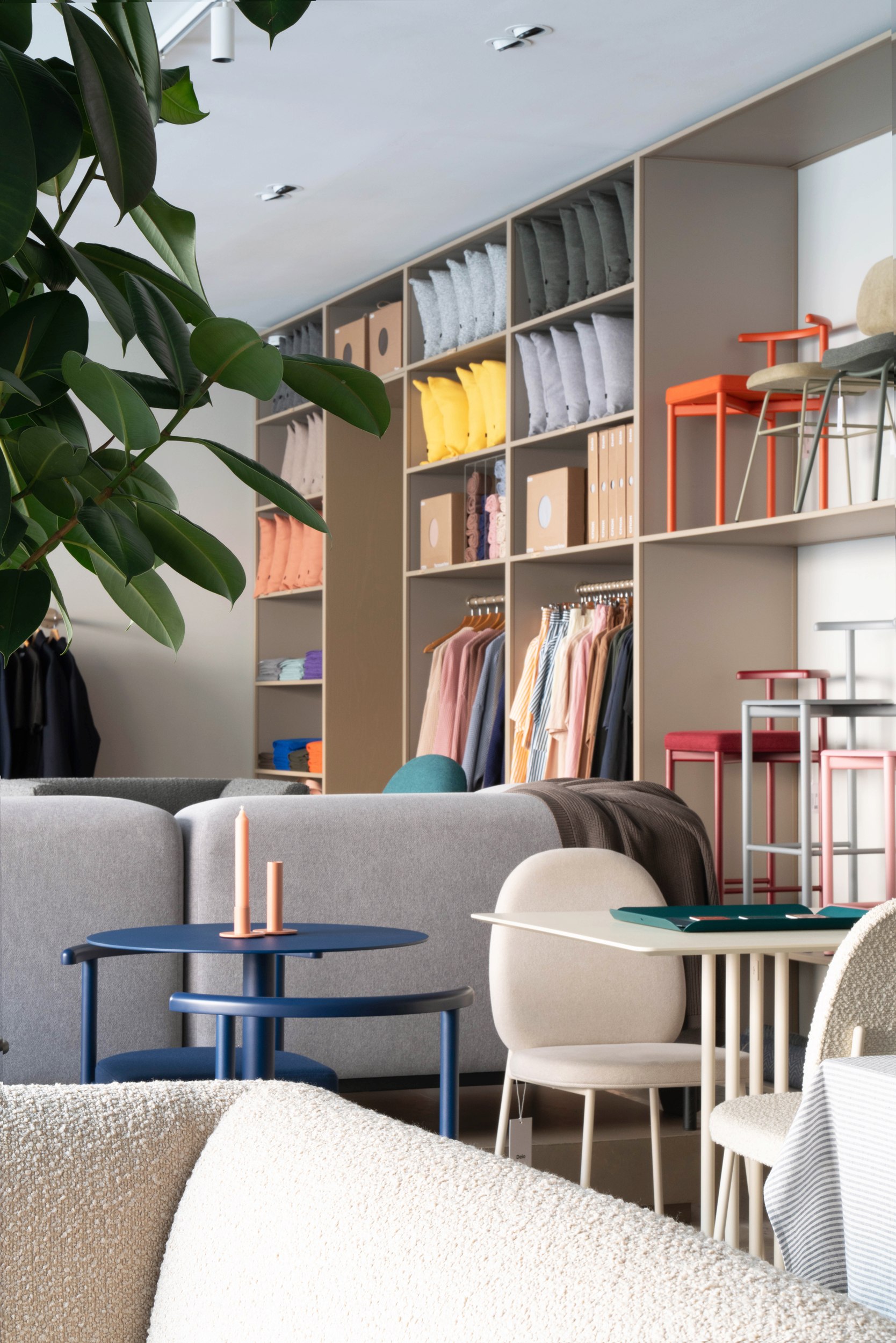 Проект объединяет шоурум и офис команды и демонстрирует все направления работы бренда. Здесь представлены мебель, предметы быта и одежда, а также макеты каркасных домов Delo House и книги об архитектуре и дизайне. Интерьер полностью состоит из мебели Delo – серийных моделей и специально спроектированных объектов.