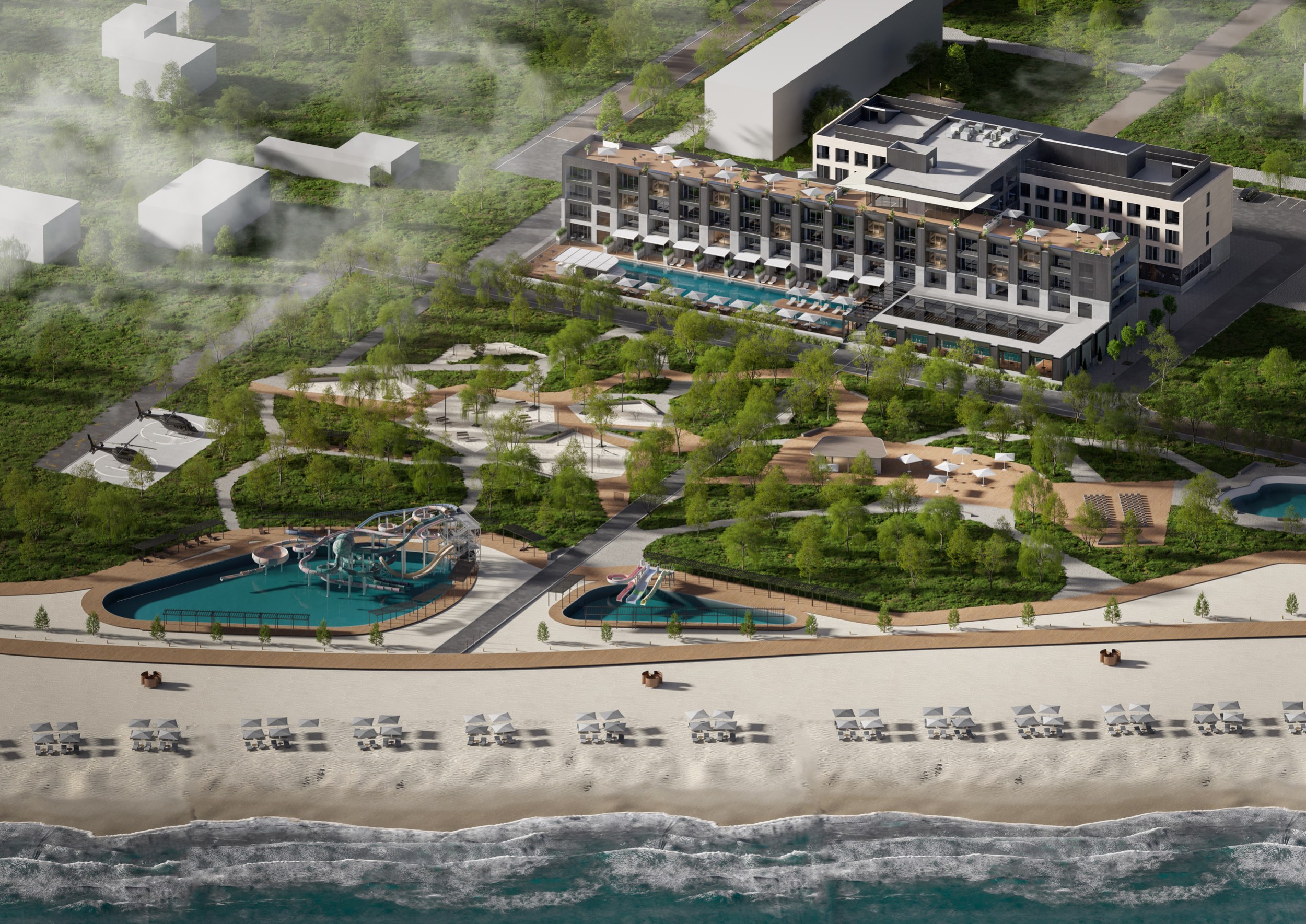 Гостиничный комплекс на побережье Каспийского моря представляет собой результат реконструкции существующего здания.
