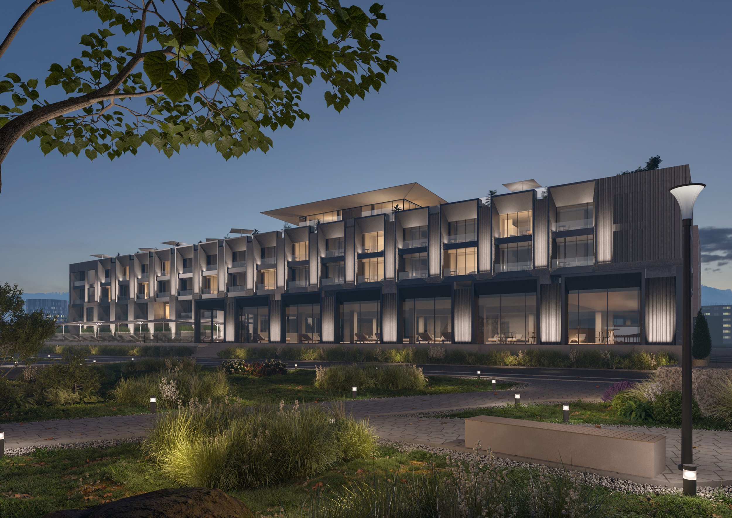 Архитектура комплекса сопровождает гостя: от входа в лобби до вида из окна – каждый элемент работает на ощущение уюта, достоинства и покоя.