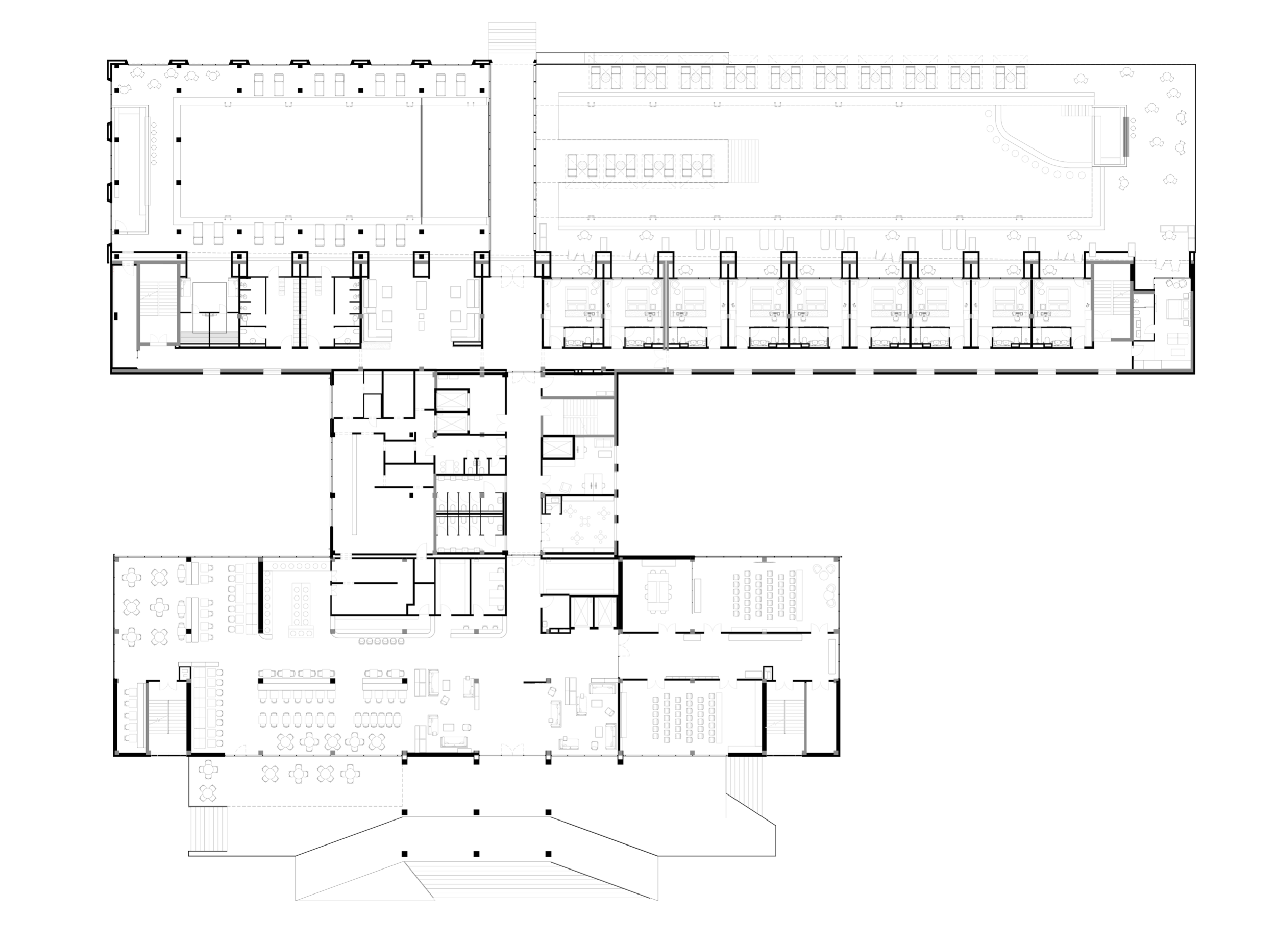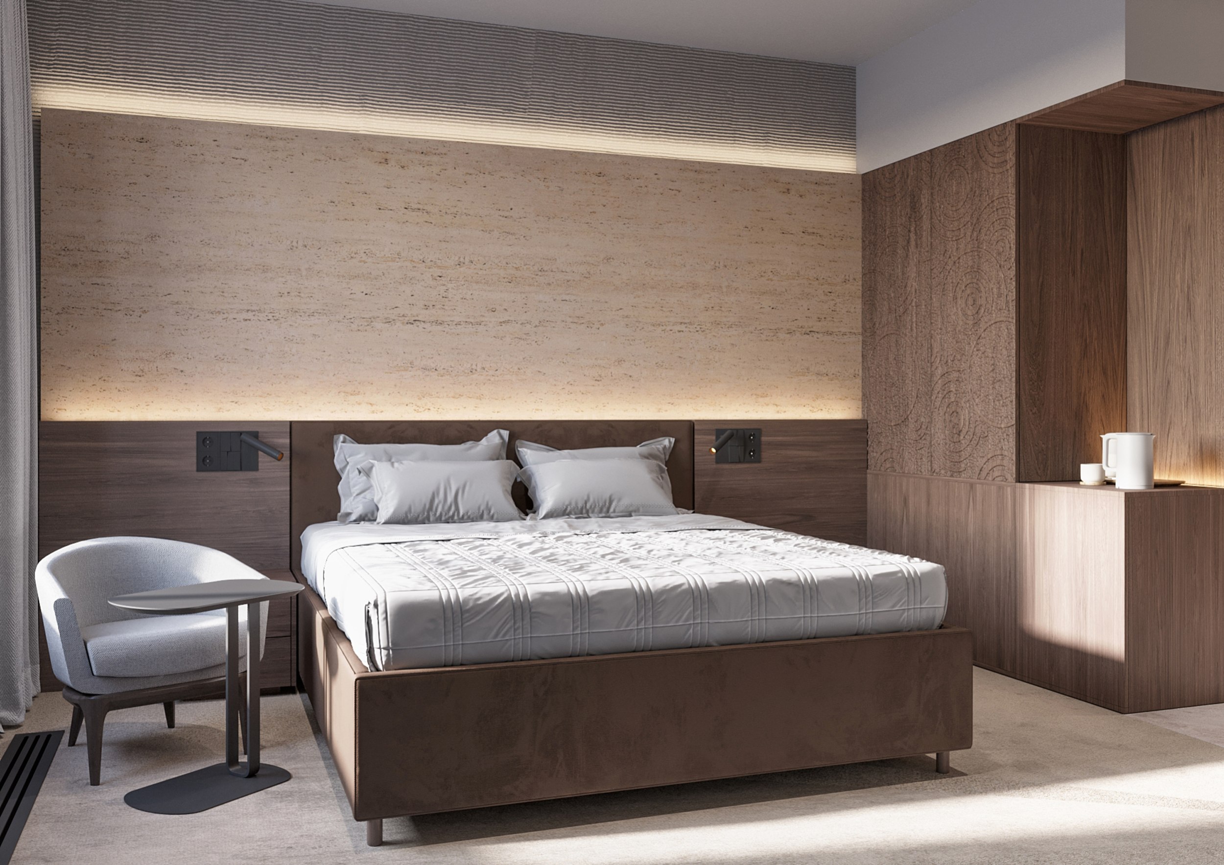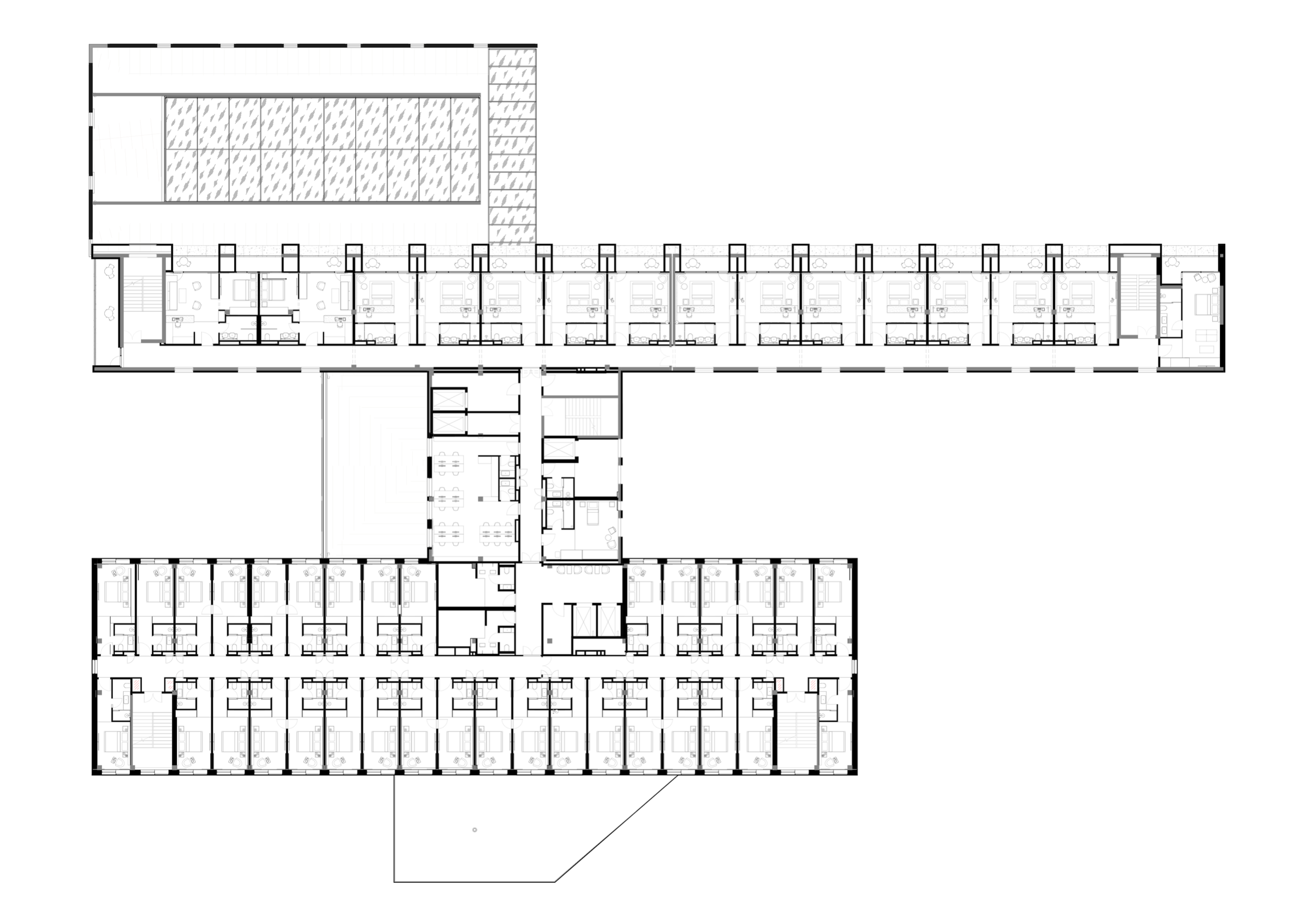 Пространственные сценарии были адаптированы под современные требования гостиничного размещения: каждый элемент – от конфигурации номерного фонда до логистики обслуживания – отвечает уровню международных операторов. Консультантом на всех этапах выступала команда ADHM, которая возьмет на себя управление объектом.