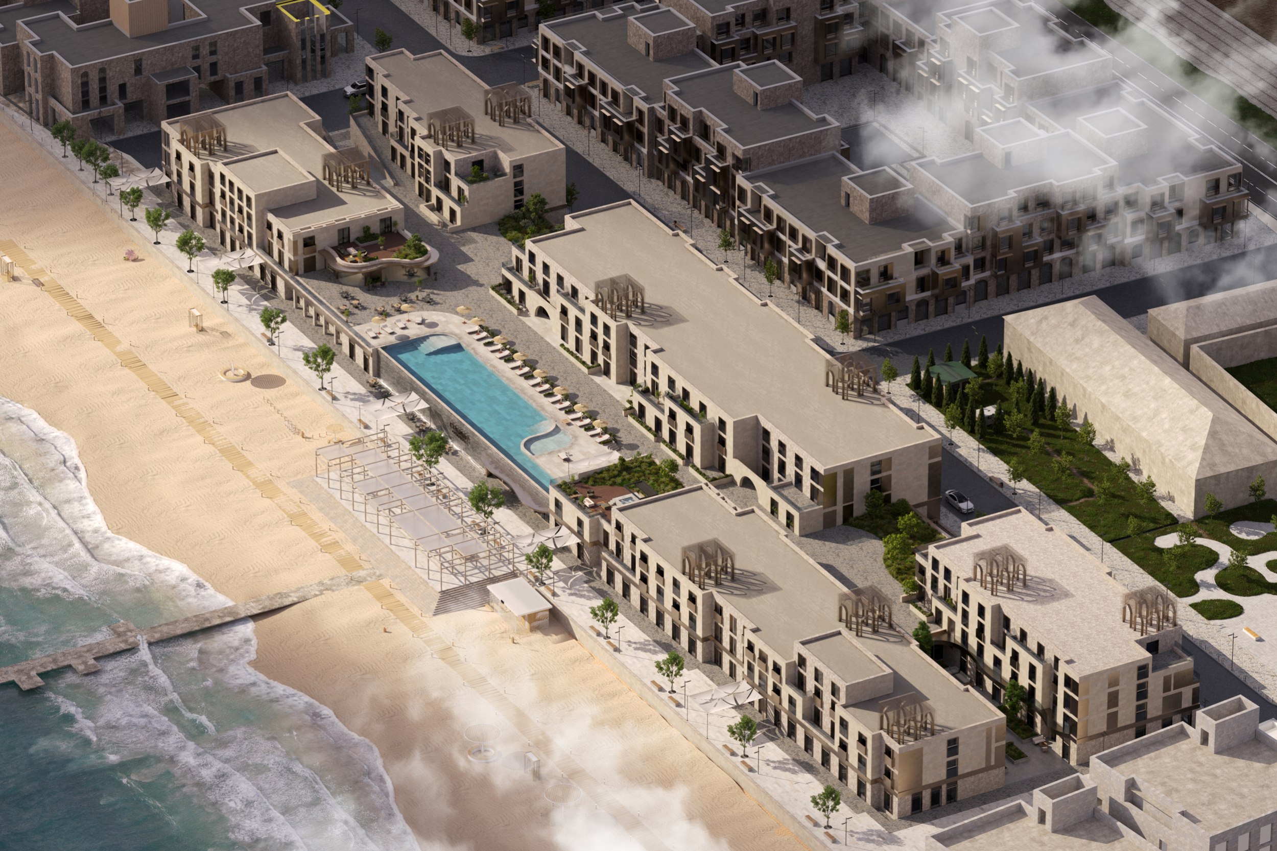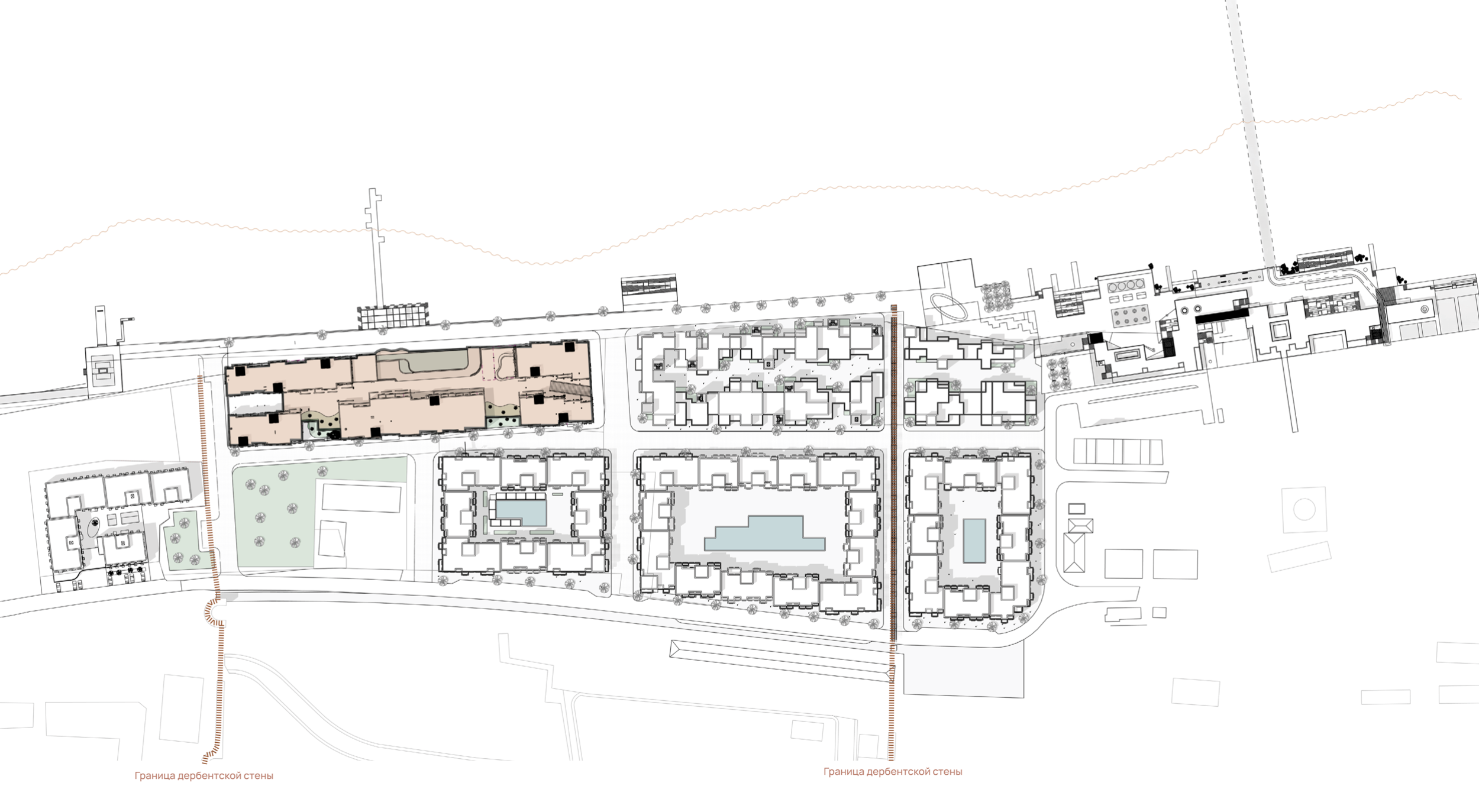 Новый многофункциональный комплекс на береговой линии Дербента представляет собой смелое архитектурное решение, органично вписанное в исторический контекст древнего города. Состоящий из трех основных корпусов, проект объединяет коммерческие, гостиничные и рекреационные функции, создавая уникальное пространство для жителей и гостей города.