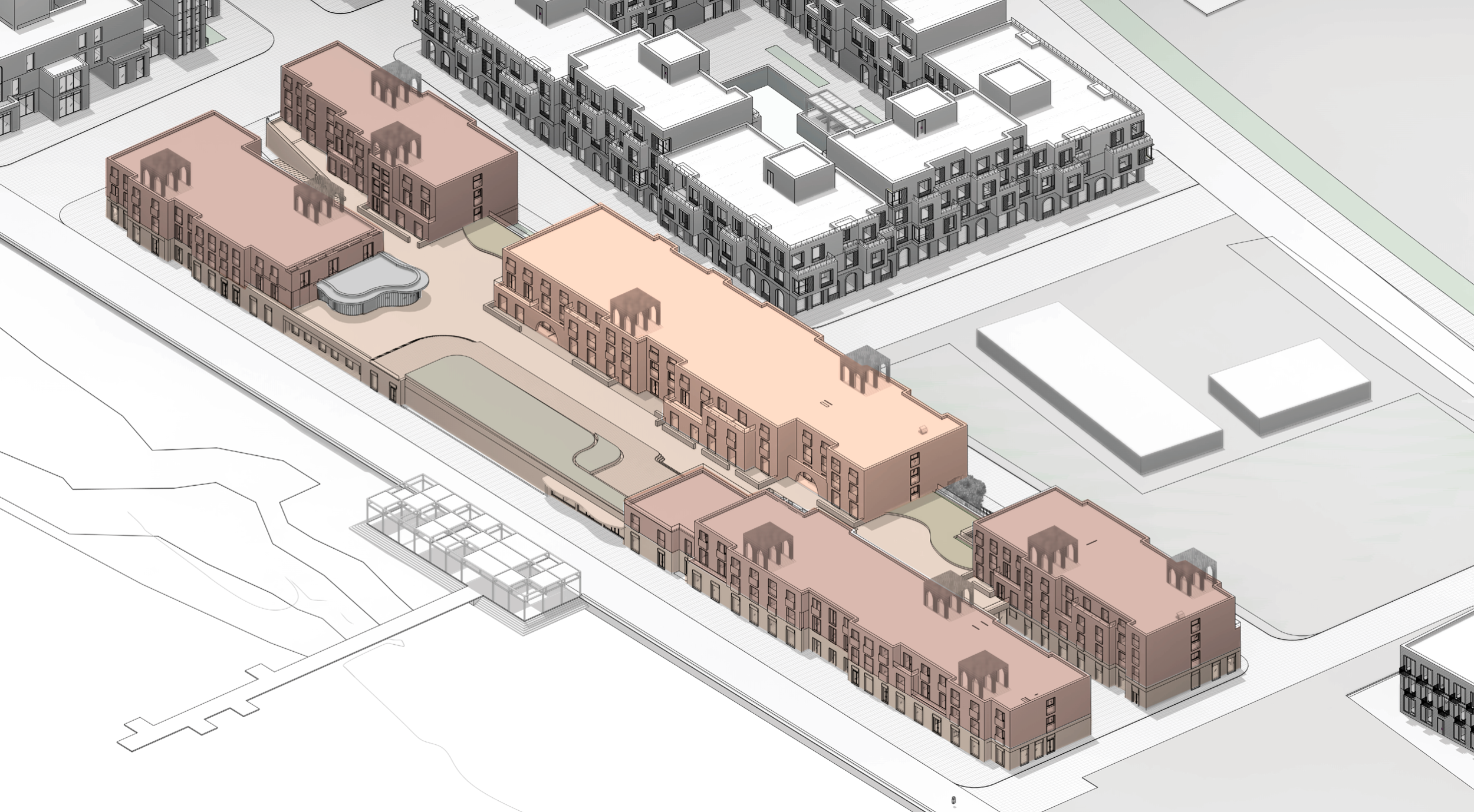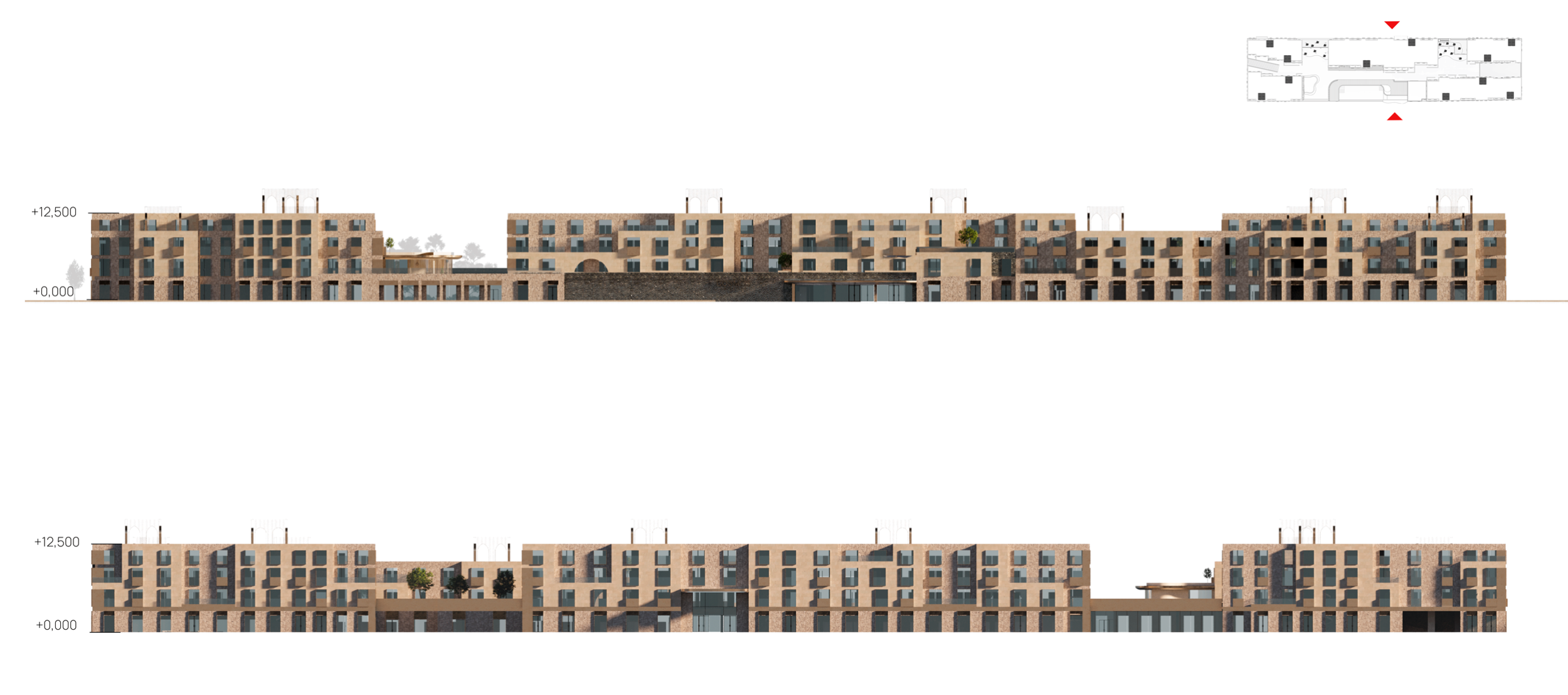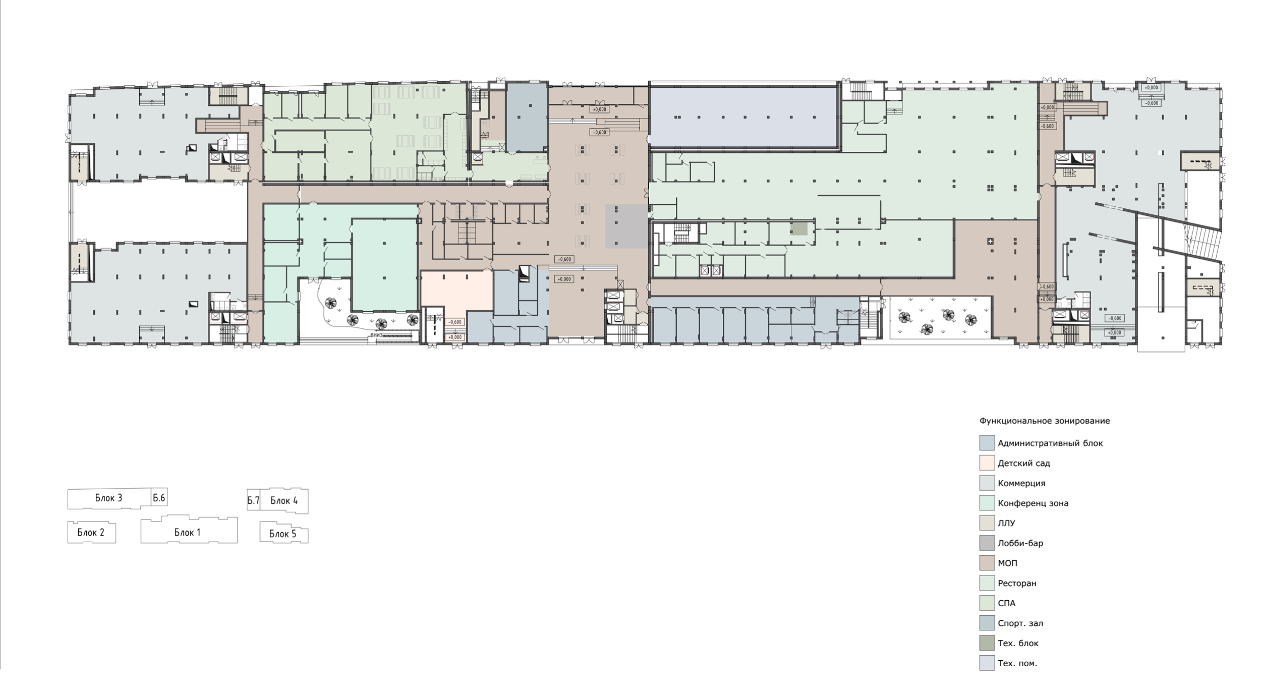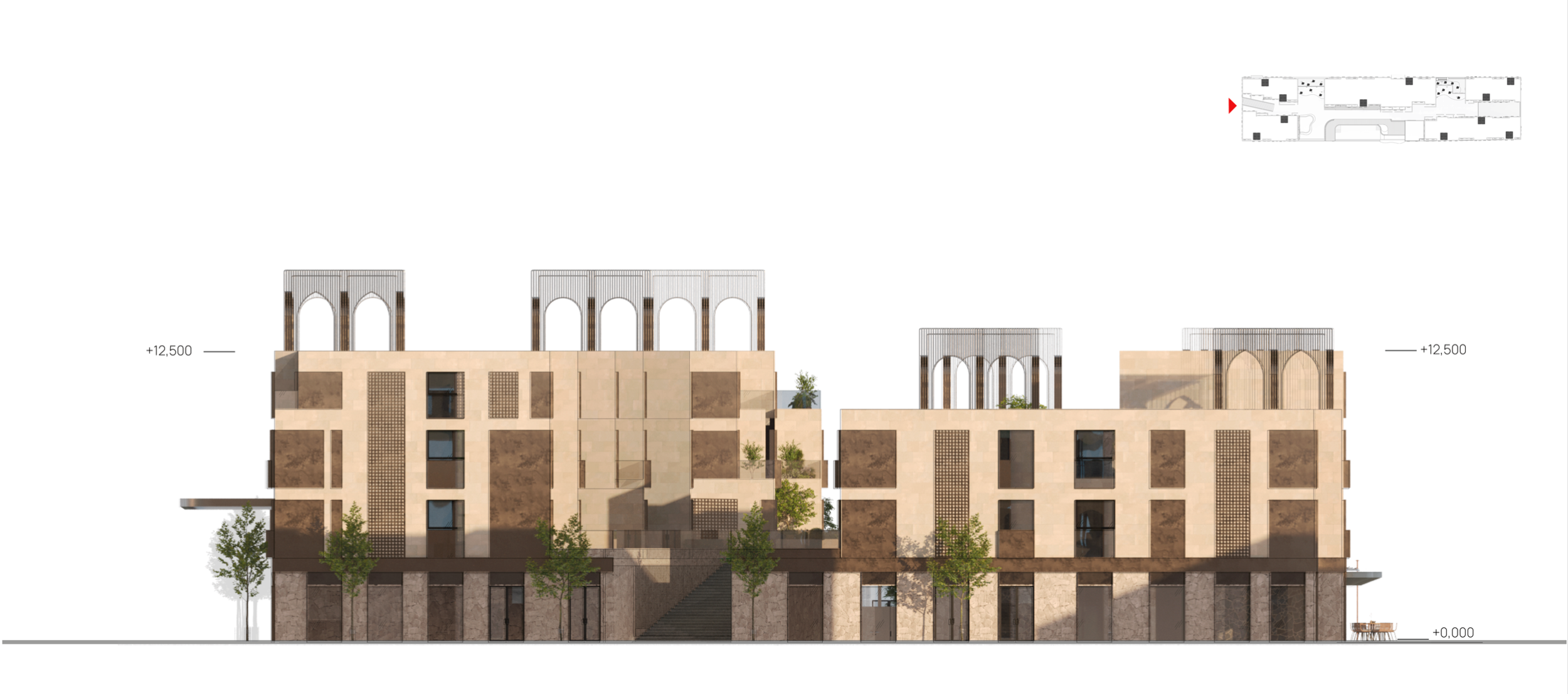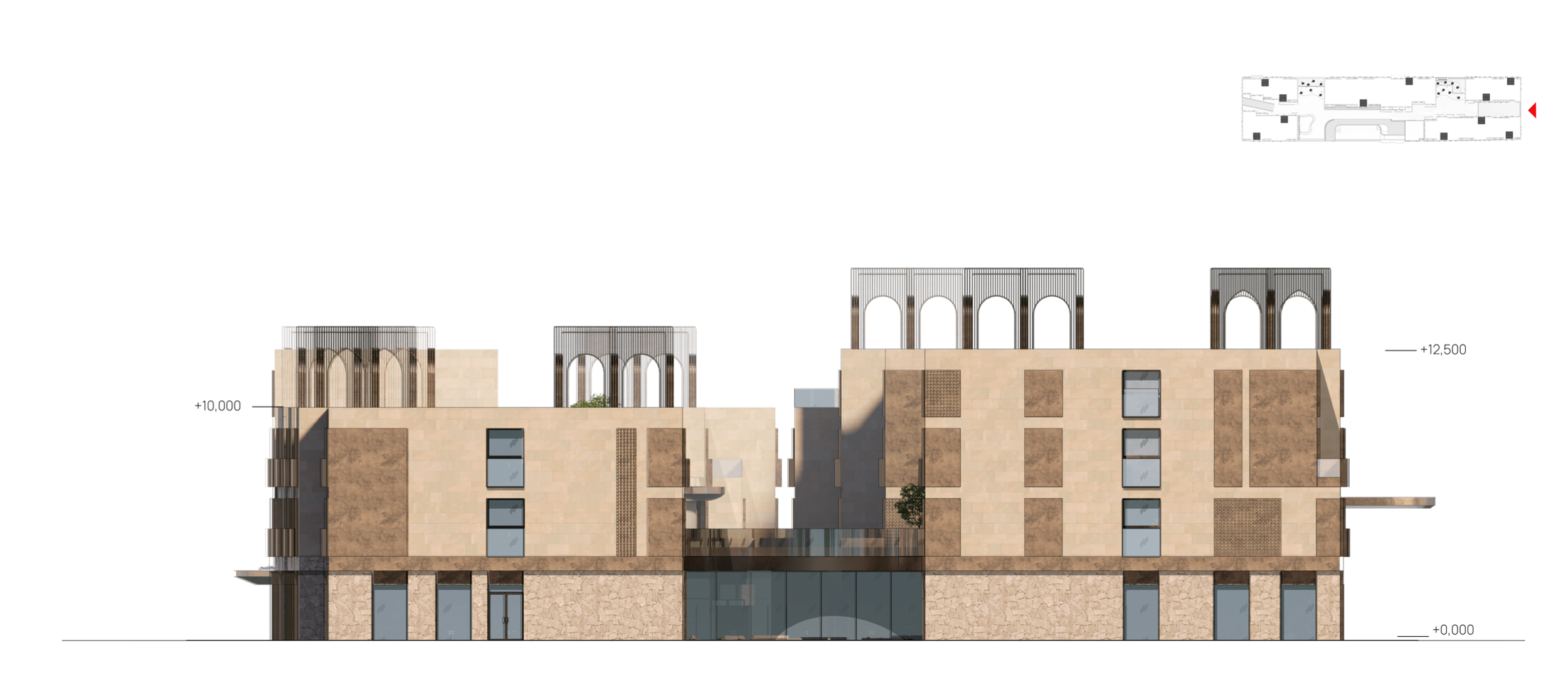Комплекс включает в себя коммерческое здание площадью 1000 м², просторный апарт-отель на 6000 м² и впечатляющий третий корпус, состоящий из пяти взаимосвязанных блоков.