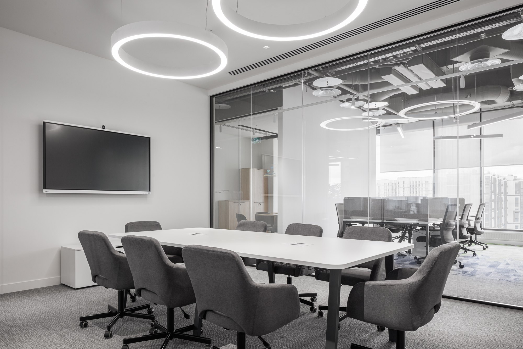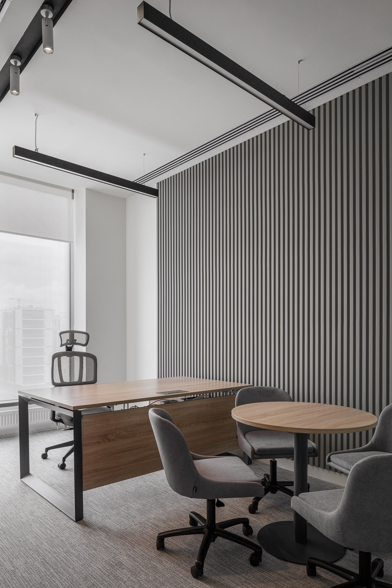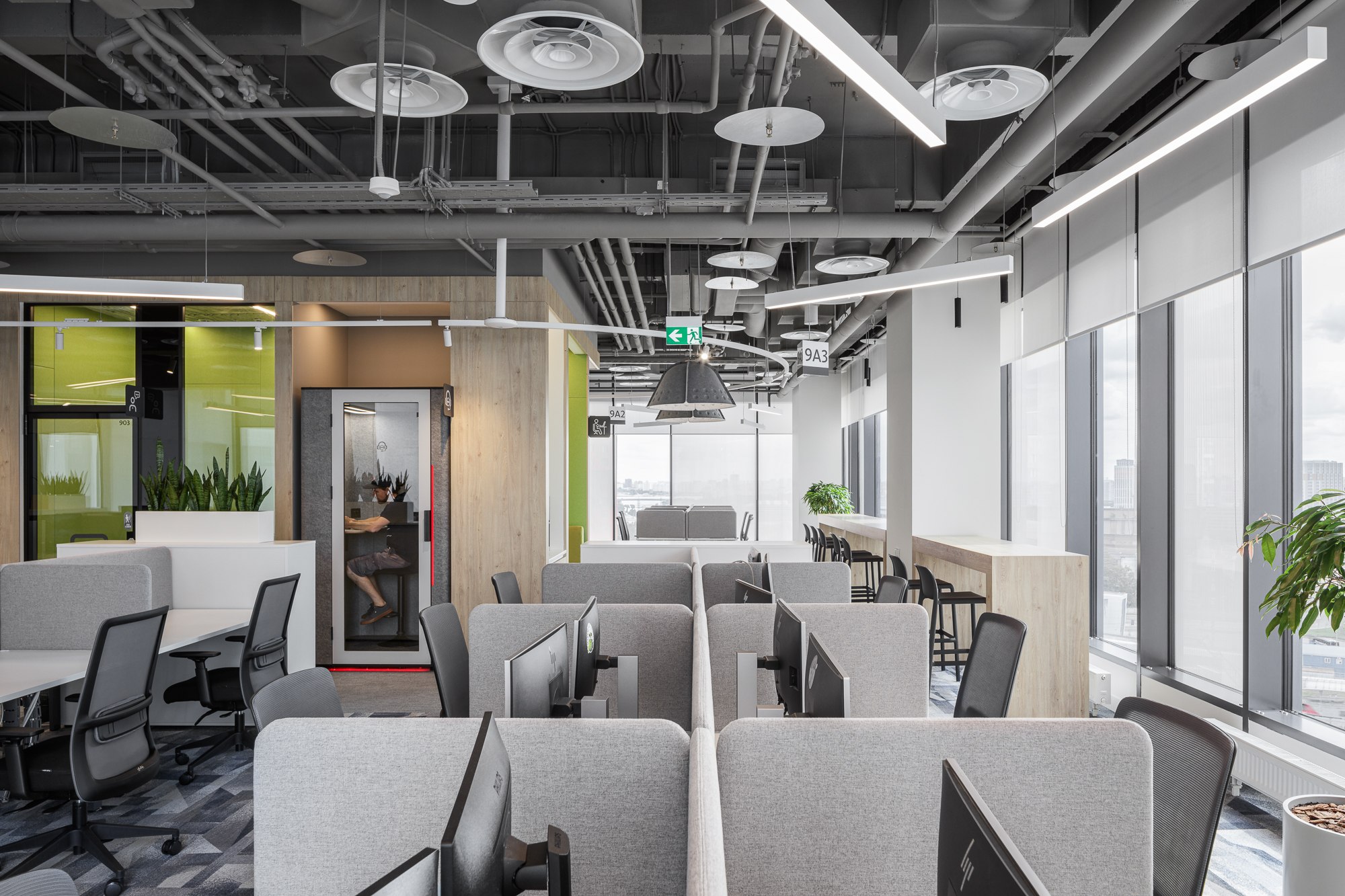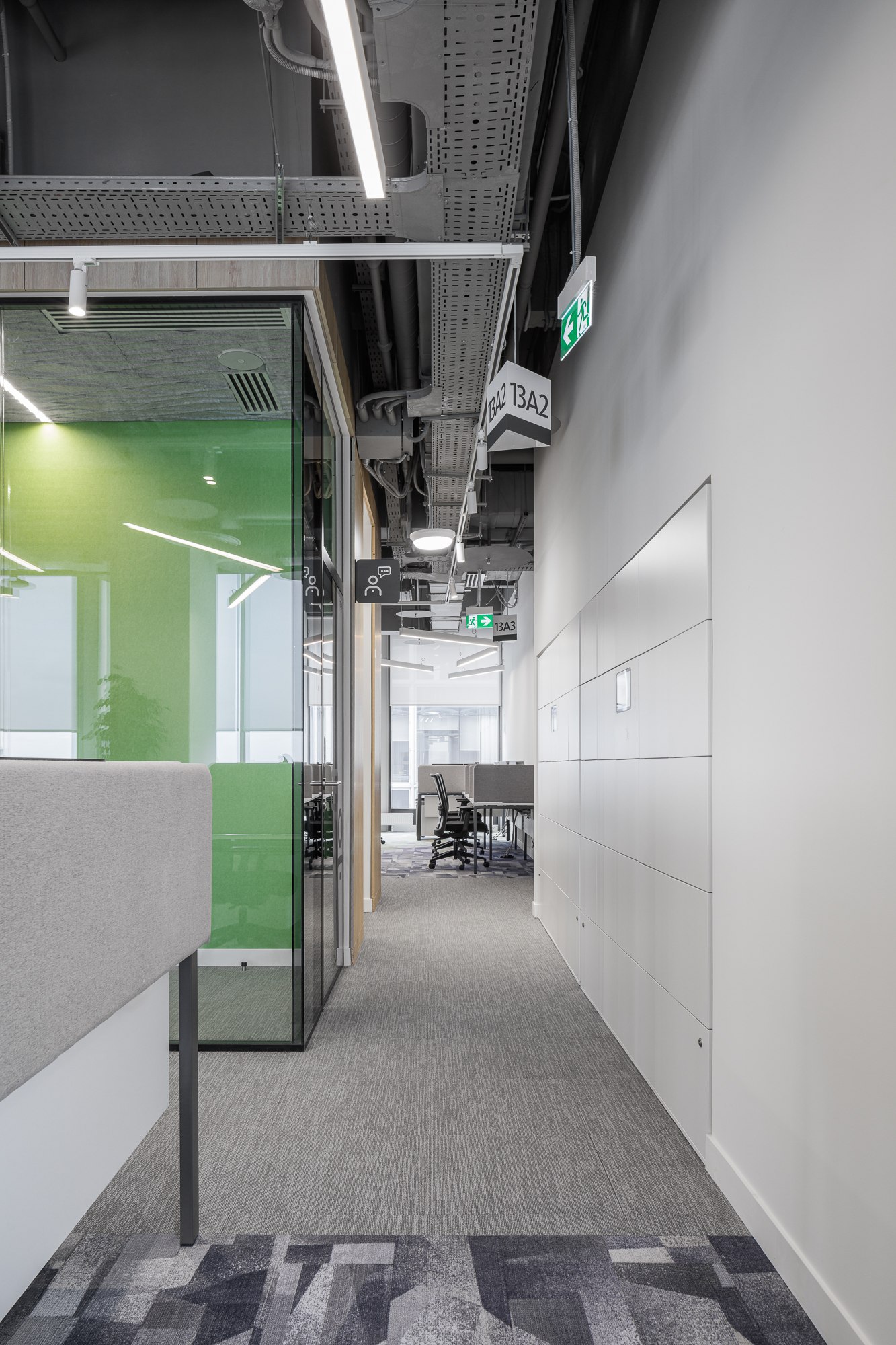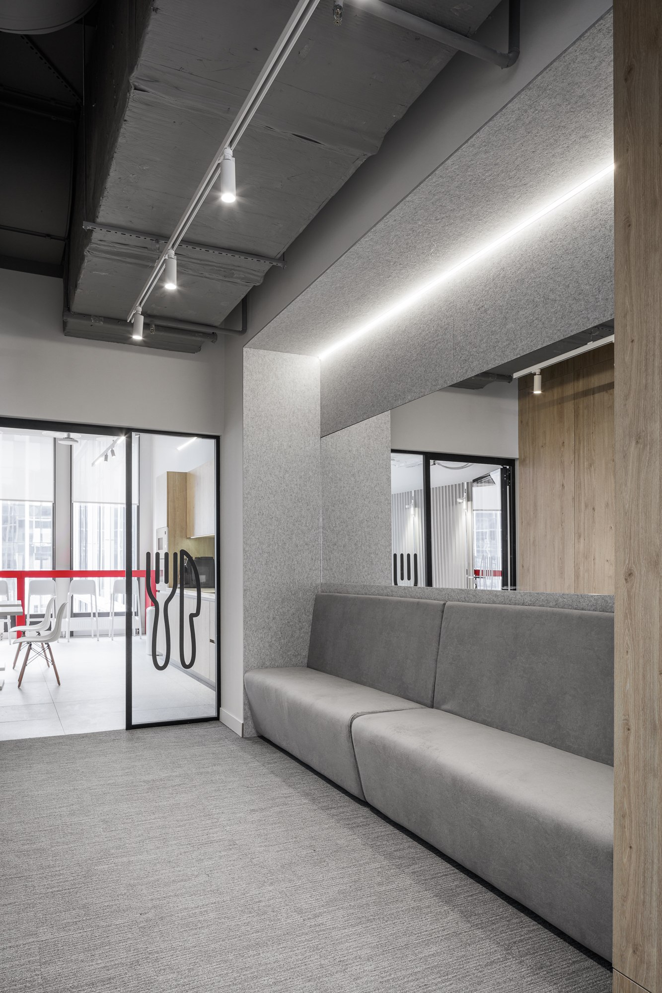 В интерьере офиса отразились ключевые ценности компании: новаторство, функциональность, внимание к деталям и забота о сотрудниках. Это выразилось в таких решениях, как продуманная эргономика, обширный фронт естественного освещения, комфортные санузлы, большое количество кофе-поинтов, помещения для индивидуальной работы разного размера, отделанные звукопоглощающим материалом, климат-контроль во всех помещениях. Особое внимание уделено акустическому комфорту и логике пространства. Например, представительские зоны и весь пятнадцатый этаж имеют специальное акустическое напыление за подвесным потолком.