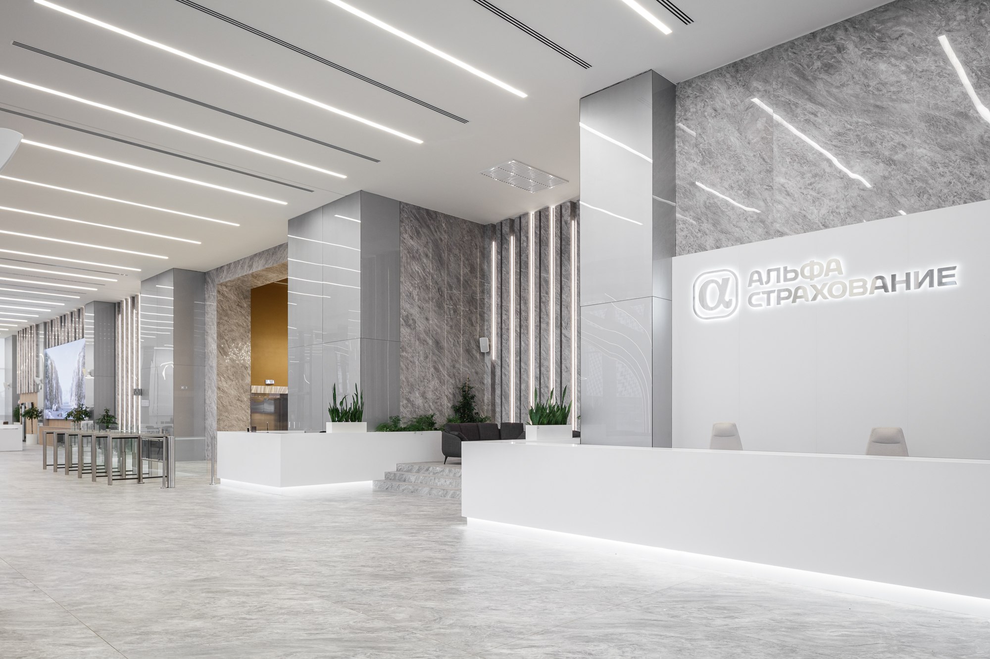 Архитектурное бюро ABD Architects реализовало проект интерьера нового 15-этажного офисного пространства компании «АльфаСтрахование» в Москве по адресу Проспект Лихачева 15 в бизнес-центре «Парк Легенд». Теперь в нем комфортно смогут разместиться команды всех многочисленных бизнес-блоков компании.
