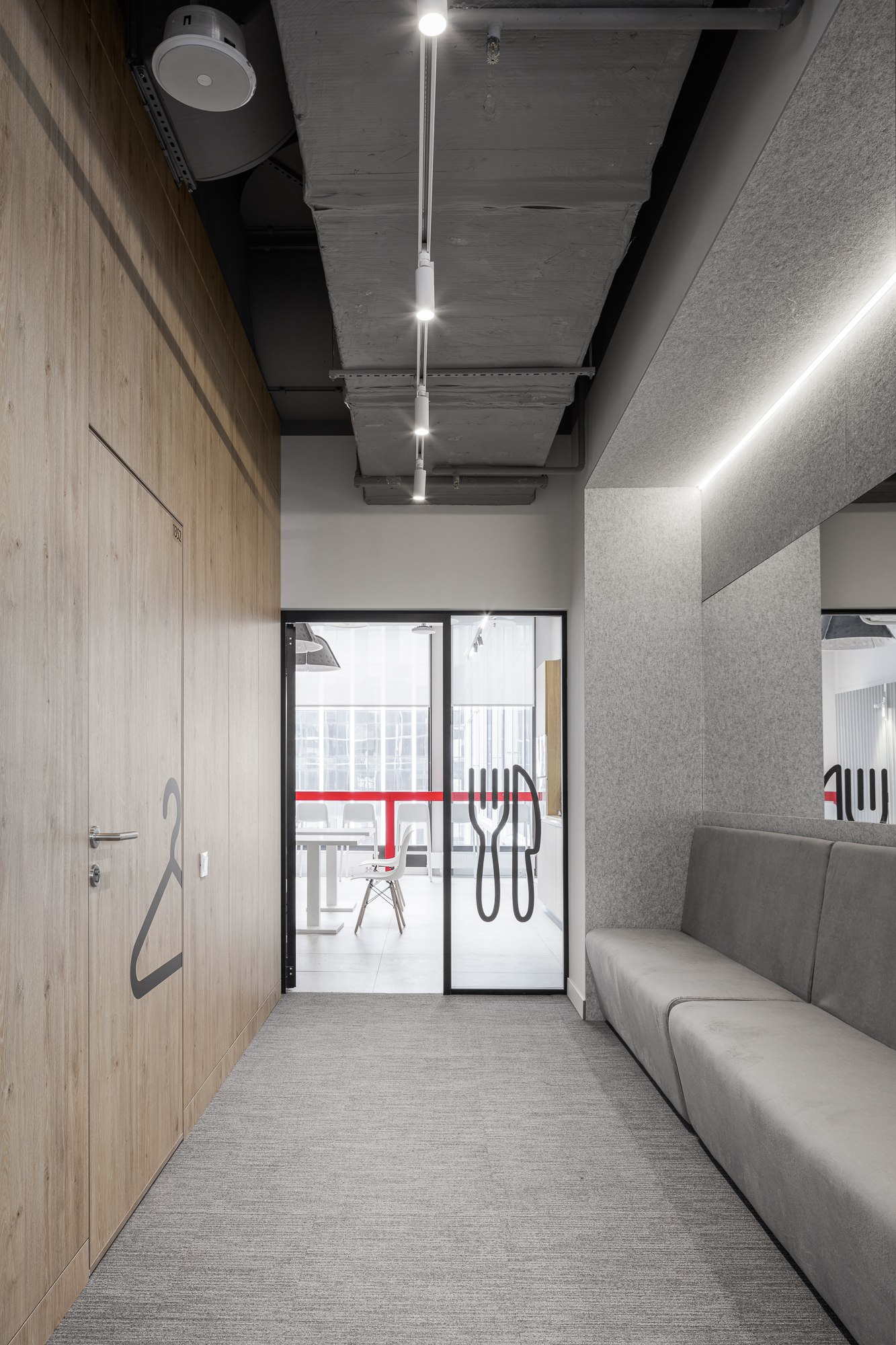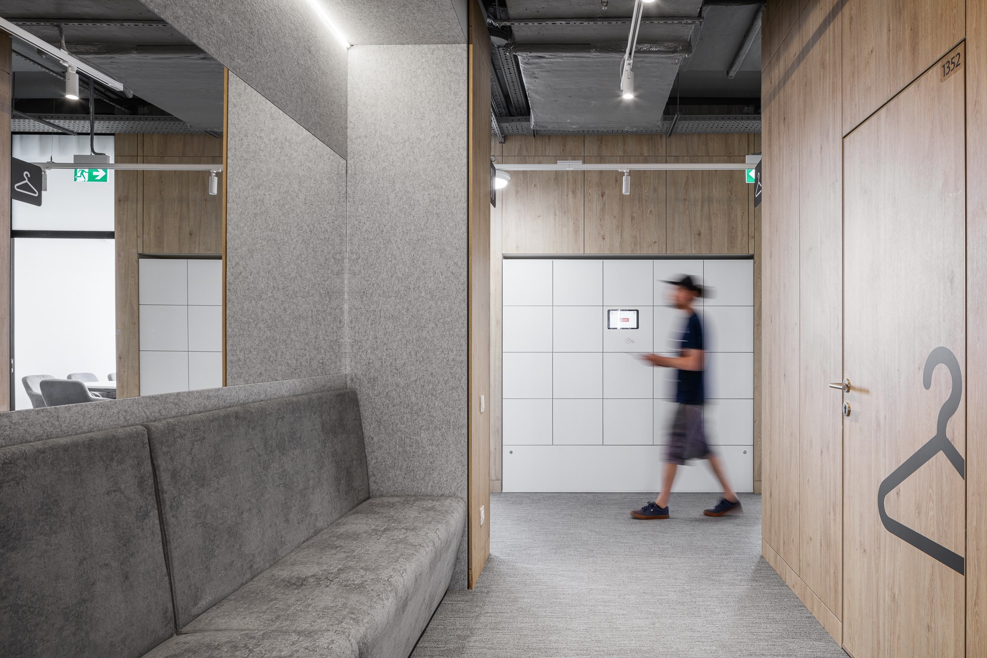 Безопасность тоже была одним из важных приоритетов проекта. Вход в здание осуществляется по картам и штрихкодам, локеры тоже открываются по карте. В здании работает система умного видеонаблюдения. В итоге офис получил золотой сертификат «Клевер», подтверждающий высокий уровень экологичности и рационального использования ресурсов.
