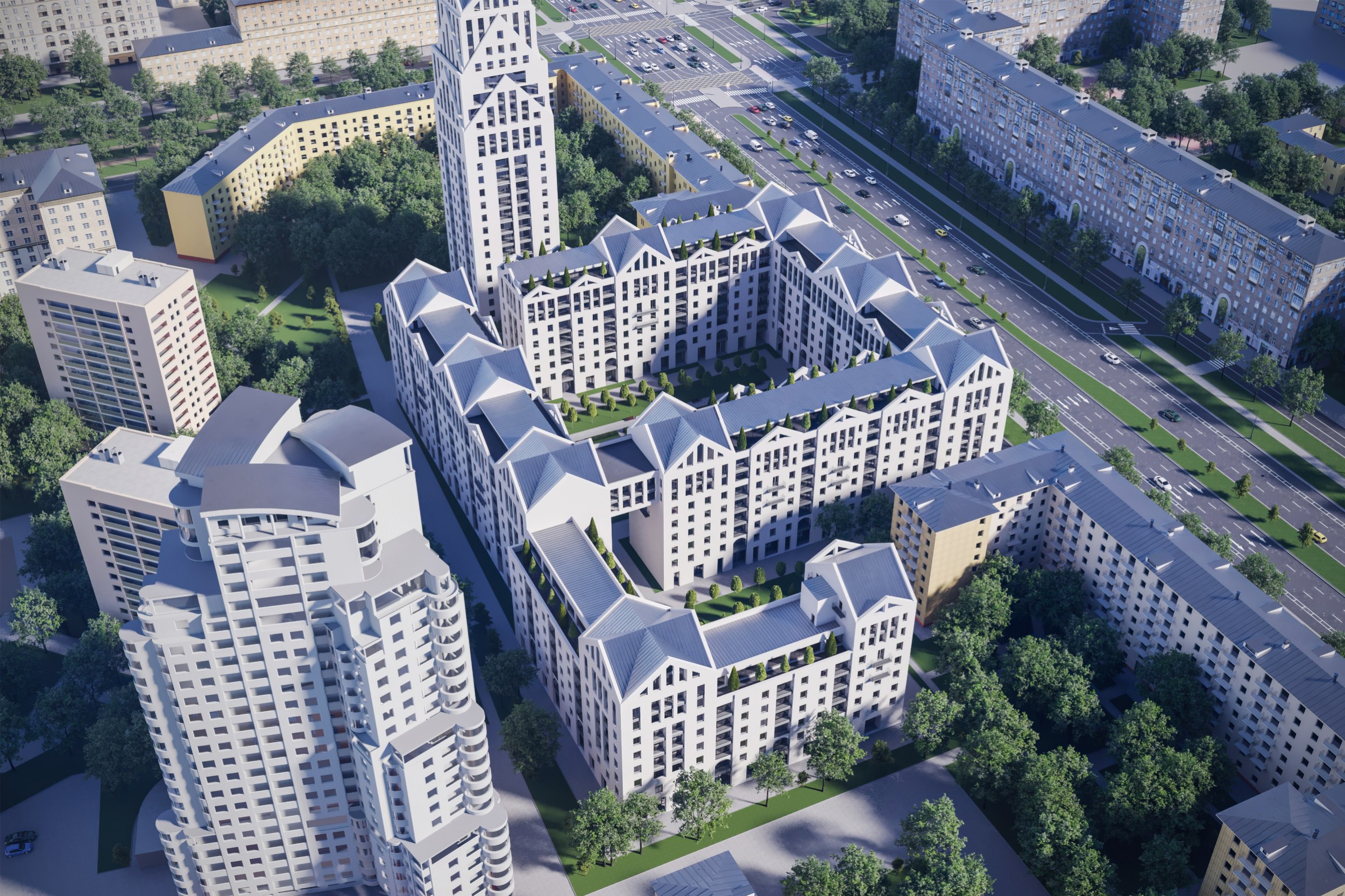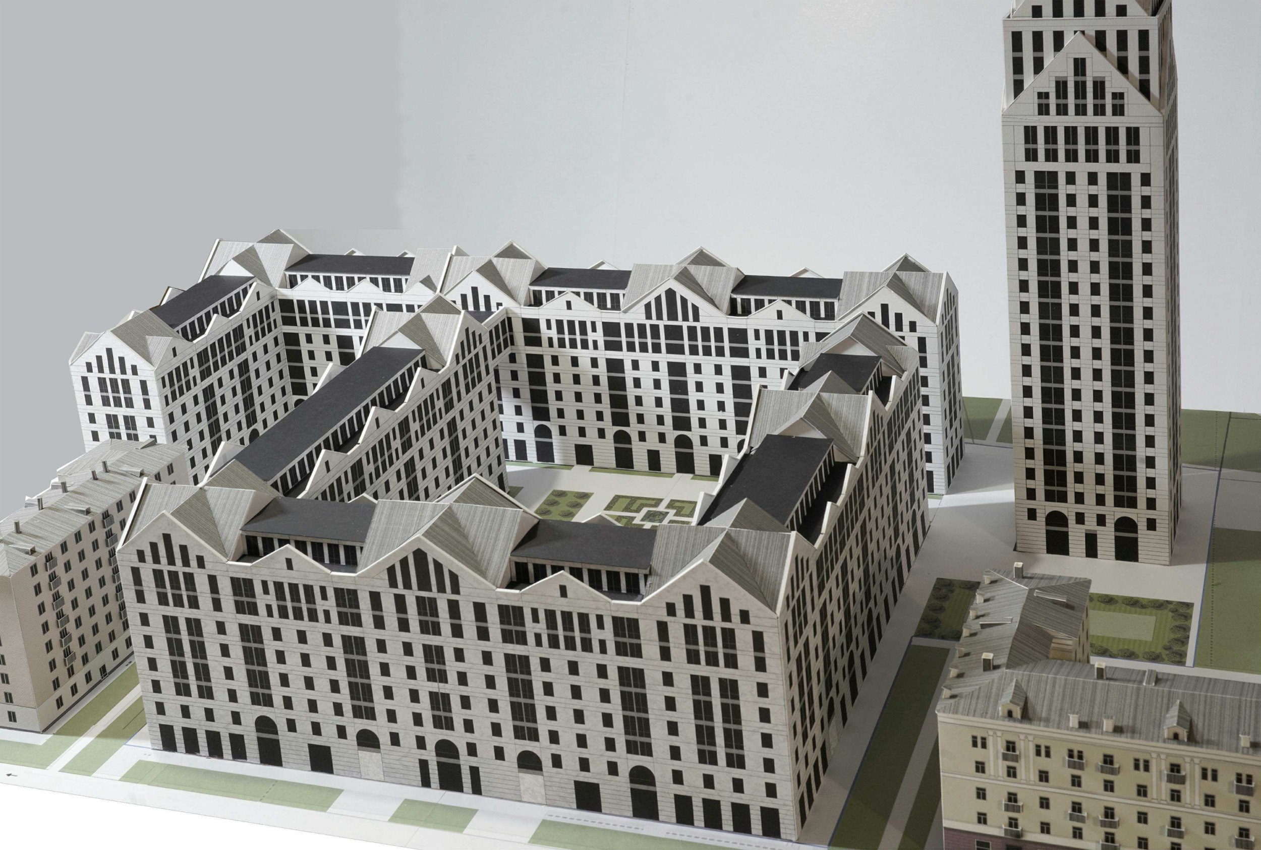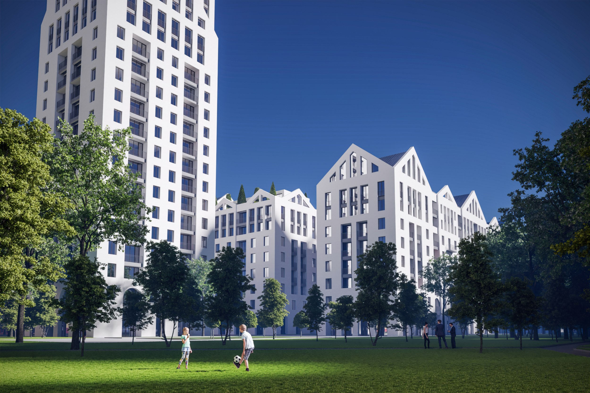 Два 8–9-этажных здания П- и Г-образной формы; 29-этажная башня-доминанта
