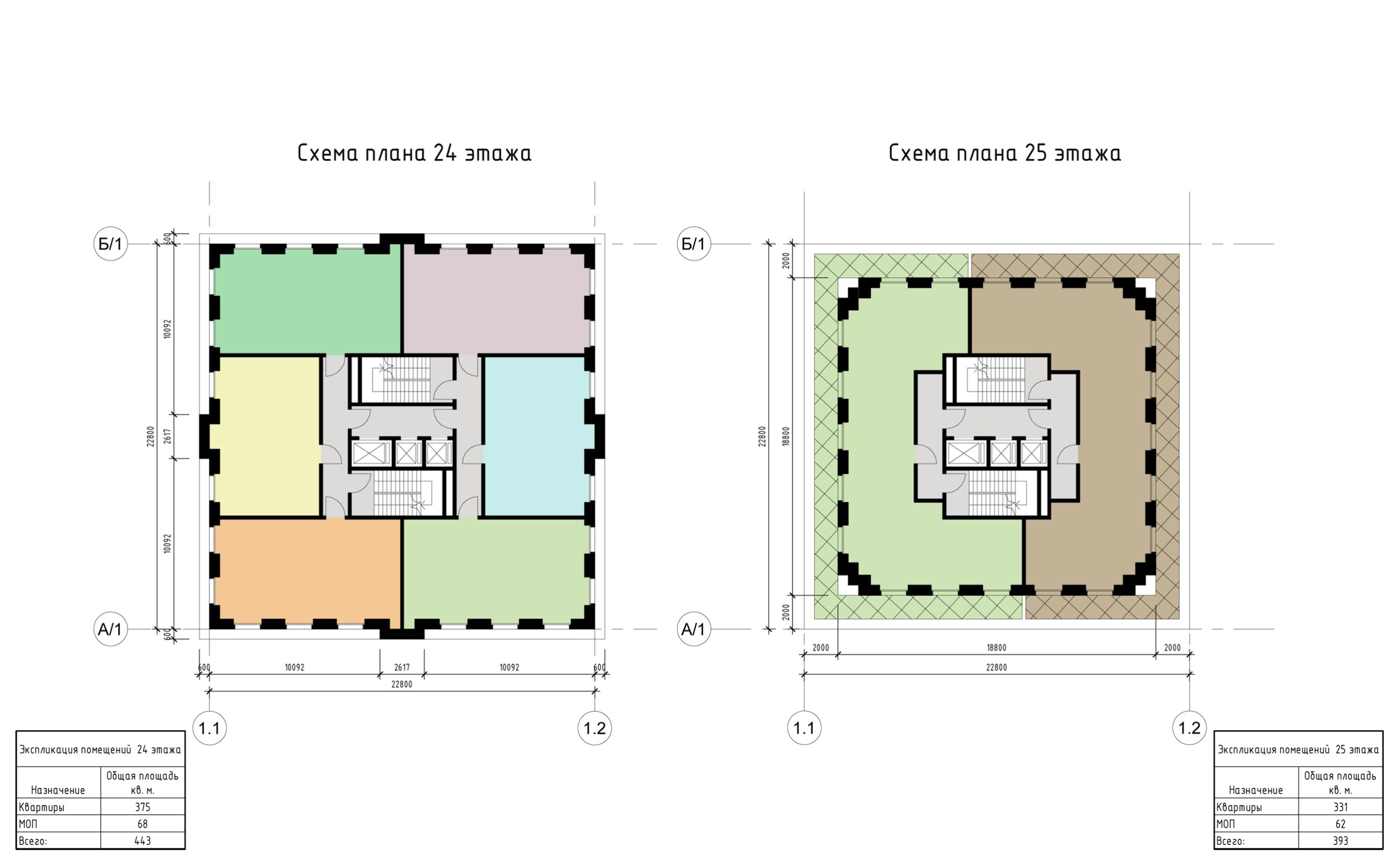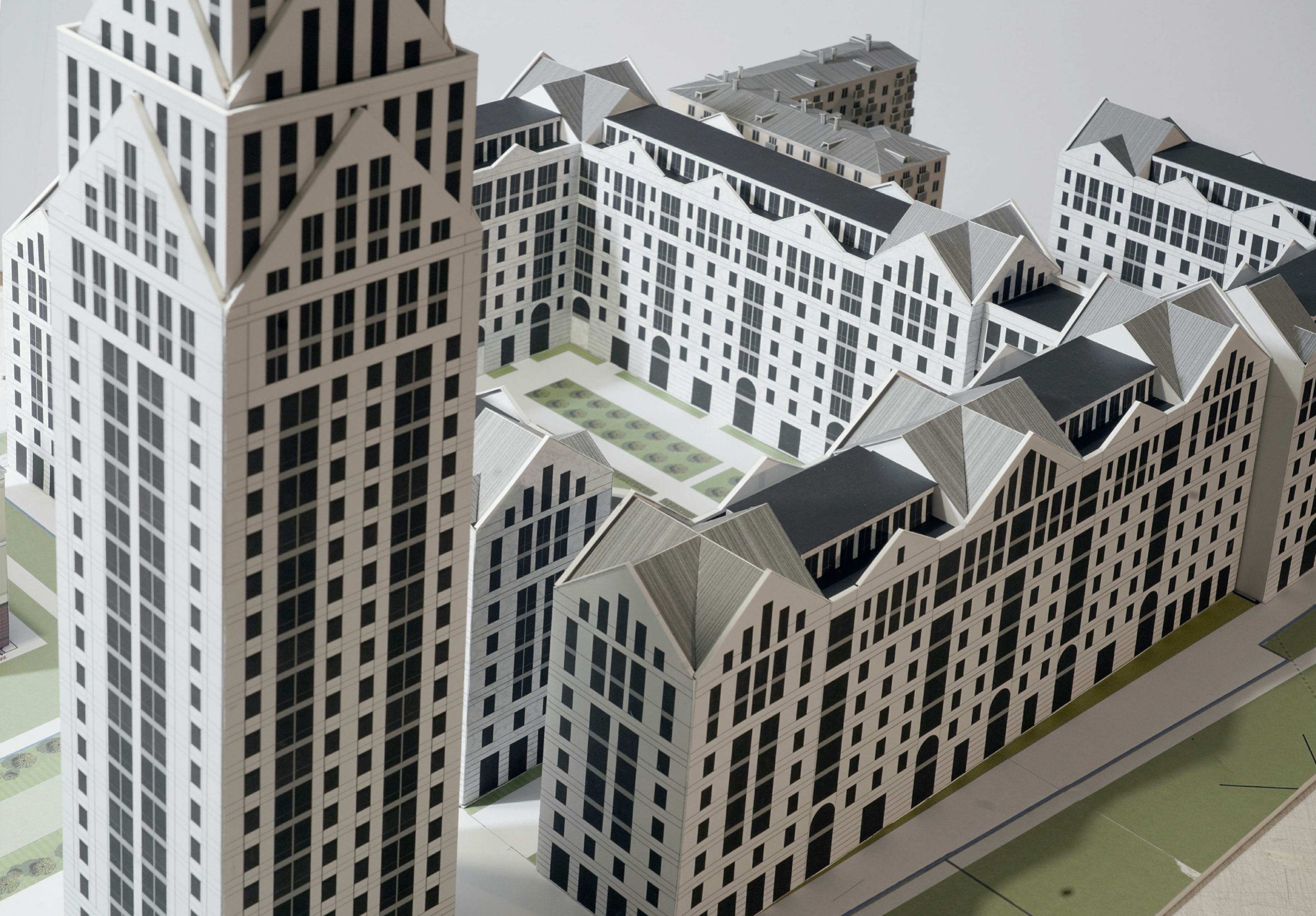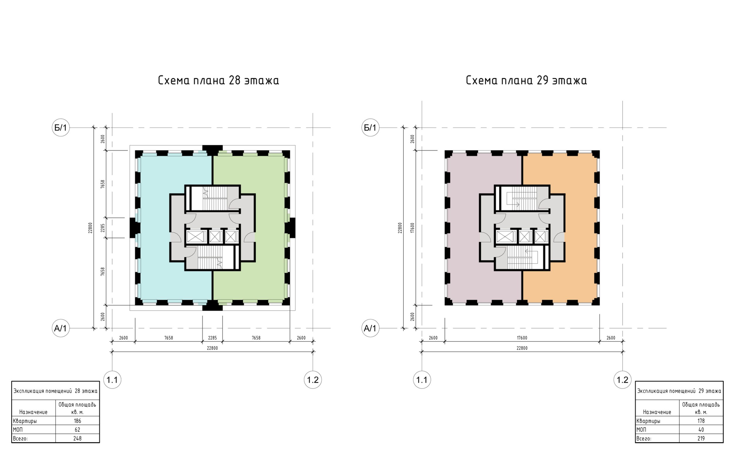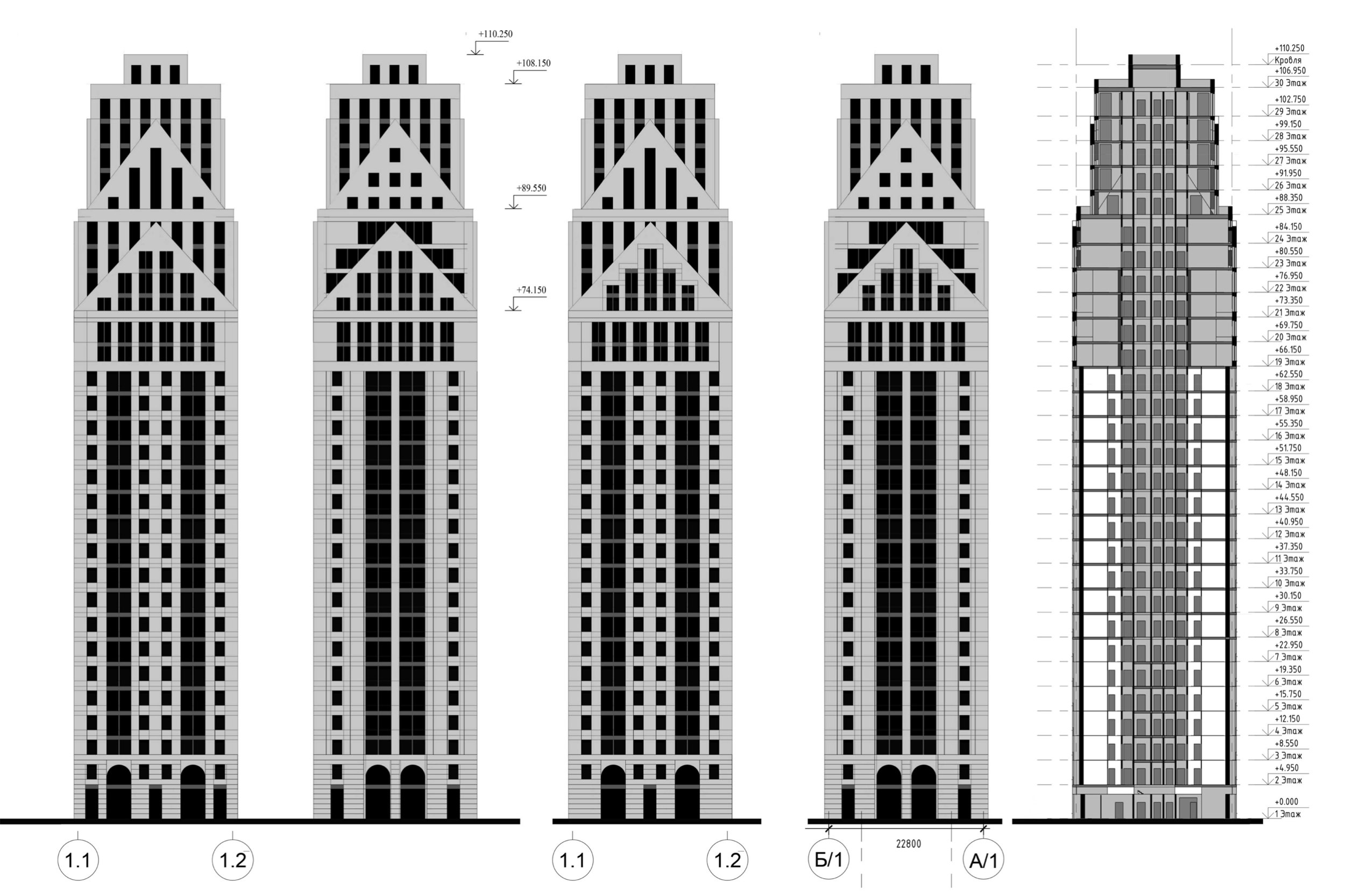 Два 8–9-этажных здания П- и Г-образной формы; 29-этажная башня-доминанта