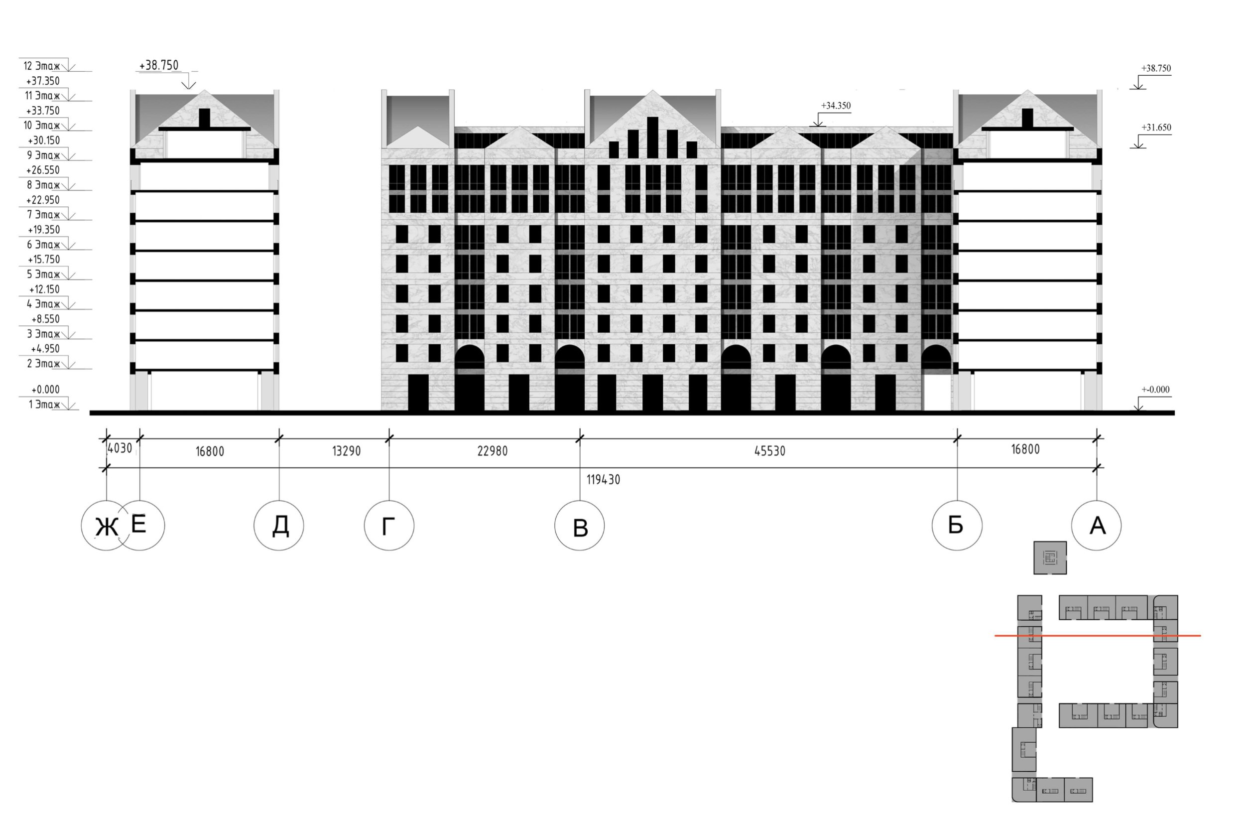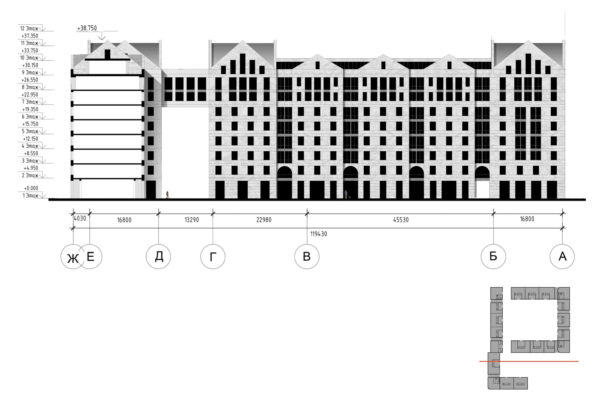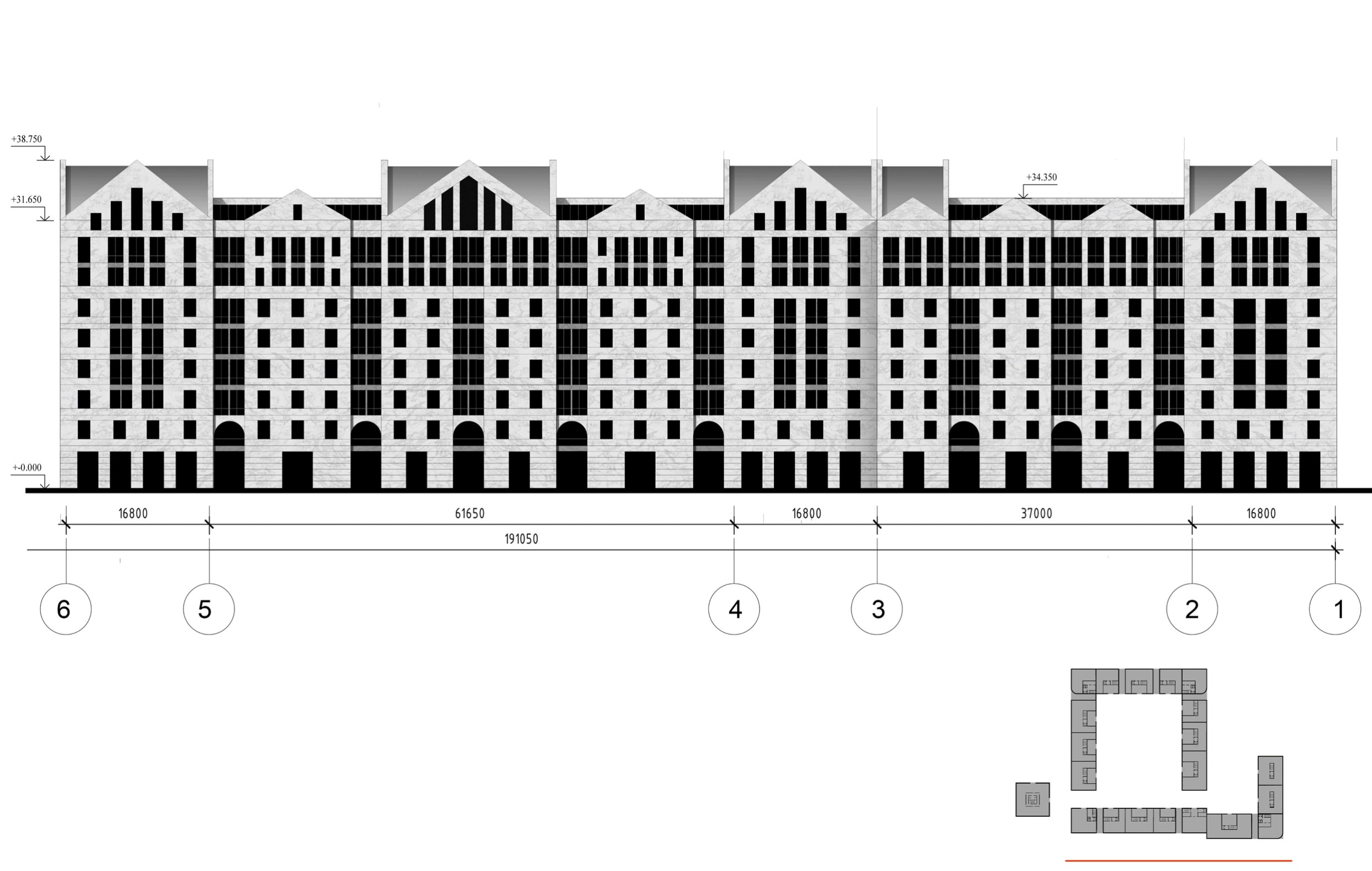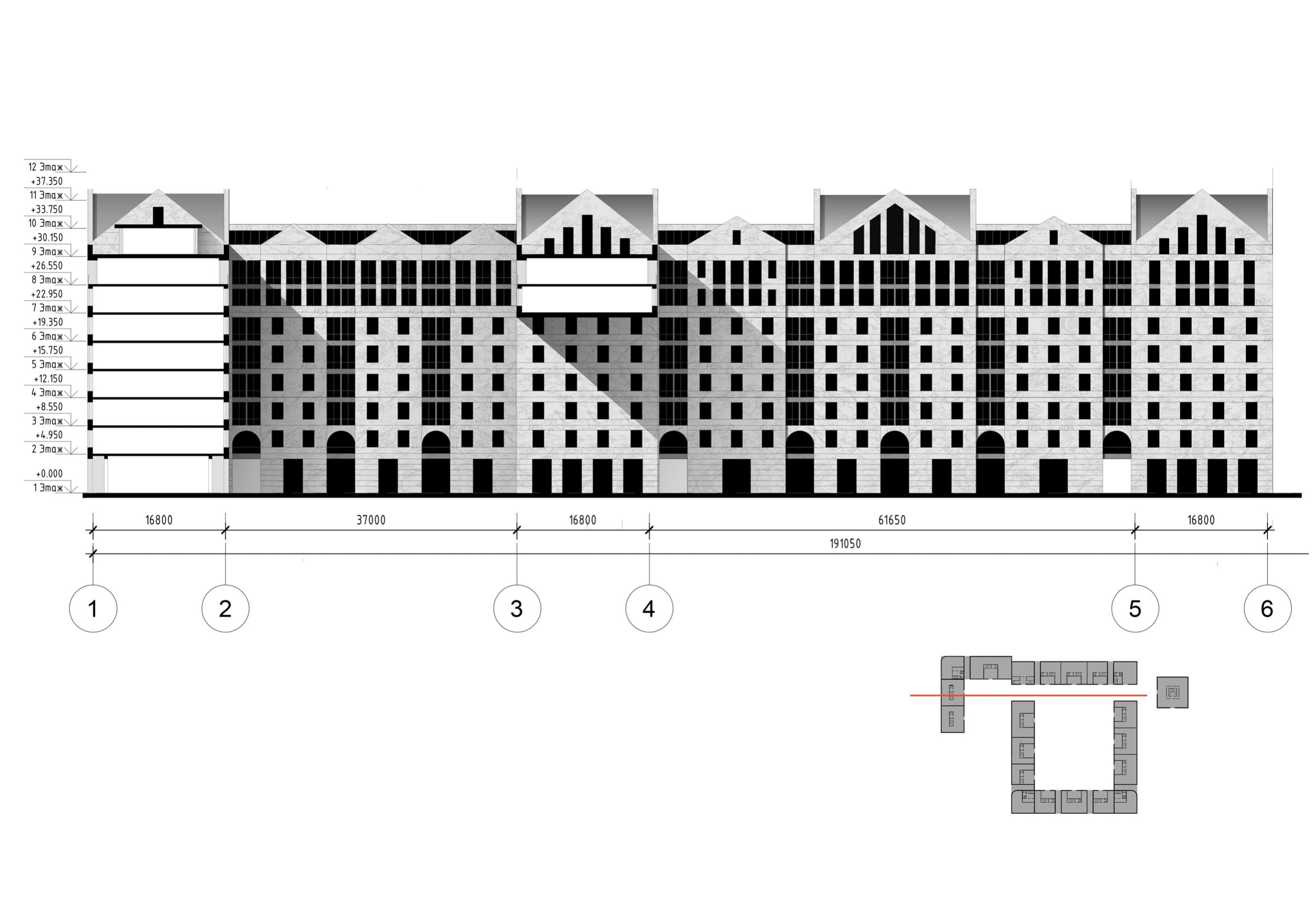 Развертка по Ленинскому проспекту. ЖК «Классический квартал». Вариант 1