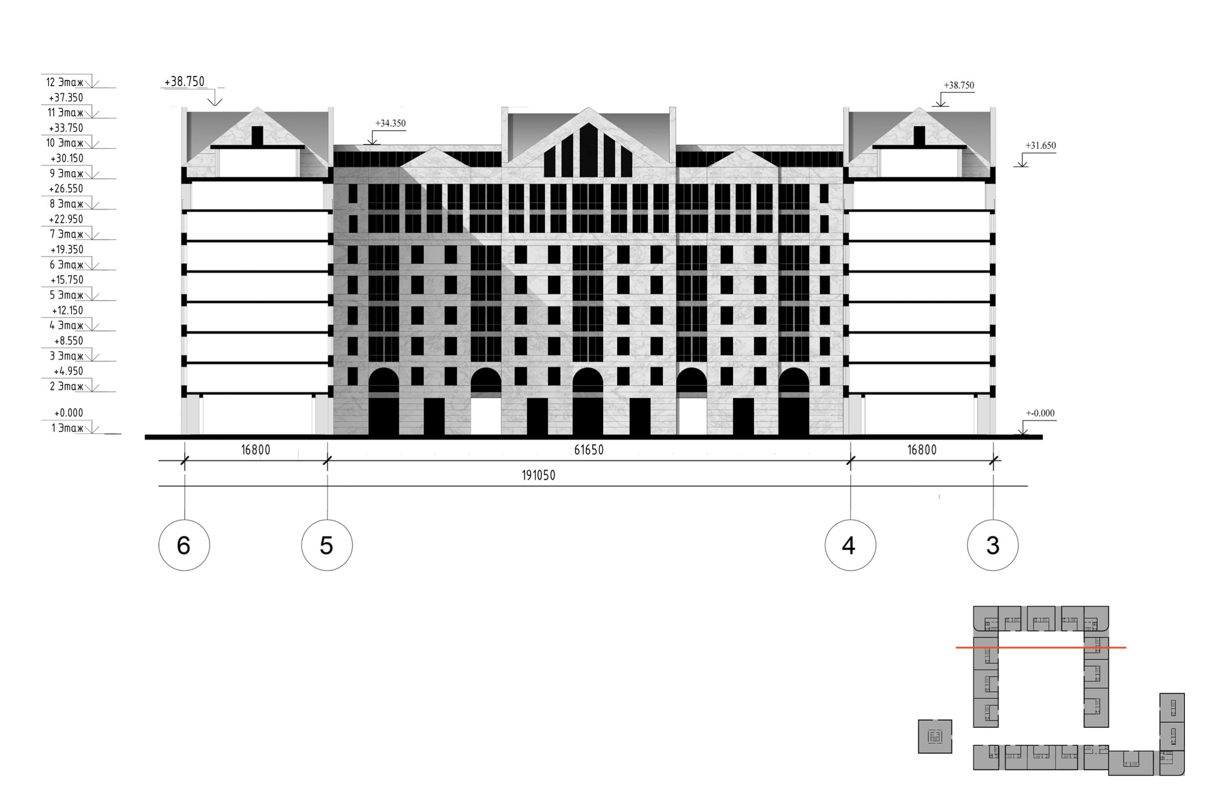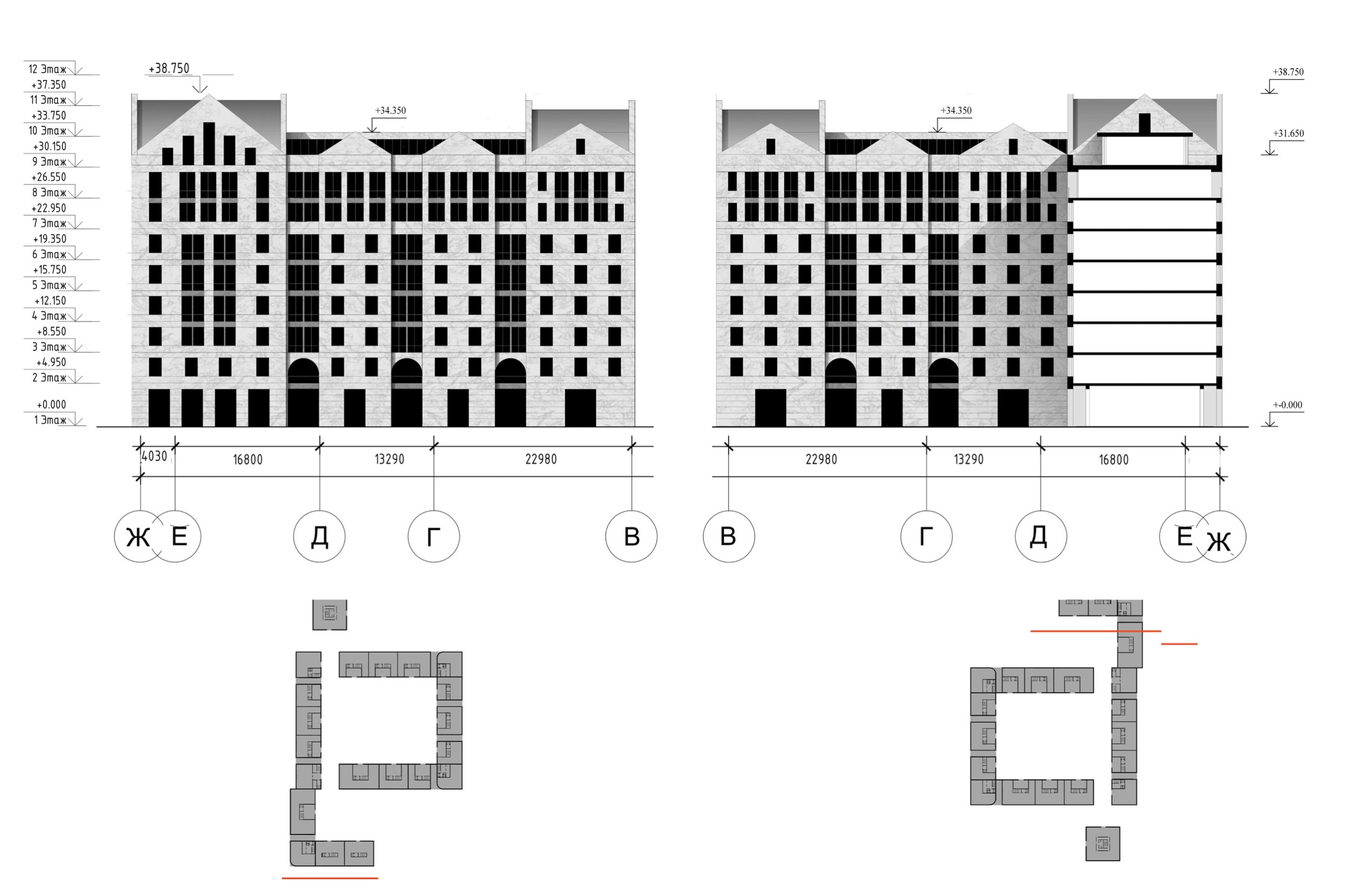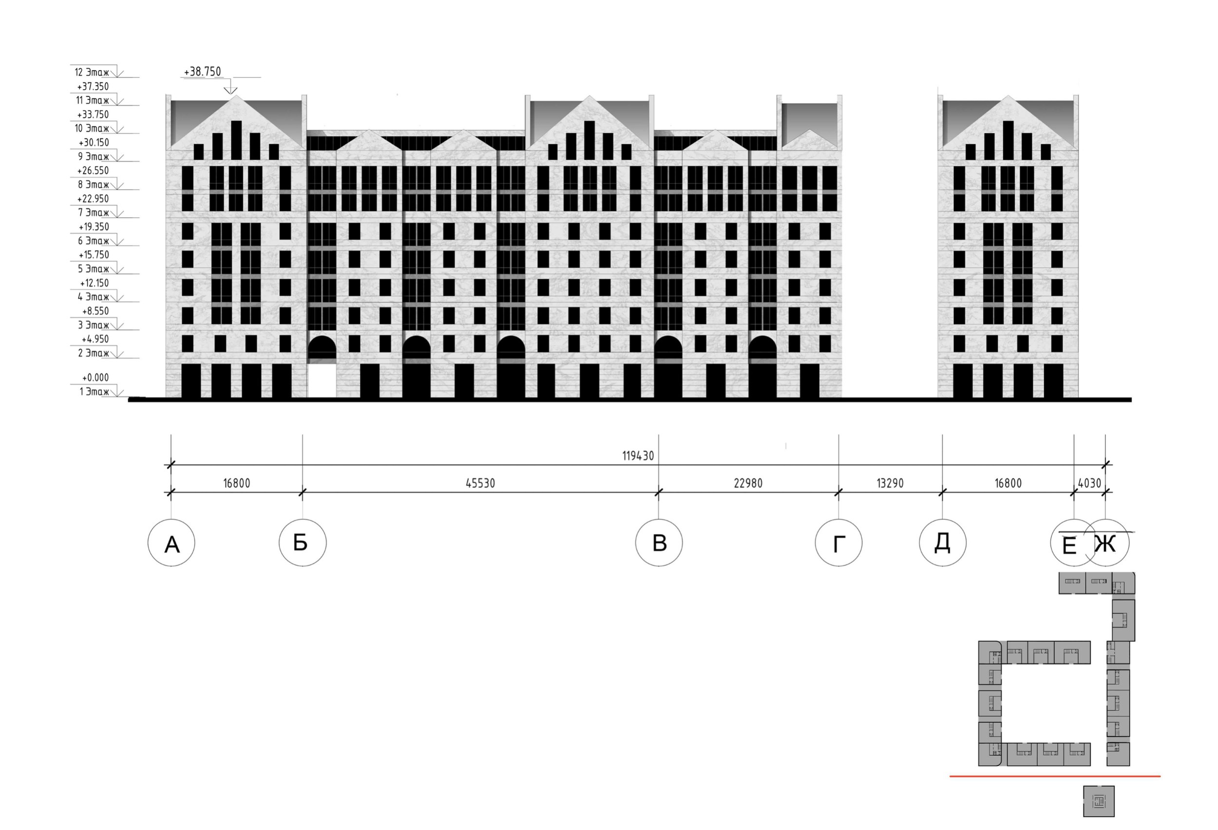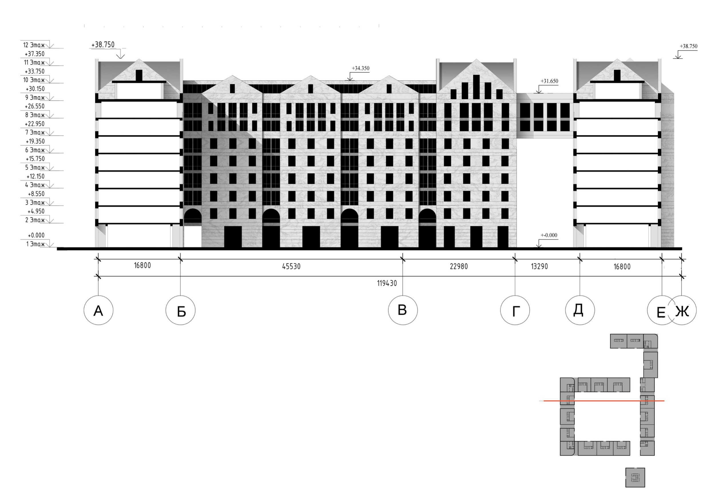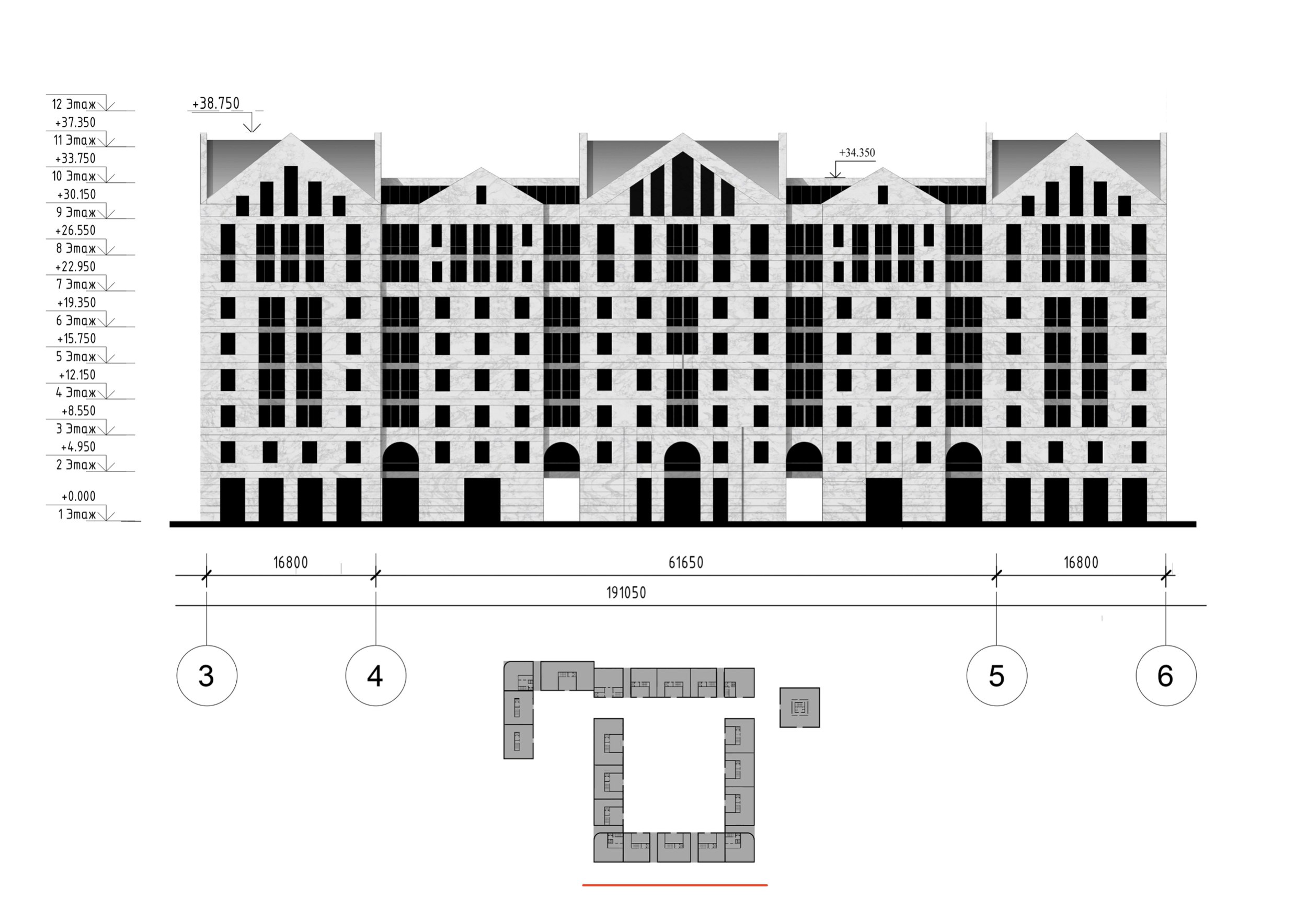 Развертка по Ленинскому проспекту. ЖК «Классический квартал». Вариант 1