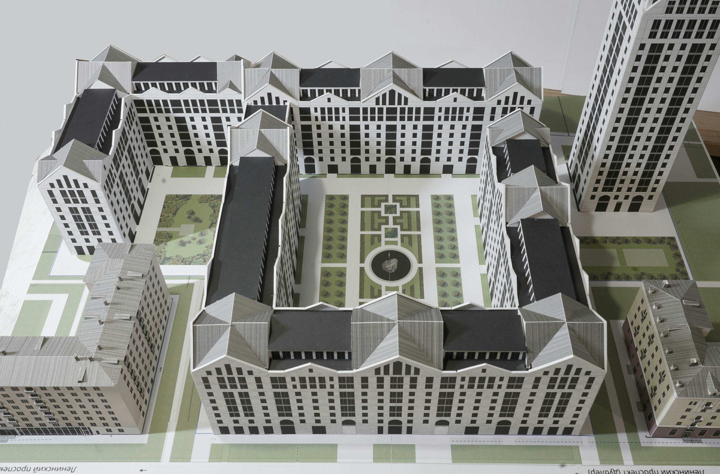 Мы используем традиционный периметральный тип застройки, характерный для этой части Ленинского проспекта и учитывающий близость объектов культурного наследия, таких как жилой комплекс по ул. Дмитрия Ульянова, 3 расположенный в этом-же квартале, автором которого является И.В. Жолтовский, и ряд зданий институтов РАН, по этой же стороне Ленинского проспекта, №№ 51,53,55, автором которых является А.В. Щусев.