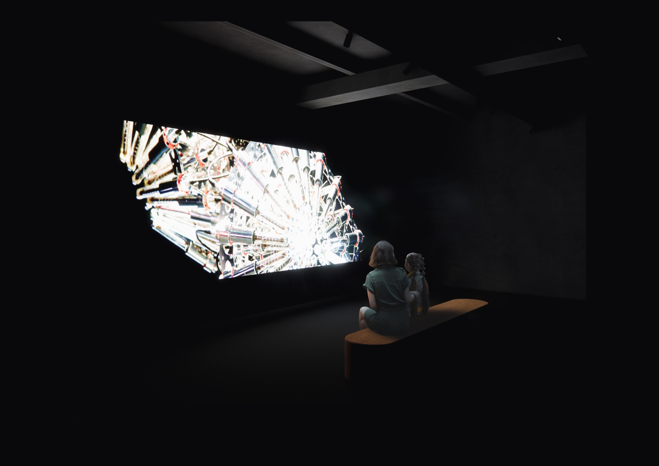 Открытие – главный выставочный зал в эстетике научных лабораторий, вдохновленный дубнинским синхрофазотроном и коллайдером.