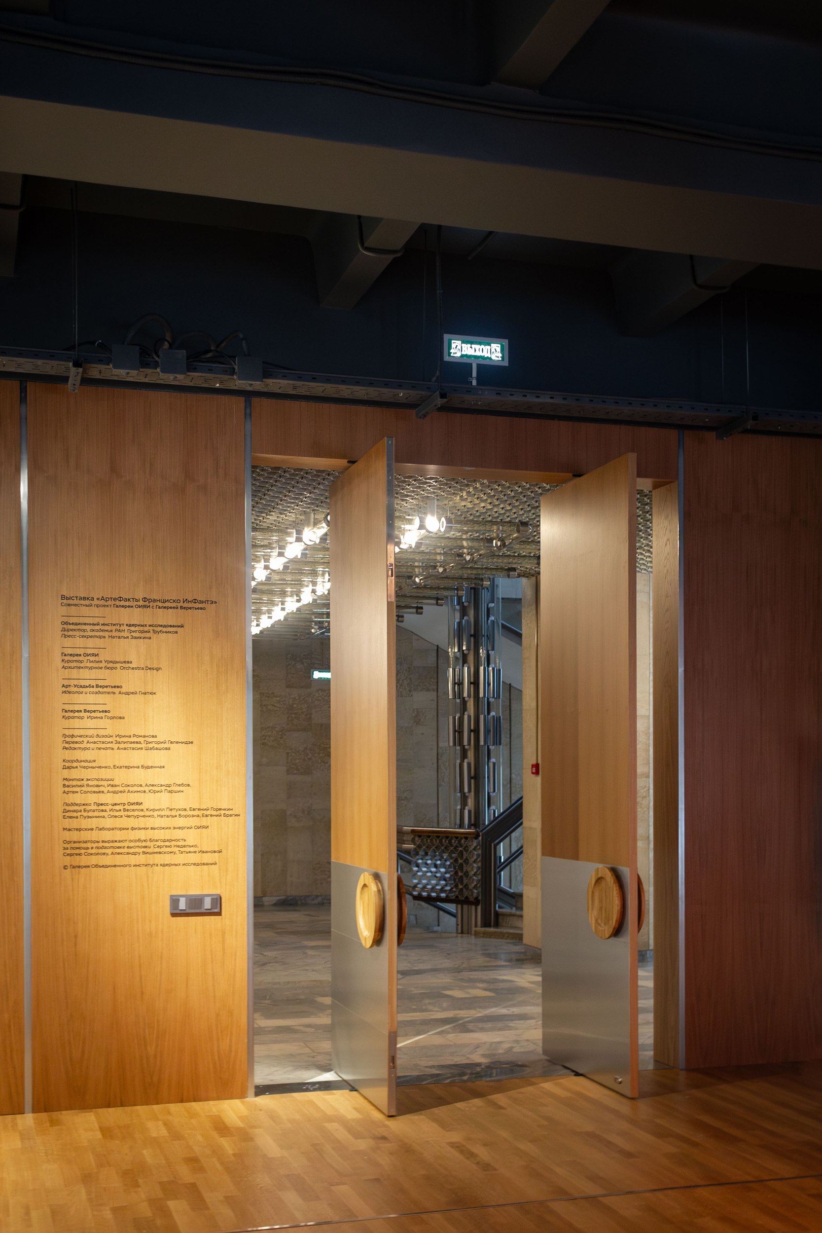 Введение – входная лаунж-зона с массивными роторными дверями, где можно познакомиться с различными печатными изданиями и темой экспозиции.