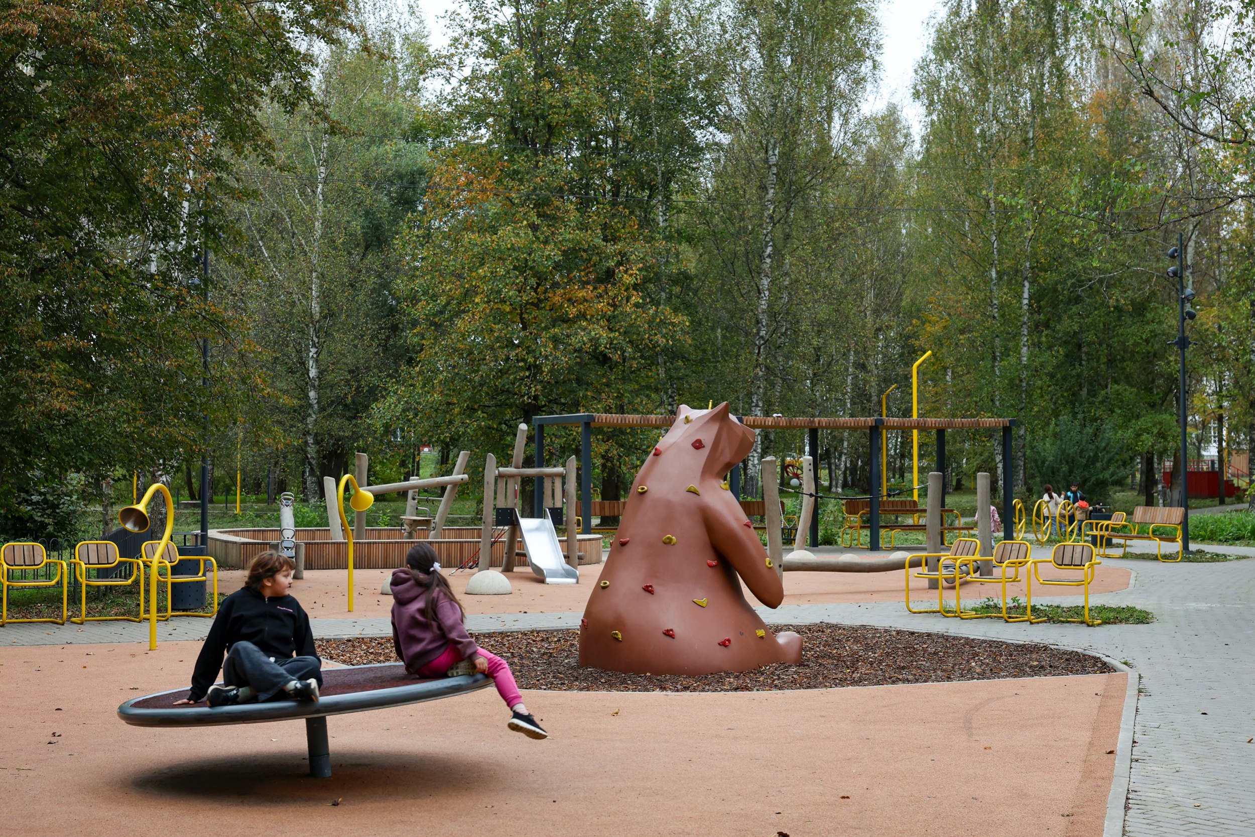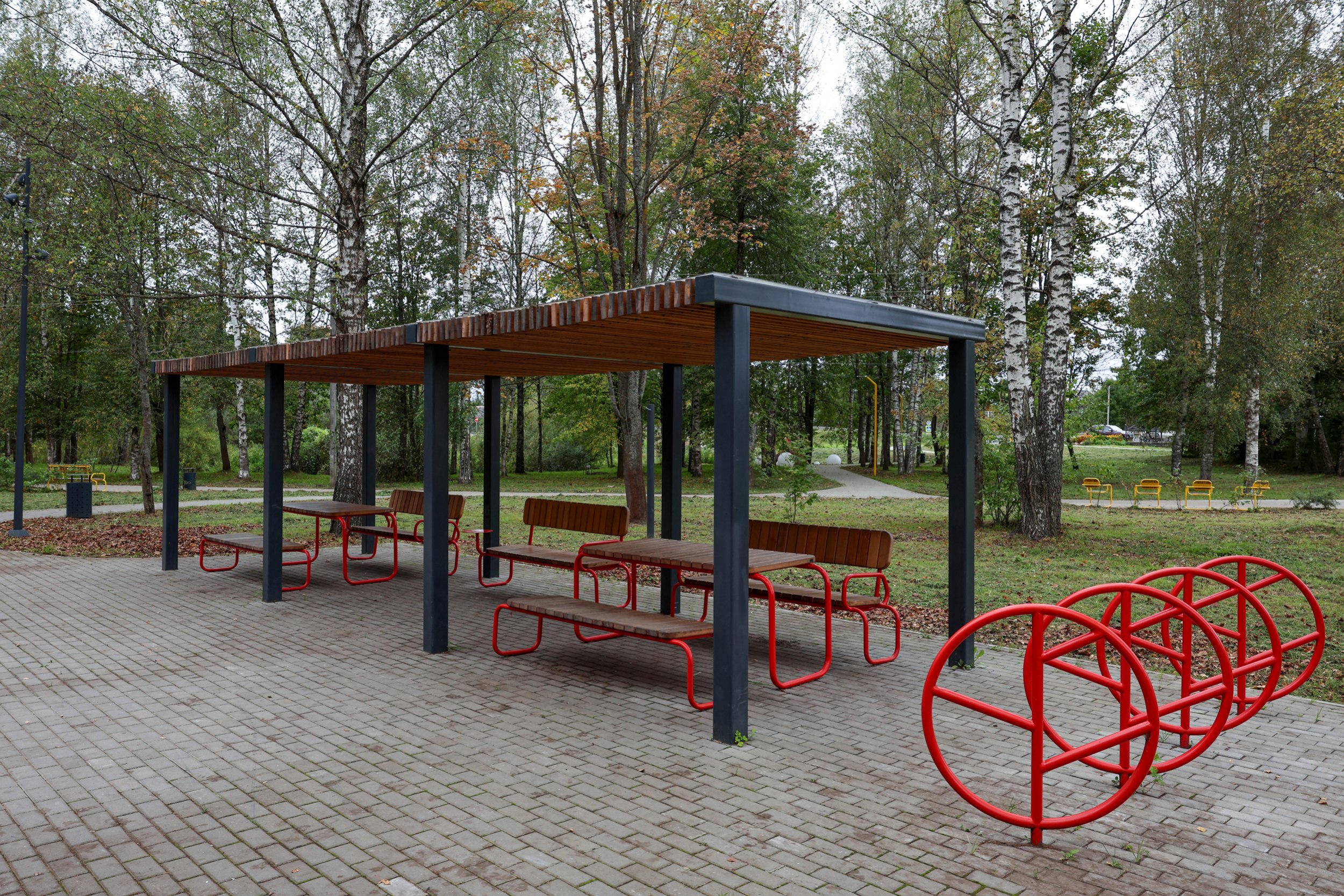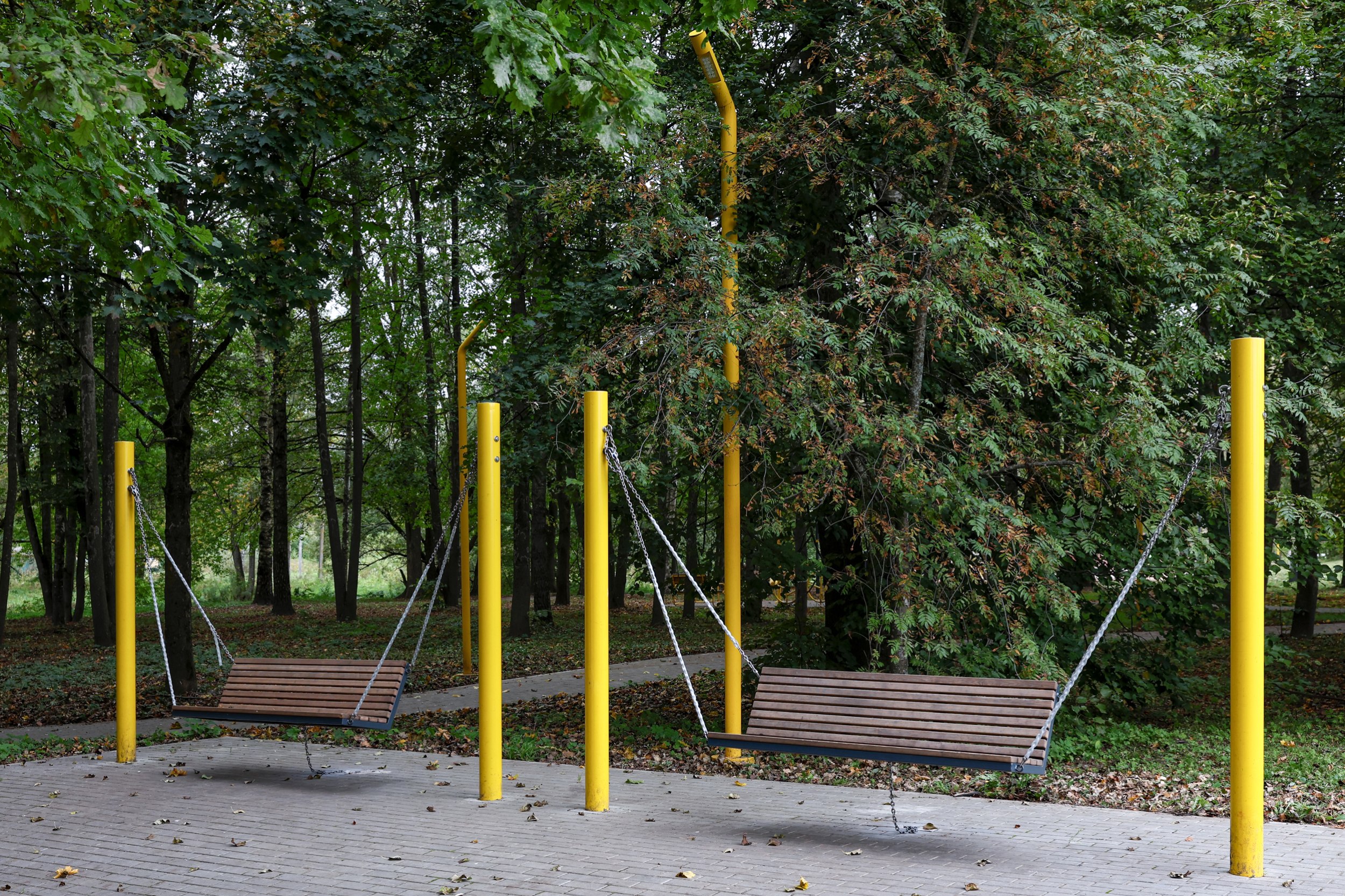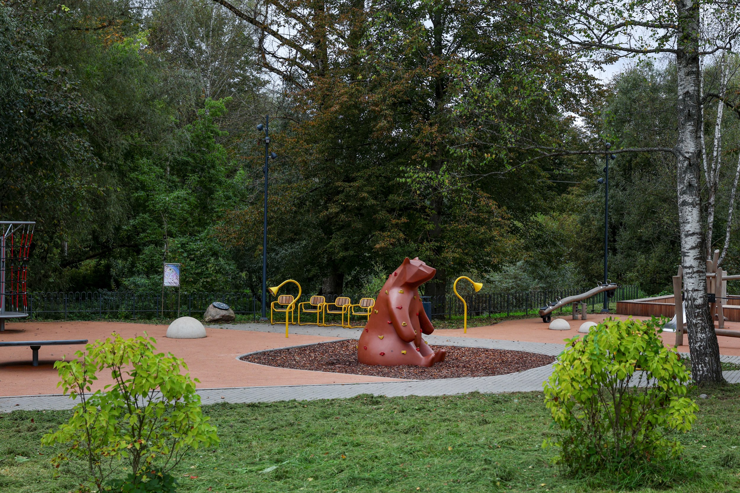 Благоустройство выполнено с бережным отношением к сложившемуся озеленению. Дополнительно в парке высажены ивы, сосны, ясени, дубы и декоративные кустарники. В теплое время года территорию украшают цветники. По запросу жителей на территории появилась площадка для молодежи с необычной опорой освещения в виде дерева и комплексом для воркаута на небольшом отдалении.