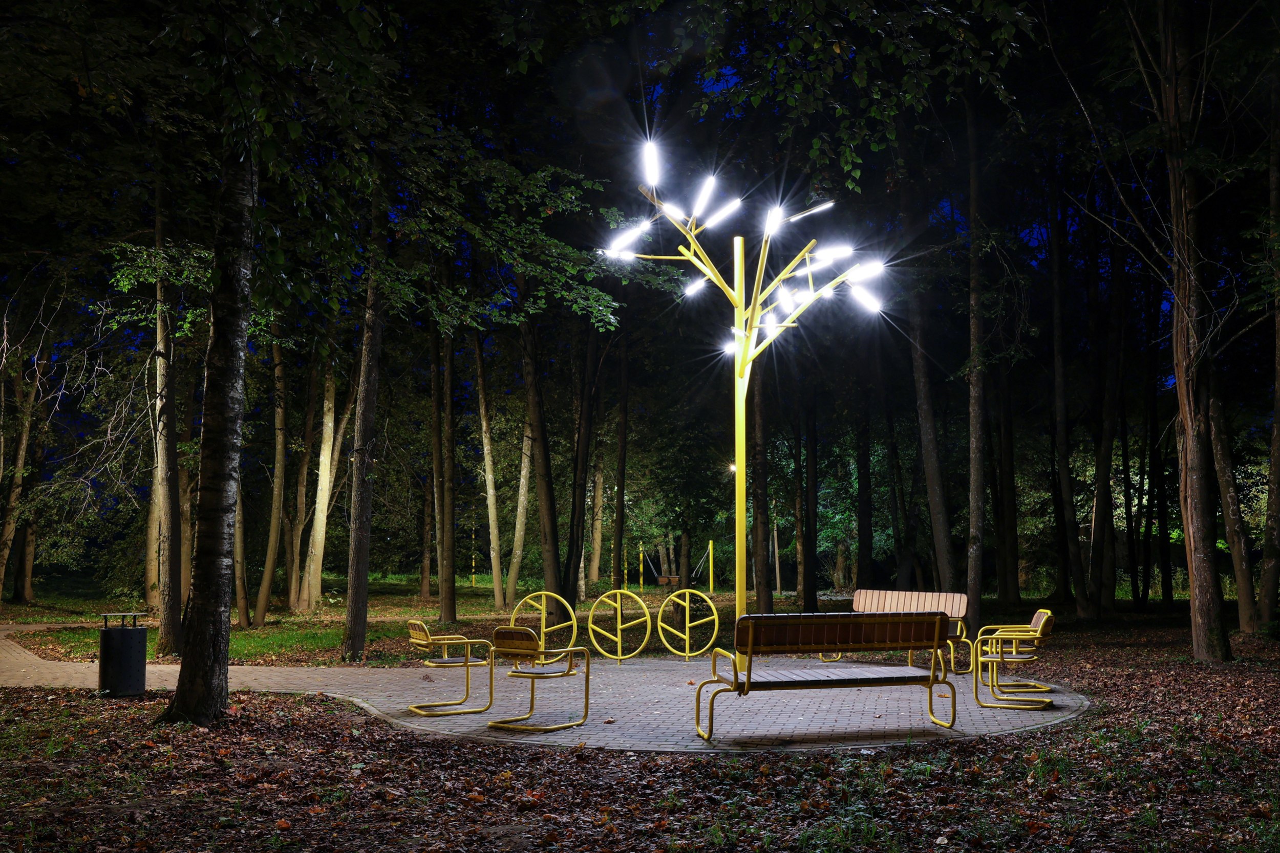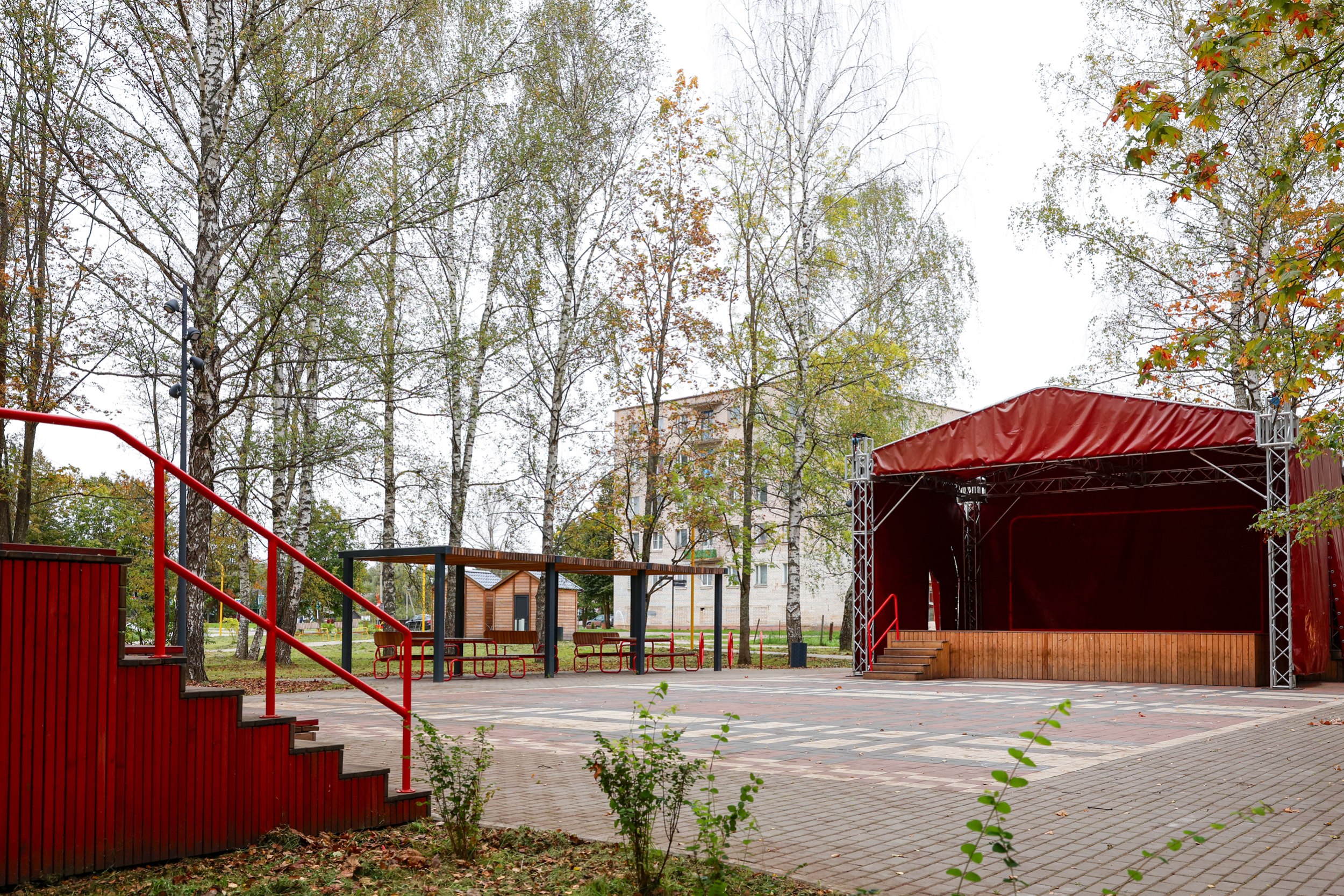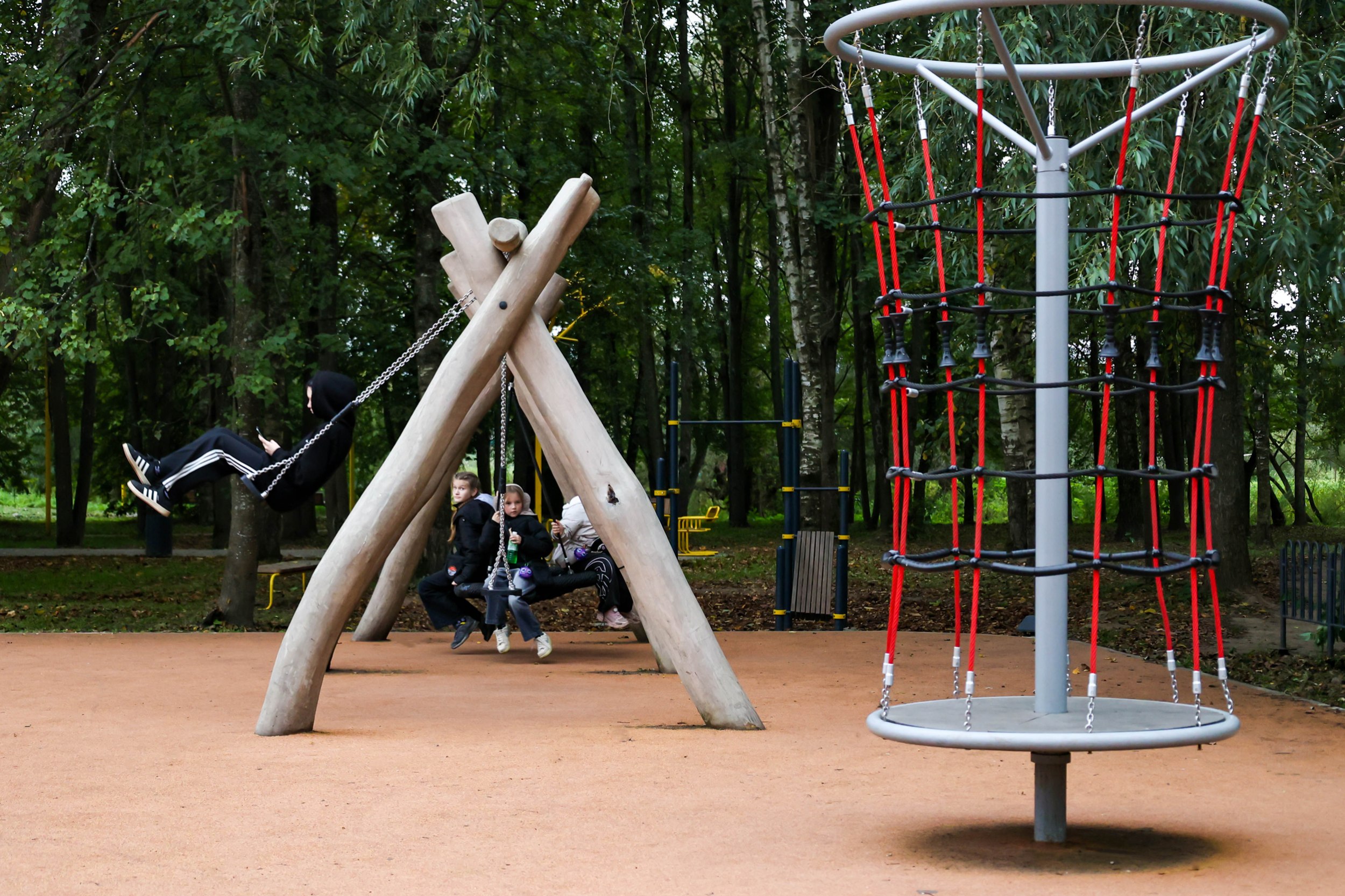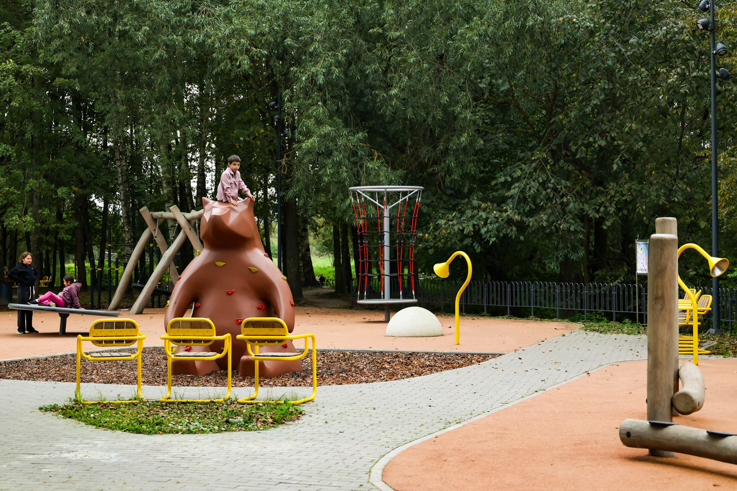 Благоустройство выполнено с бережным отношением к сложившемуся озеленению. Дополнительно в парке высажены ивы, сосны, ясени, дубы и декоративные кустарники. В теплое время года территорию украшают цветники. По запросу жителей на территории появилась площадка для молодежи с необычной опорой освещения в виде дерева и комплексом для воркаута на небольшом отдалении.