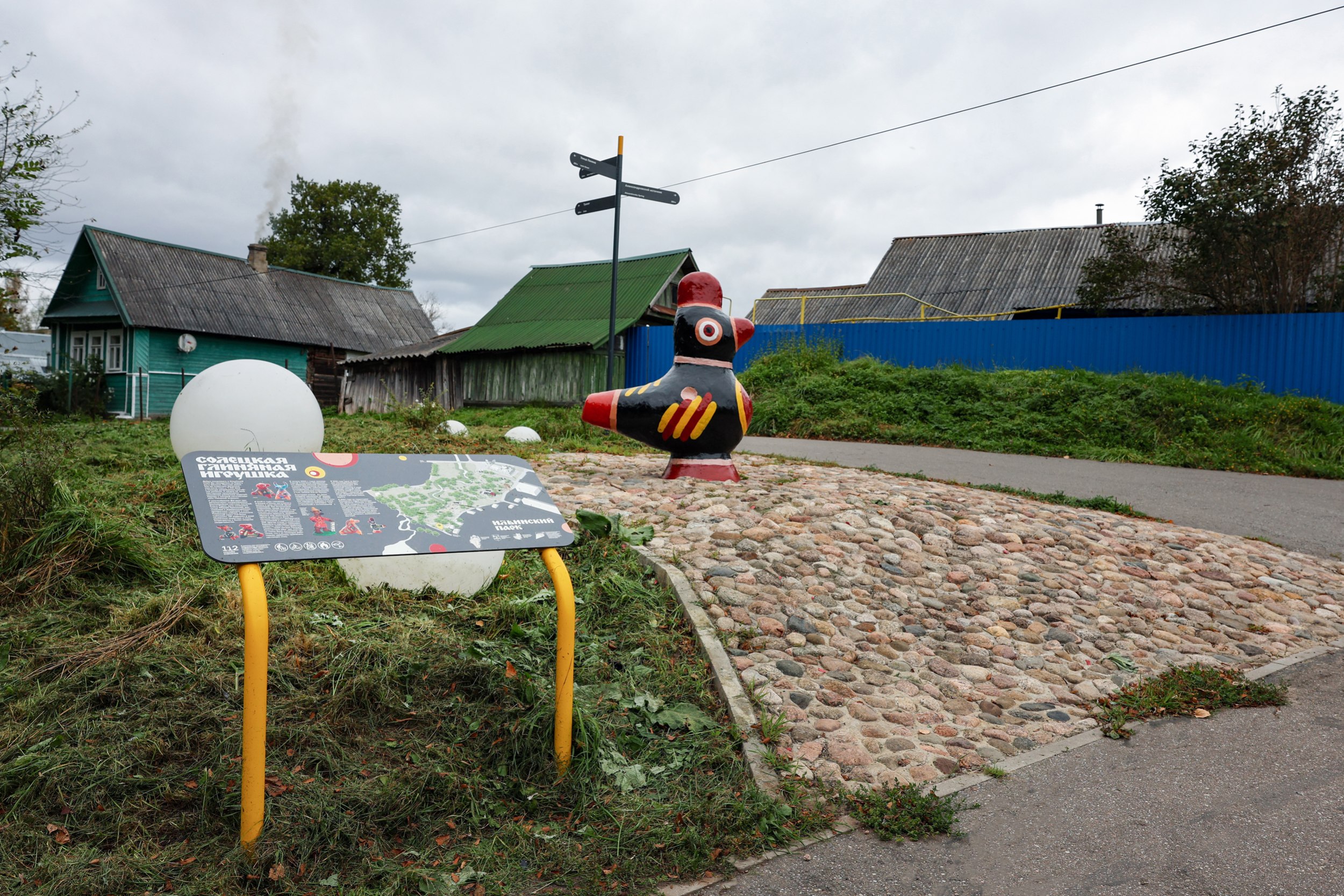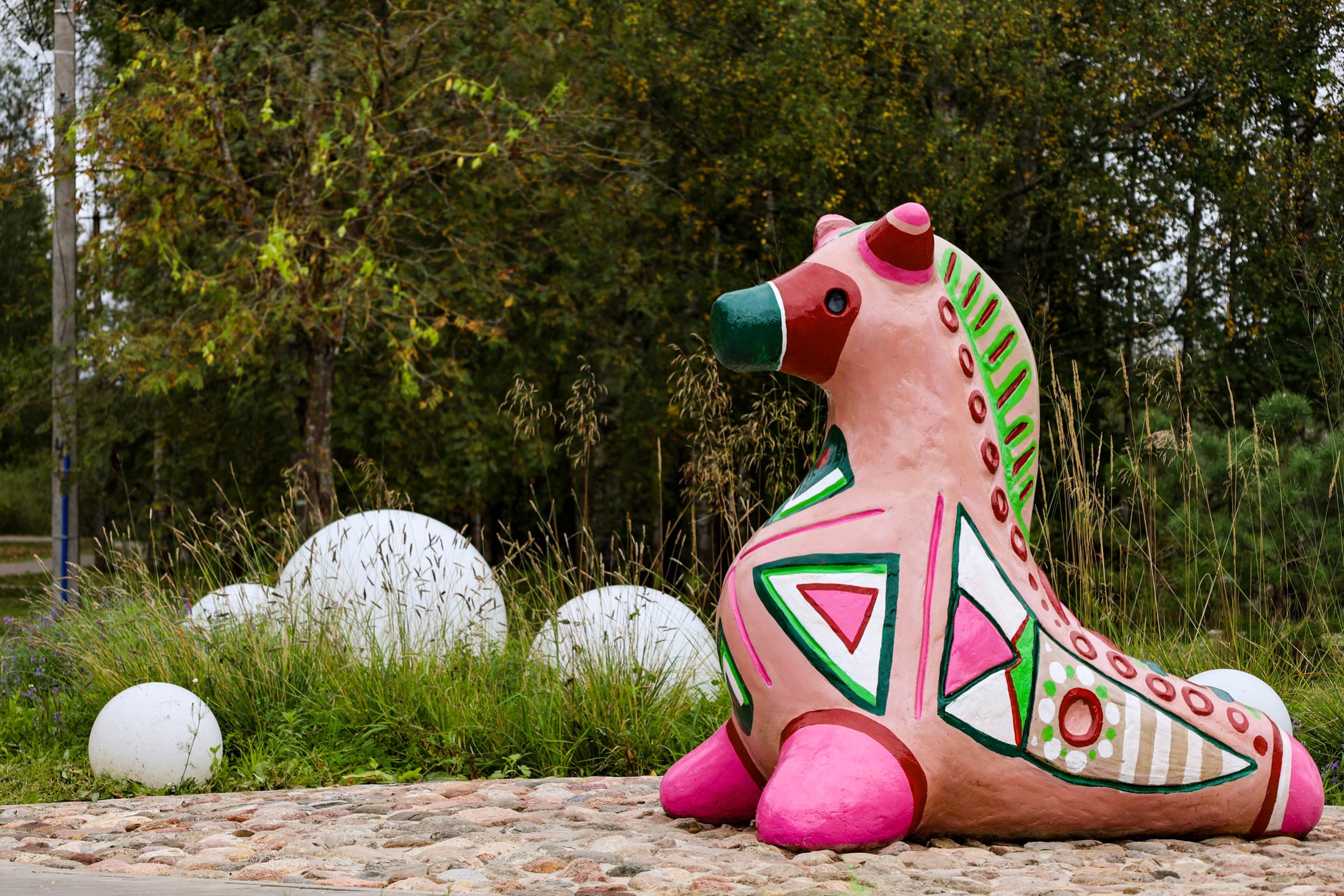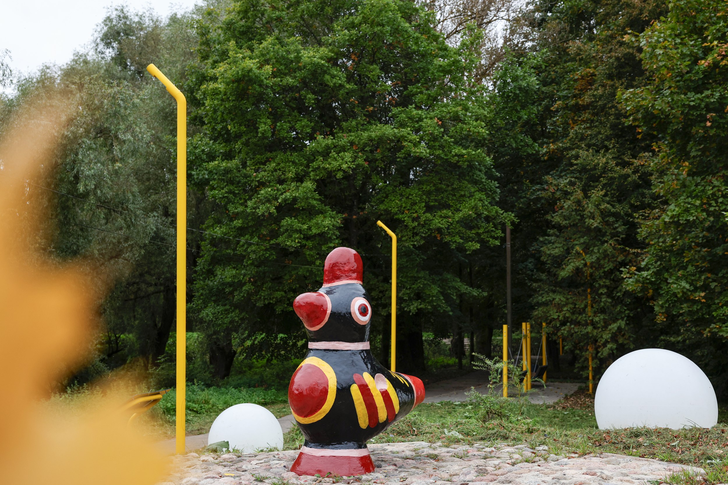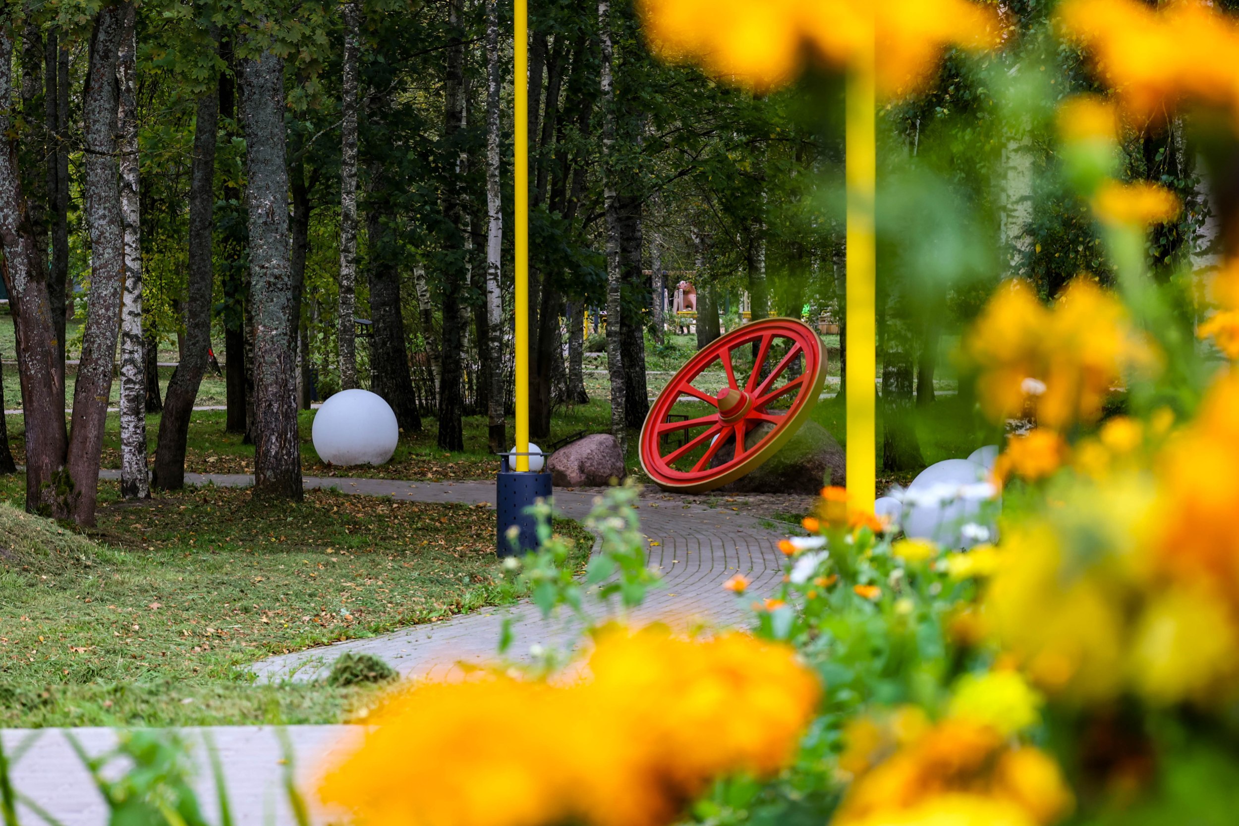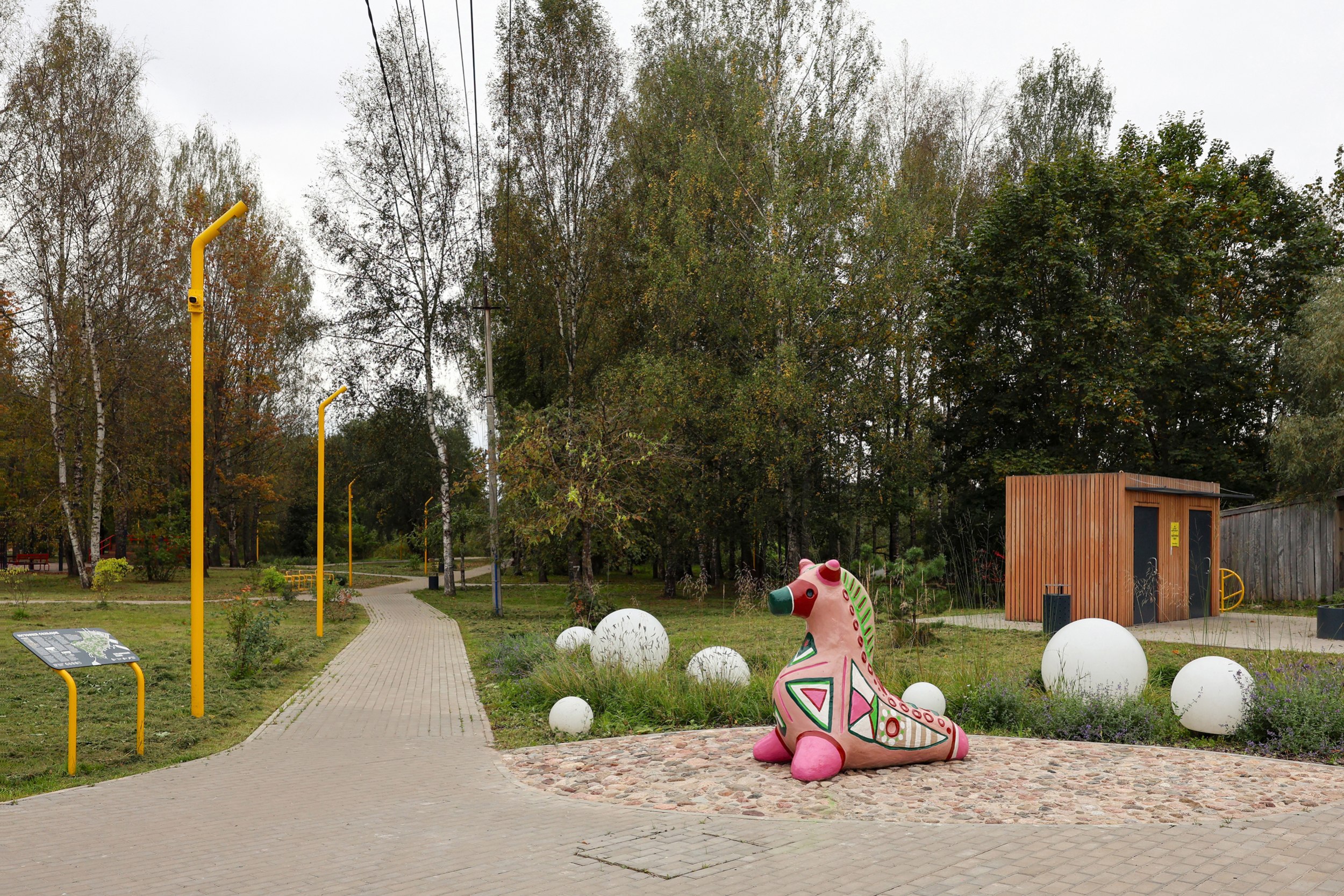 У входов в парк посетителей встречают арт-объекты «Лошадка» и «Птичка», вдохновленные местной глиняной игрушкой. Еще один арт-объект посвящен истории колесной слободы XVI–XVIII веков и легенде о том, как солецкие мастера починили карету Екатерины II, оставив себе одно колесо.