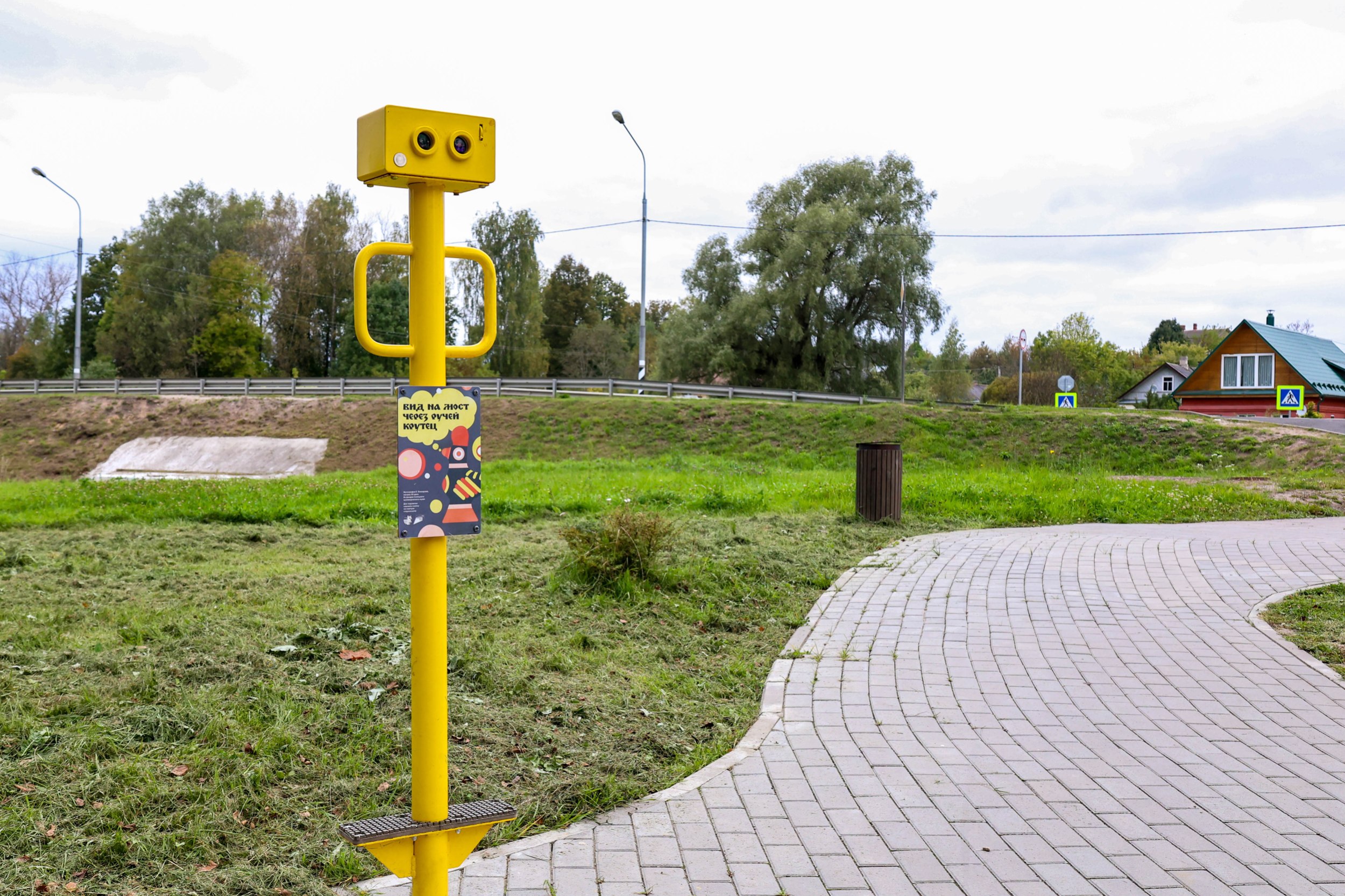 Обновленные пешеходные дорожки дополнены местами для отдыха, парковыми качелями и стендами с историей Сольцов. Стереоскоп знакомит с историческим видом на мост через ручей Крутец. Для комфорта посетителей предусмотрены навигация и туалет.