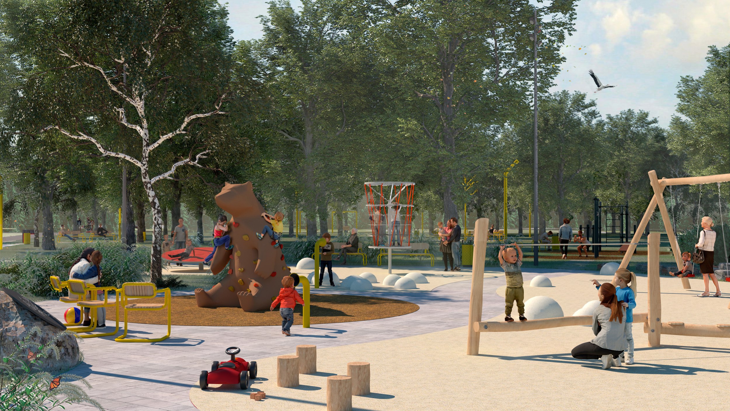«Крутецкие истории». Концепция благоустройства Ильинского парка в городе Сольцы Новгородской области. Вход со стороны Новгородской улицы