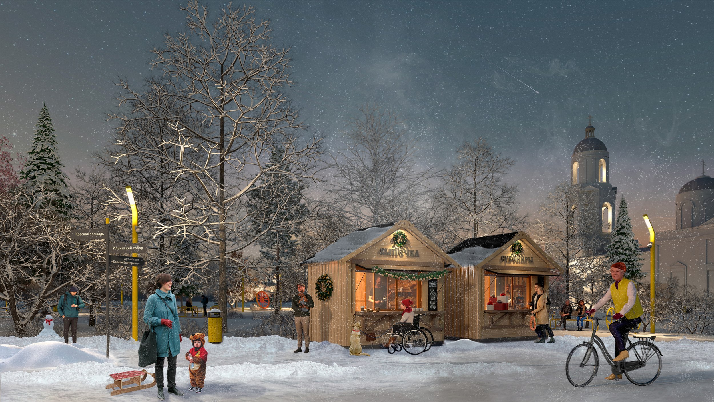 «Крутецкие истории». Концепция благоустройства Ильинского парка в городе Сольцы Новгородской области. Торговая зона