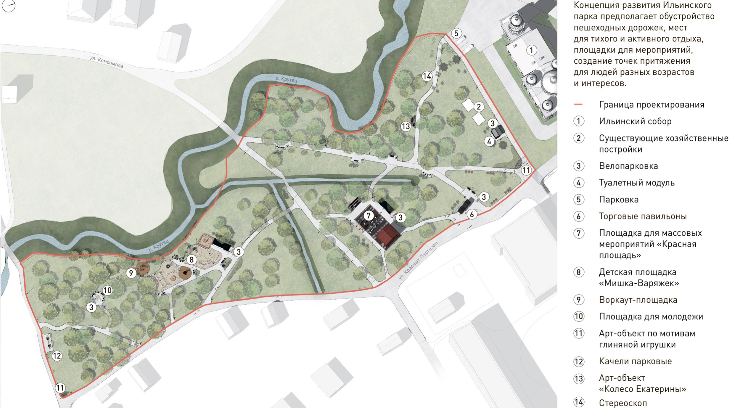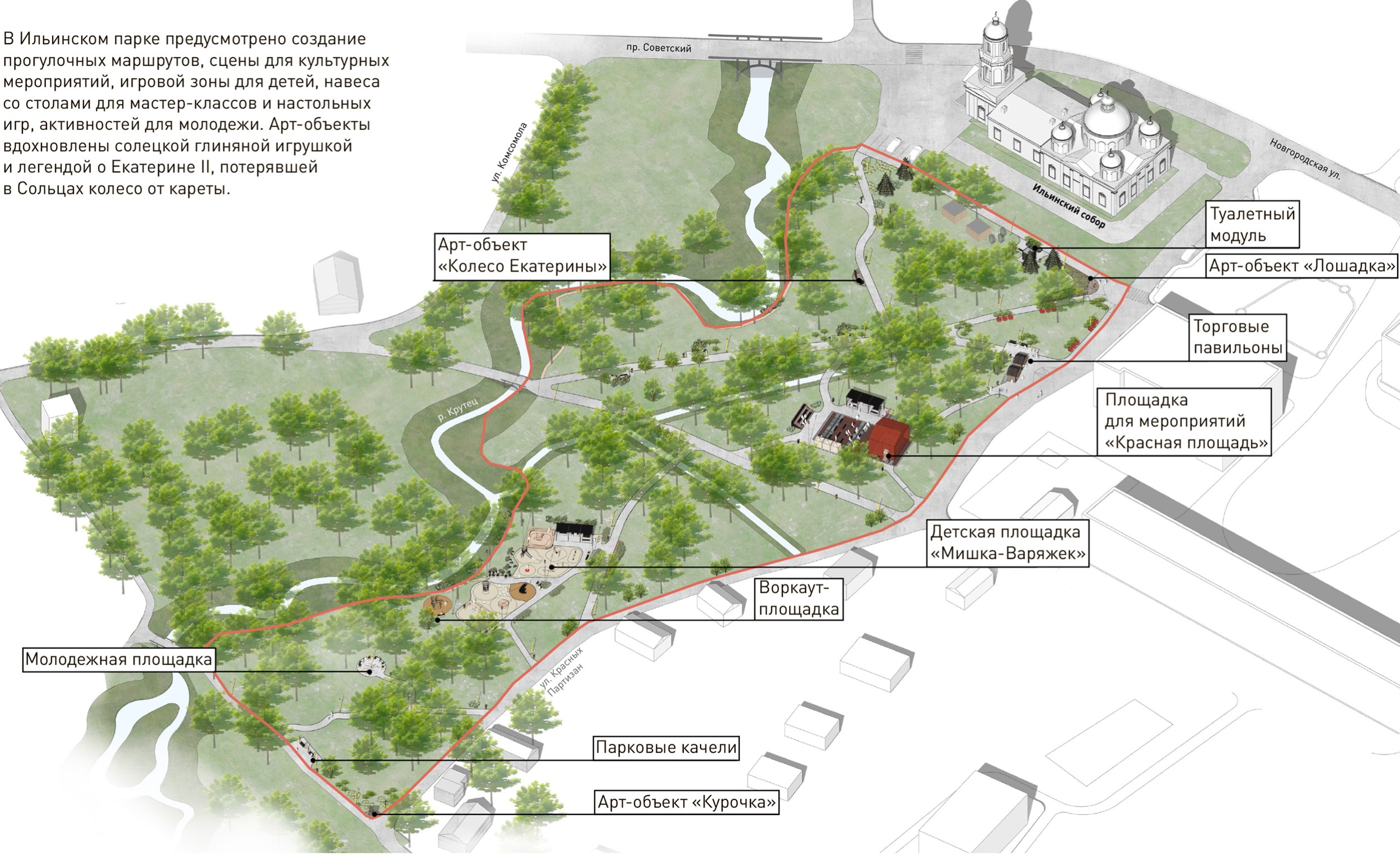 «Крутецкие истории». Концепция благоустройства Ильинского парка в городе Сольцы Новгородской области