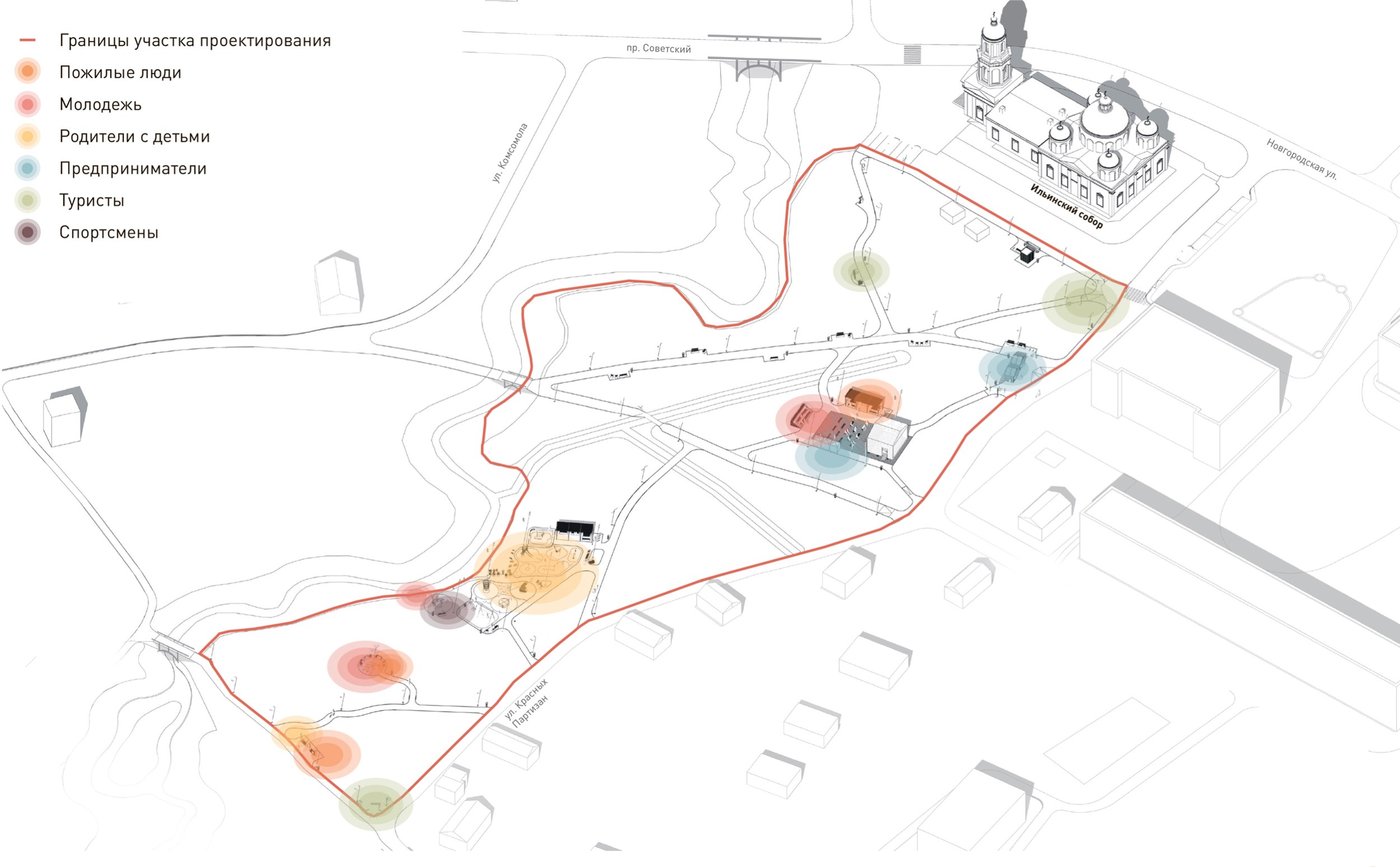 Генеральный директор – Константин Терентьев; менеджер проекта – Юлия Пояркова; начальник архитектурного отдела – Кирилл Кузьмичев; ГАП – Кирилл Никонов; архитекторы – Яна Федотова, Екатерина Федотова; ландшафтный архитектор – Юлия Смирнова; начальник отдела социокультурных исследований и вовлечения – Анна Соколова; специалисты по социокультурным исследованиям и вовлечению – Наталия Богуцкая, Татьяна Алексеева; графический дизайнер – Илья Алексеев